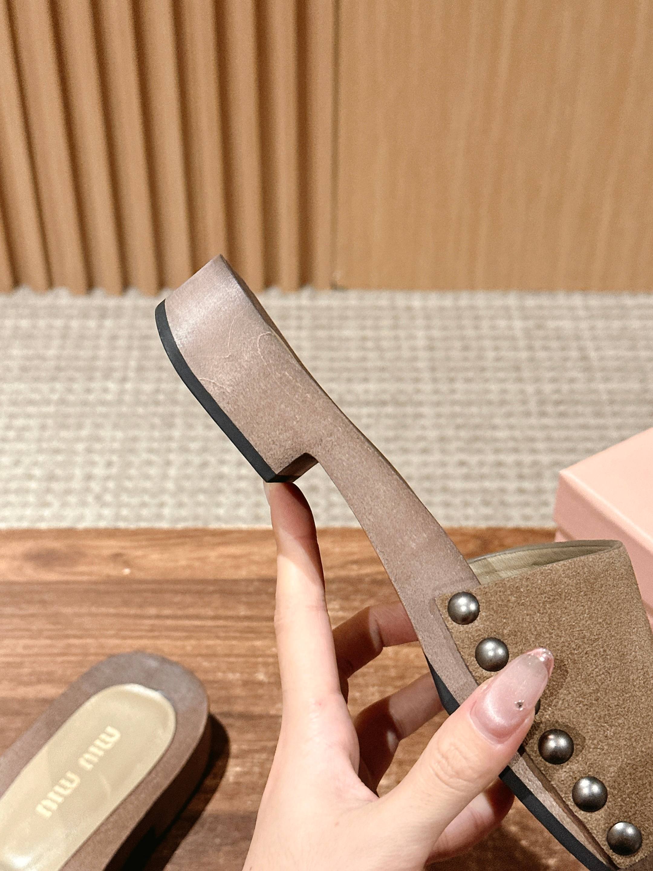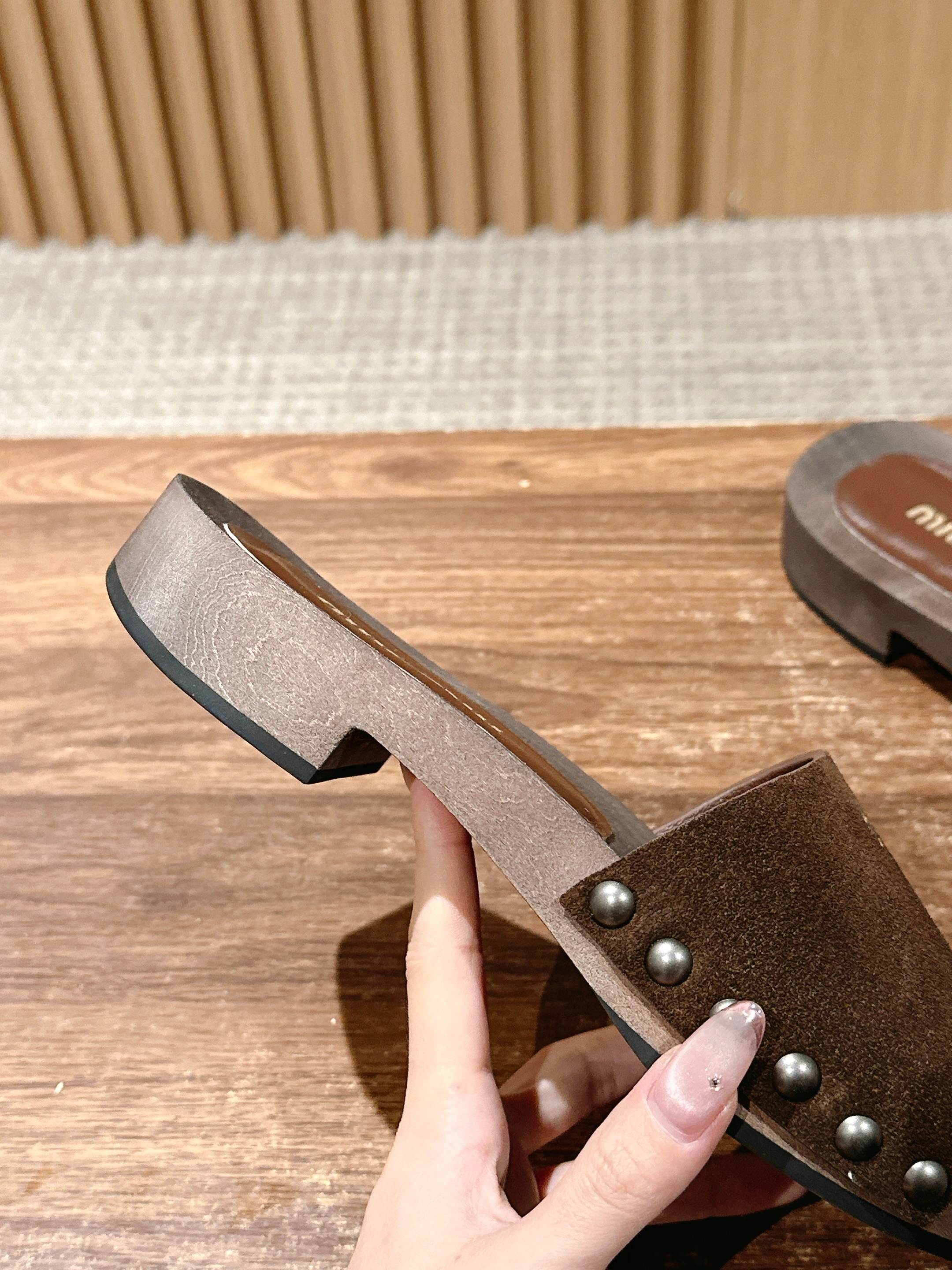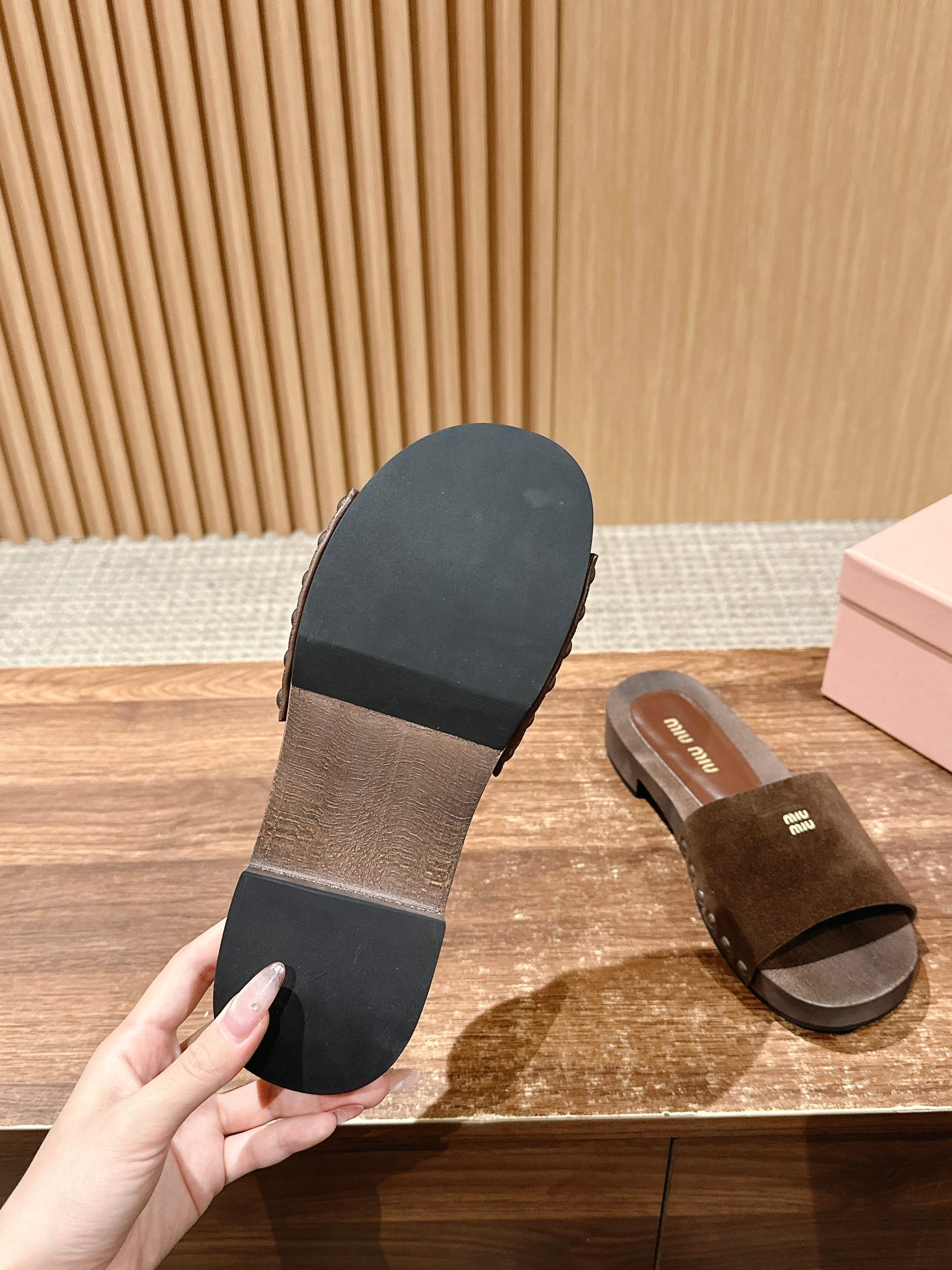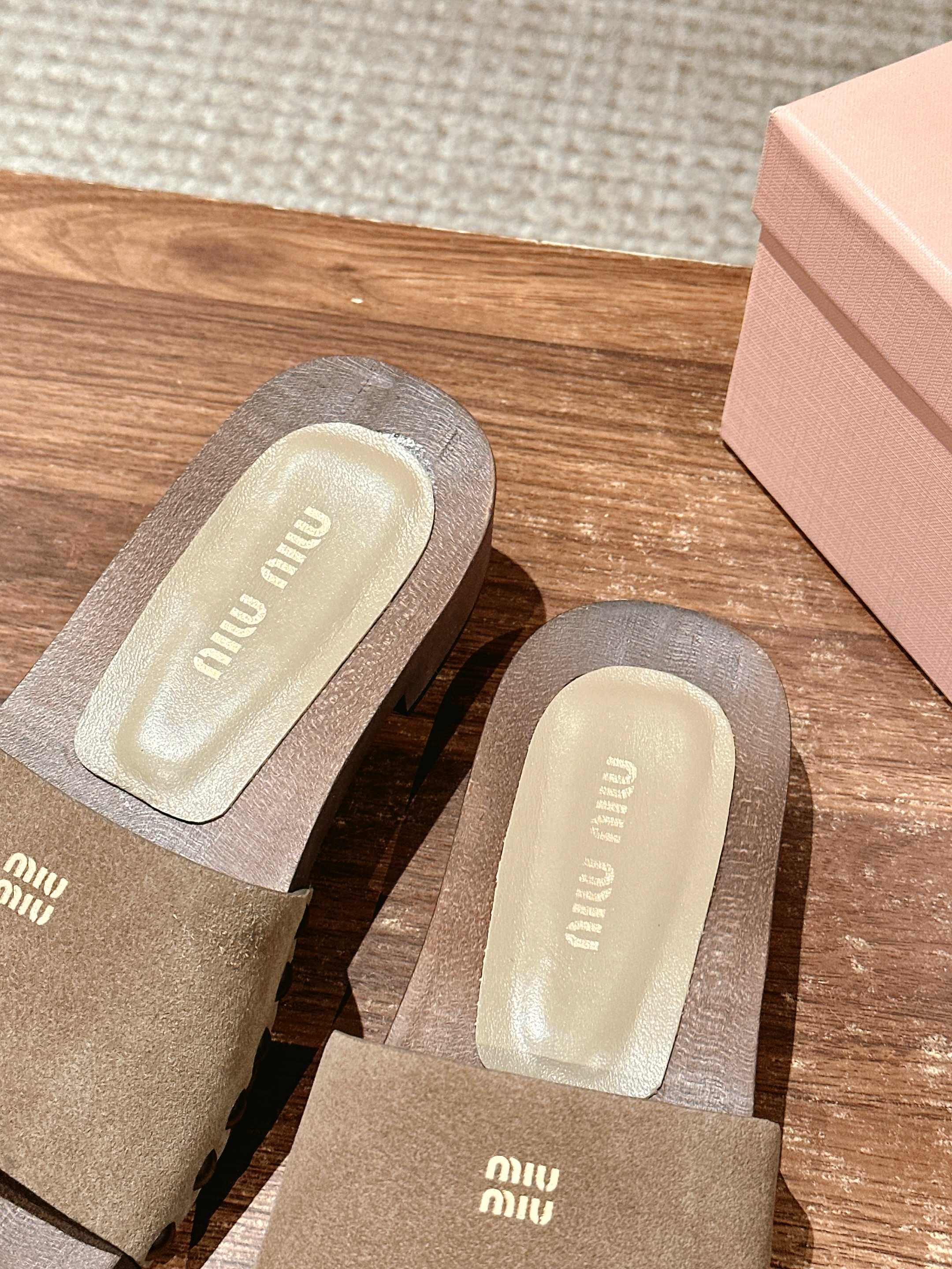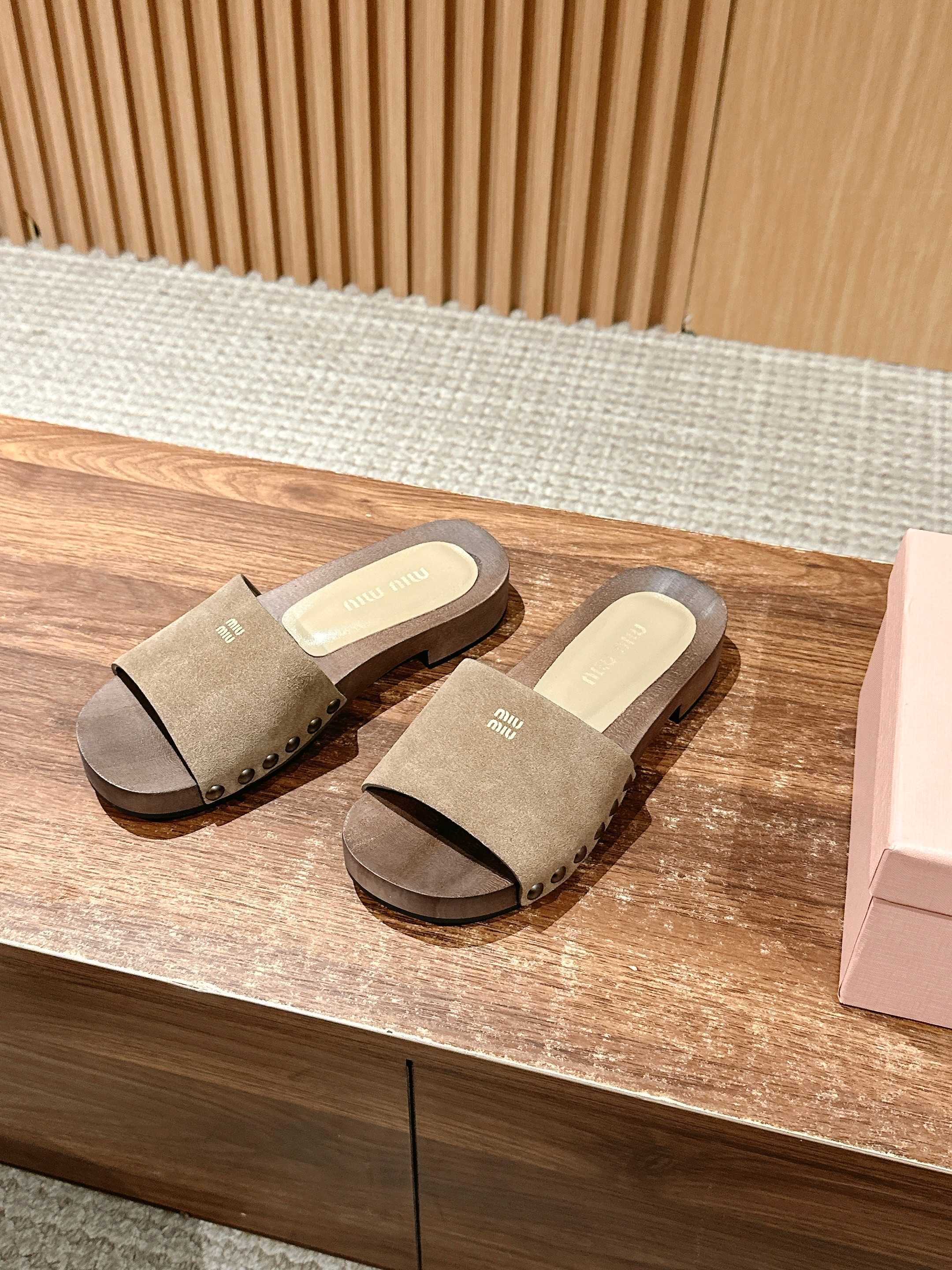 NIGO MiuMiu Women's Summer Fashion Casual Round Toe Slip On Suede Leather Wooden Sole Sandals Shoes #nigo78432