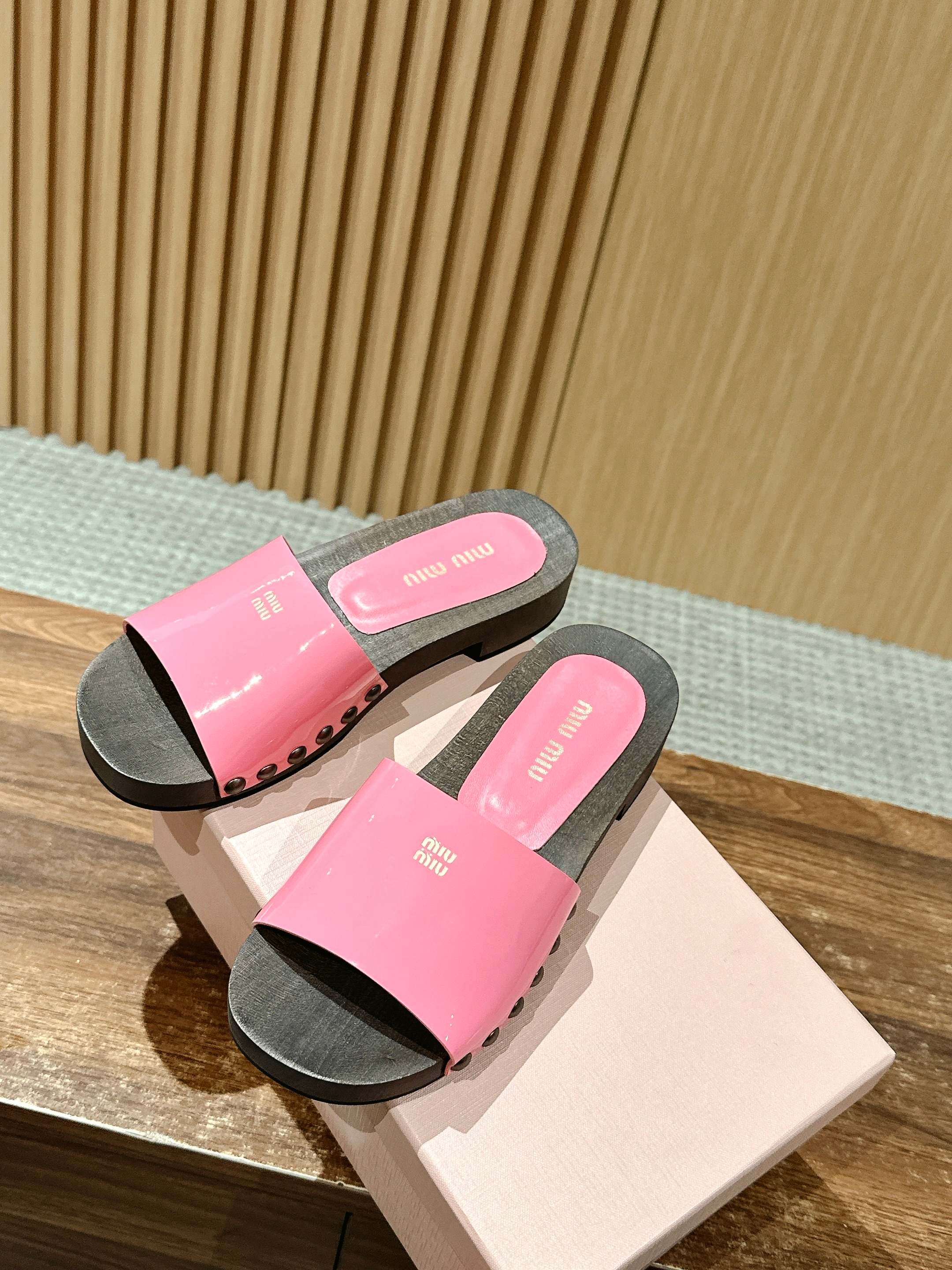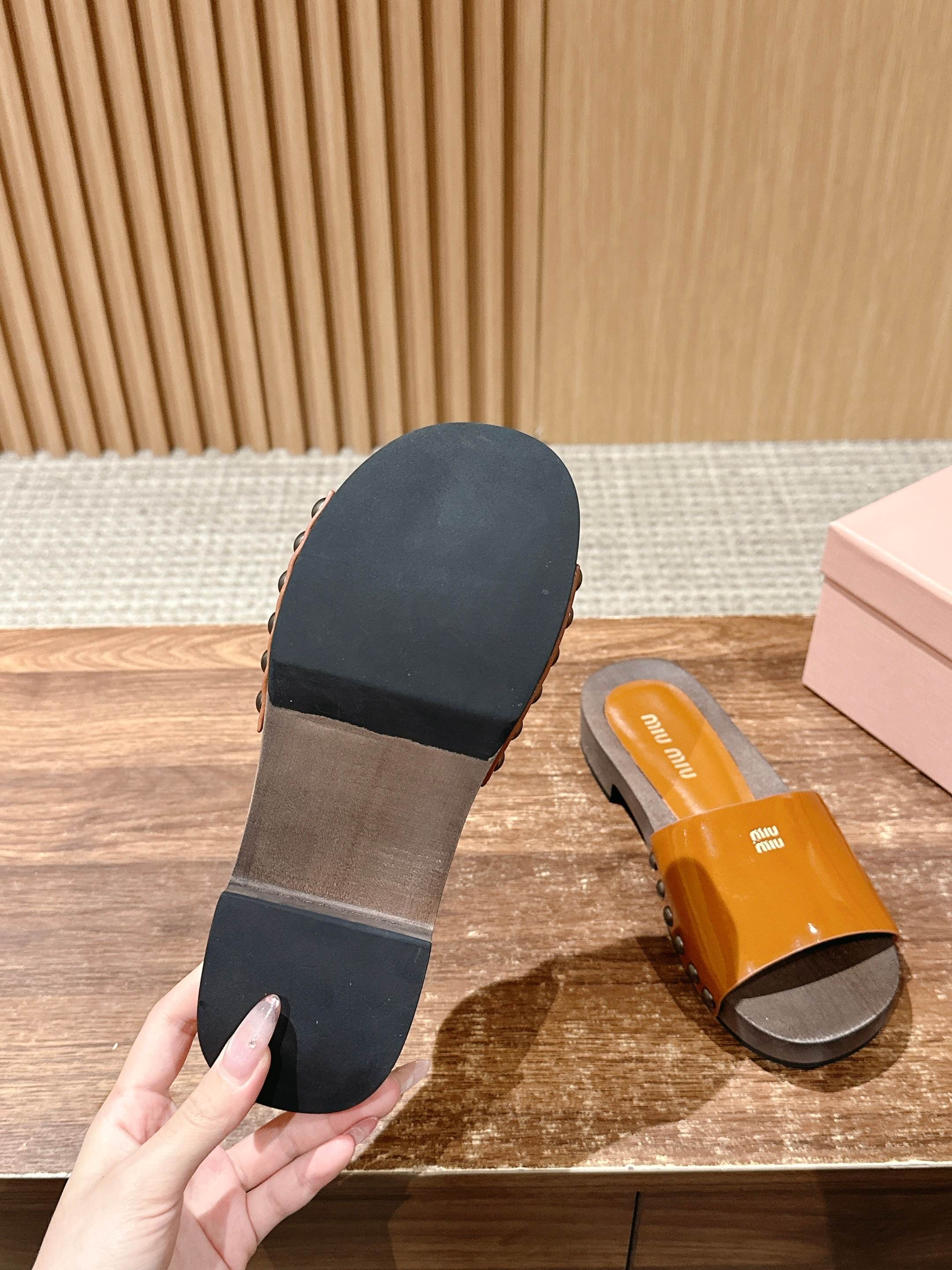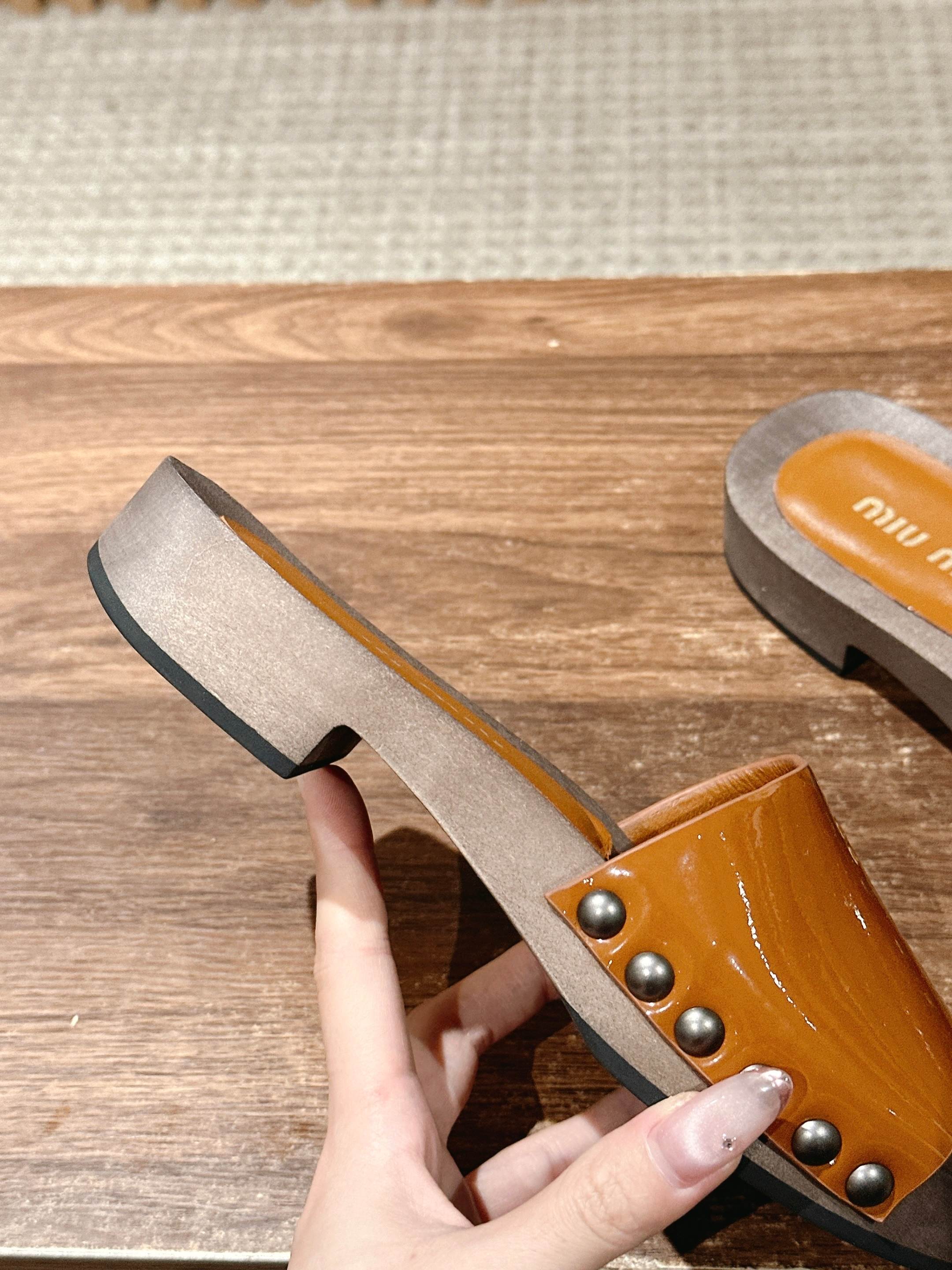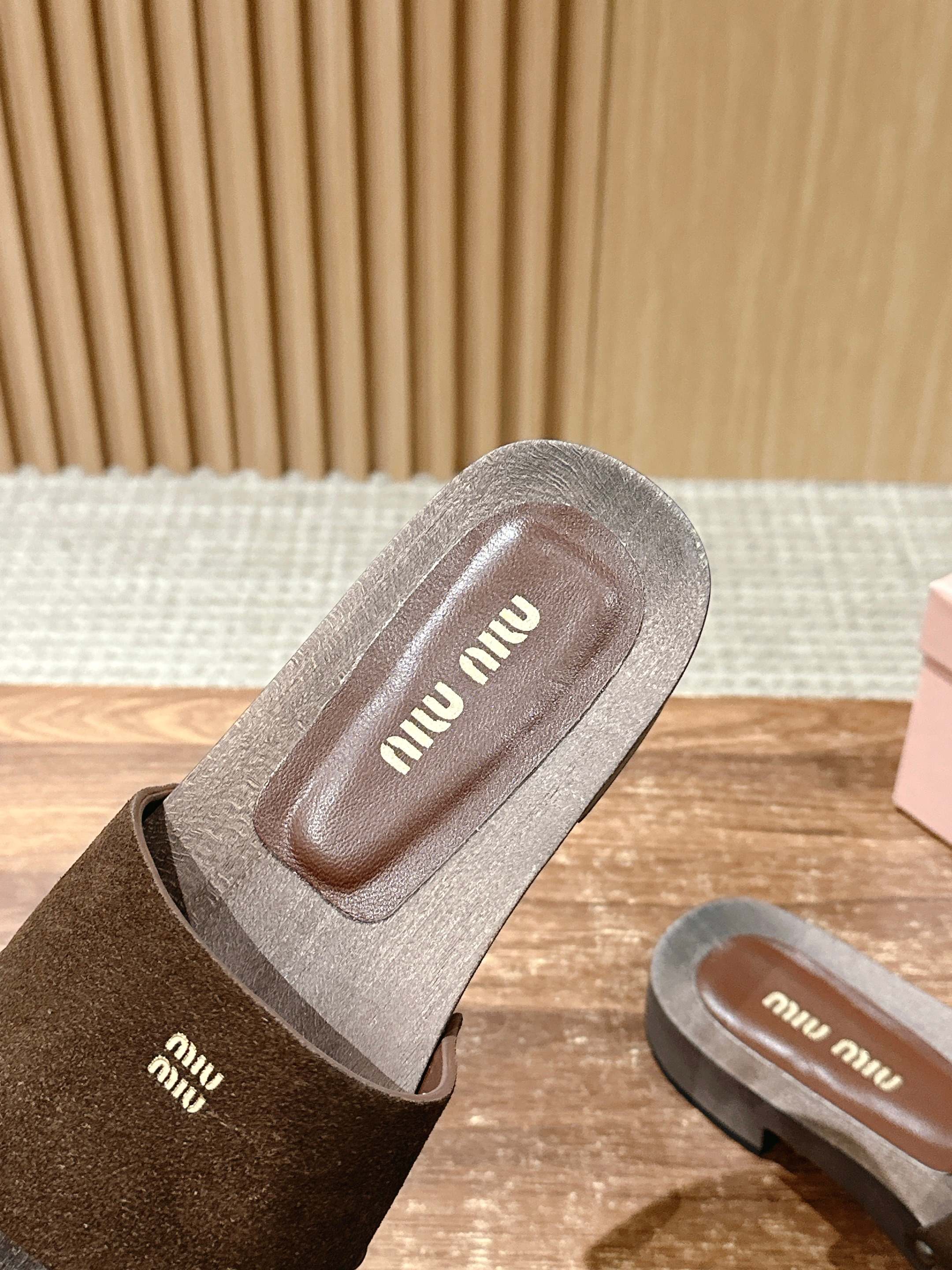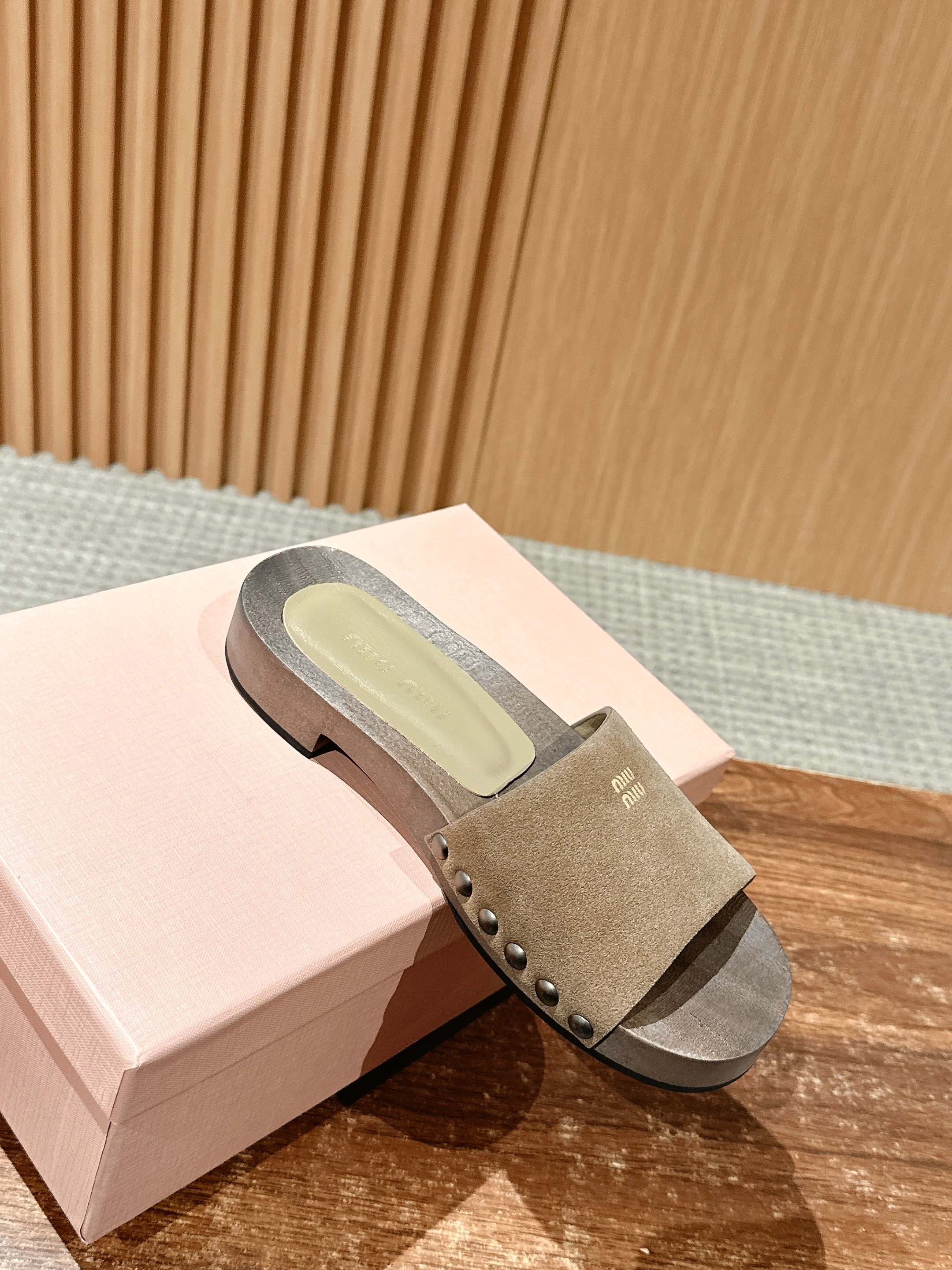 NIGO MiuMiu Women's Summer Fashion Casual Round Toe Slip On Suede Leather Wooden Sole Sandals Shoes #nigo78432