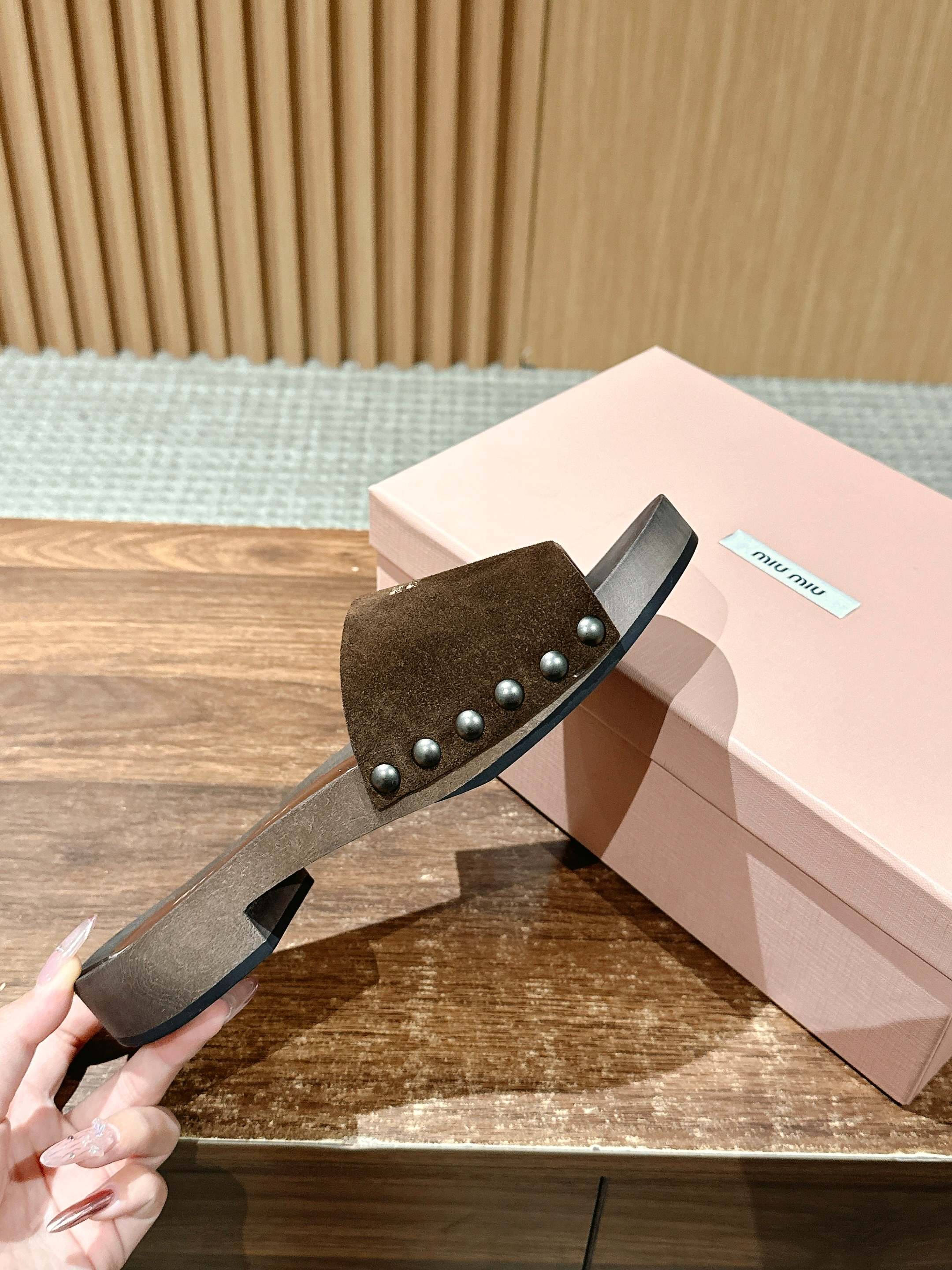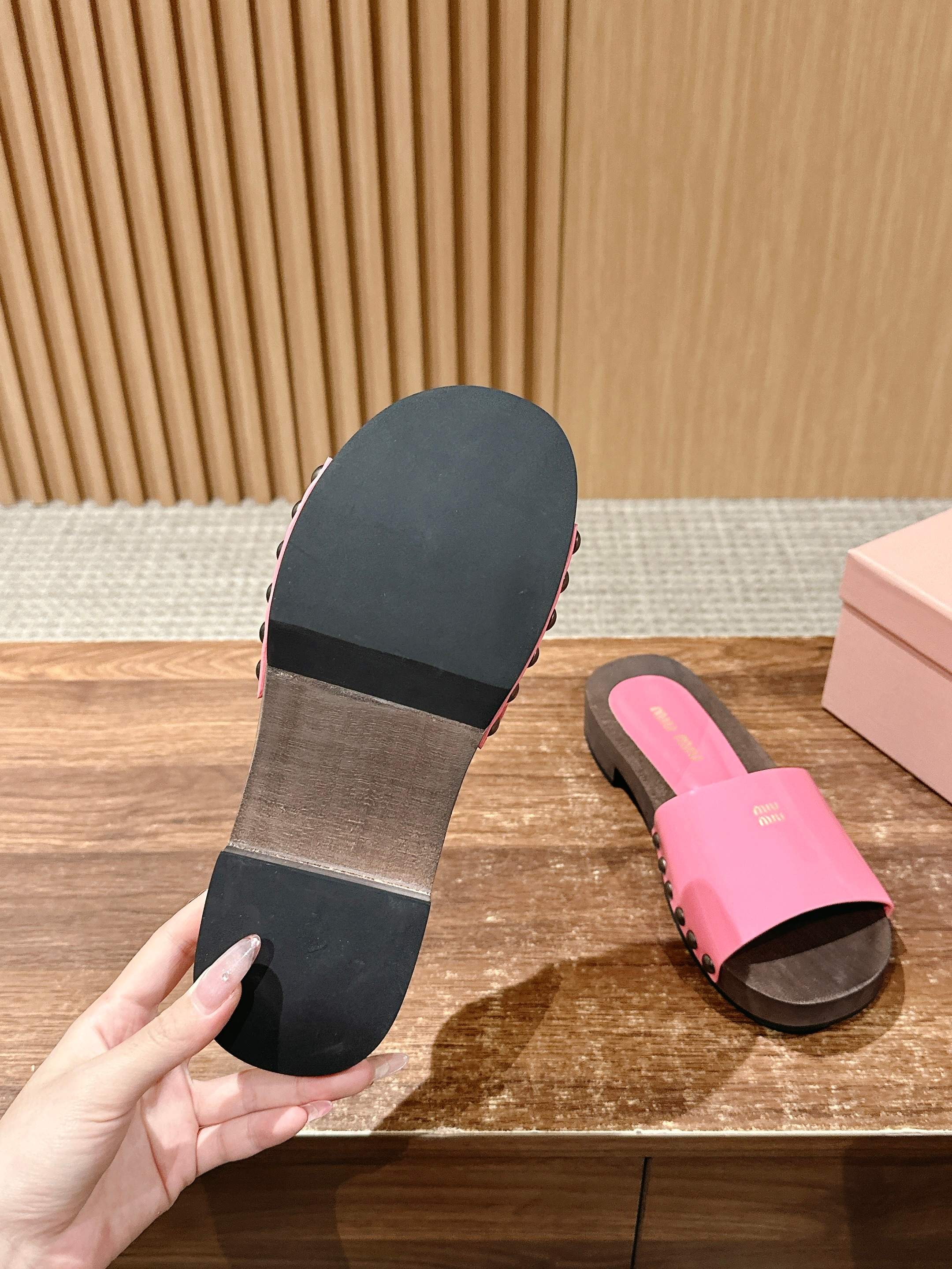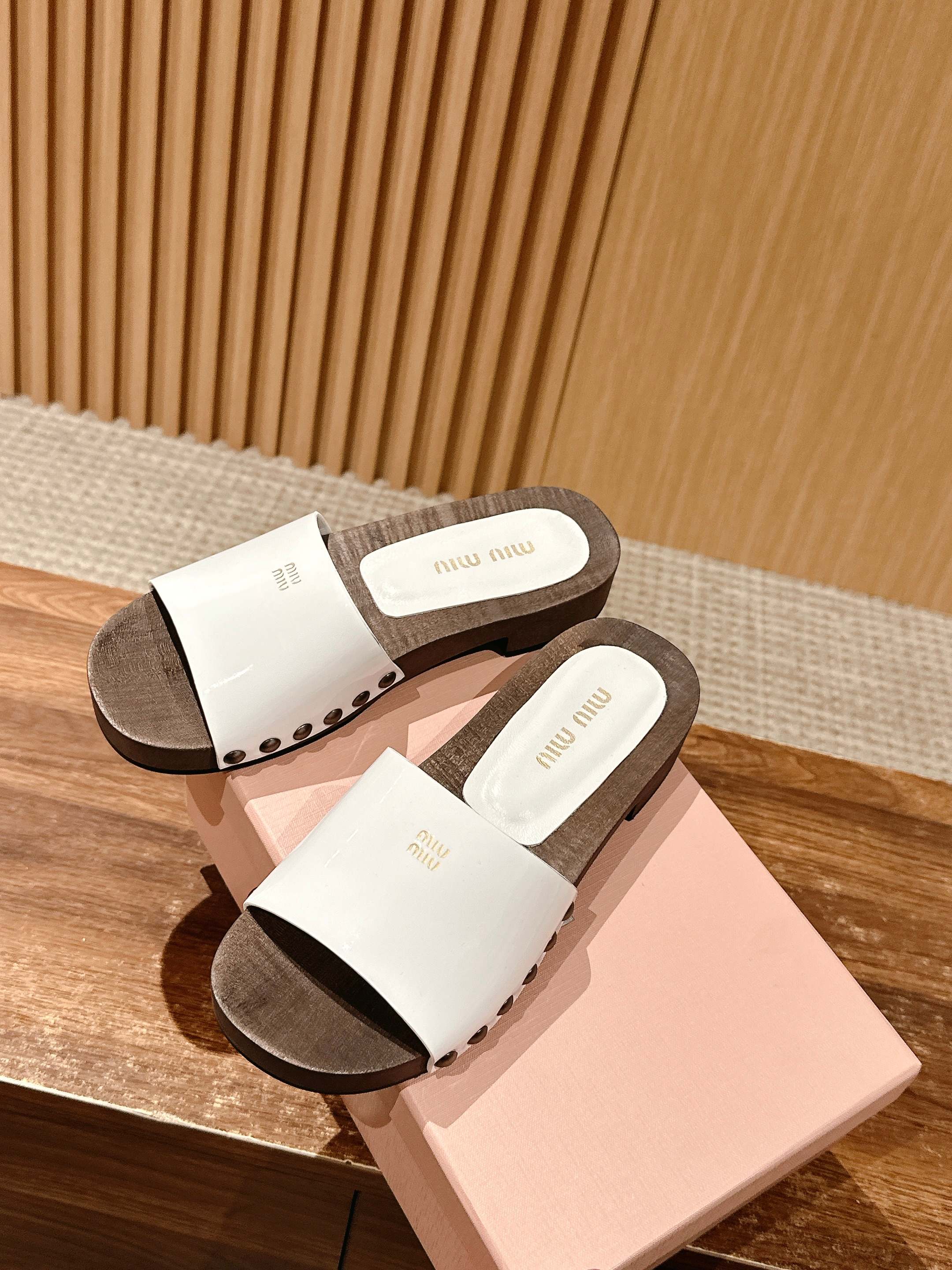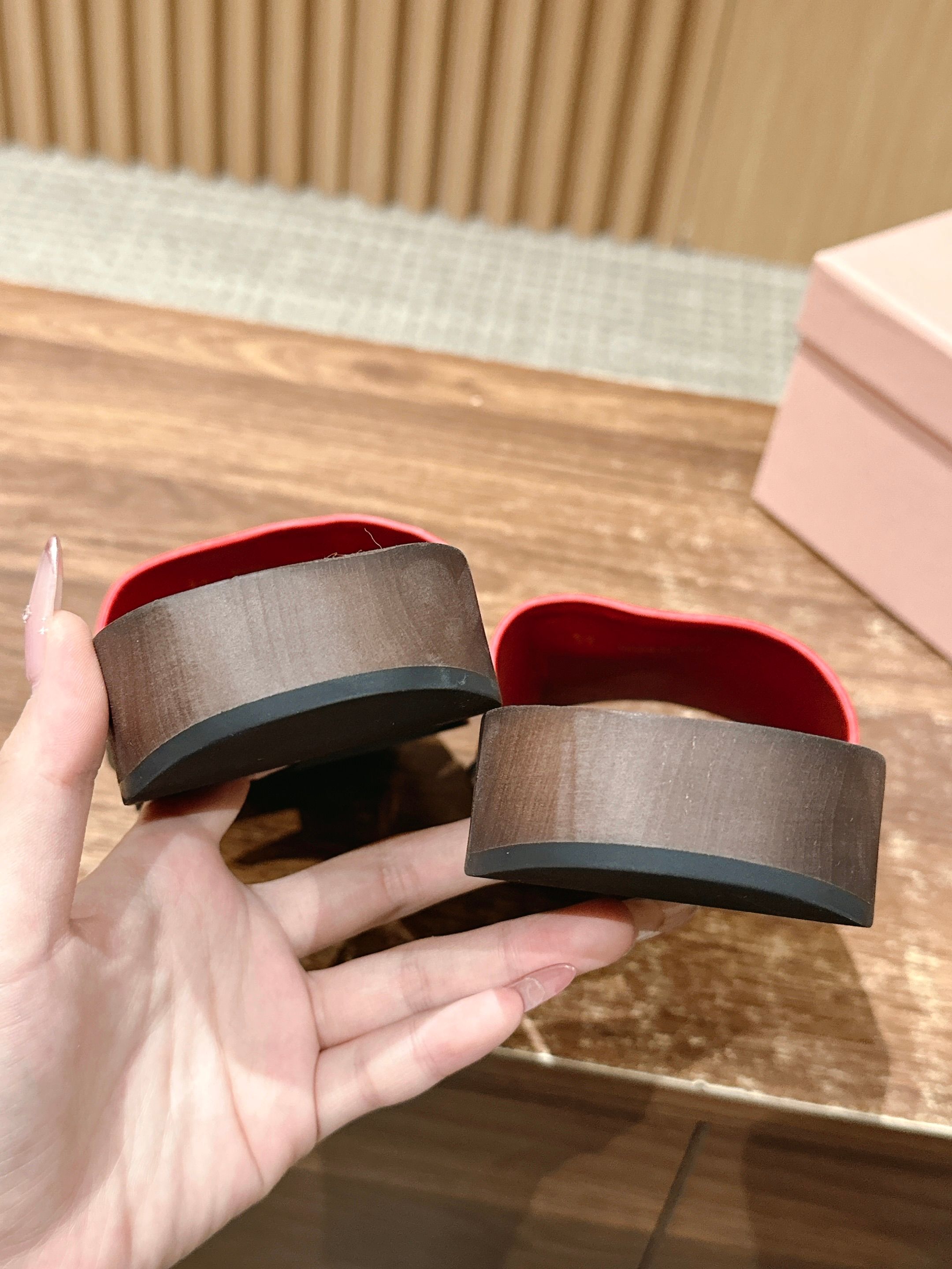 NIGO MiuMiu Women's Summer Fashion Casual Round Toe Slip On Suede Leather Wooden Sole Sandals Shoes #nigo78432