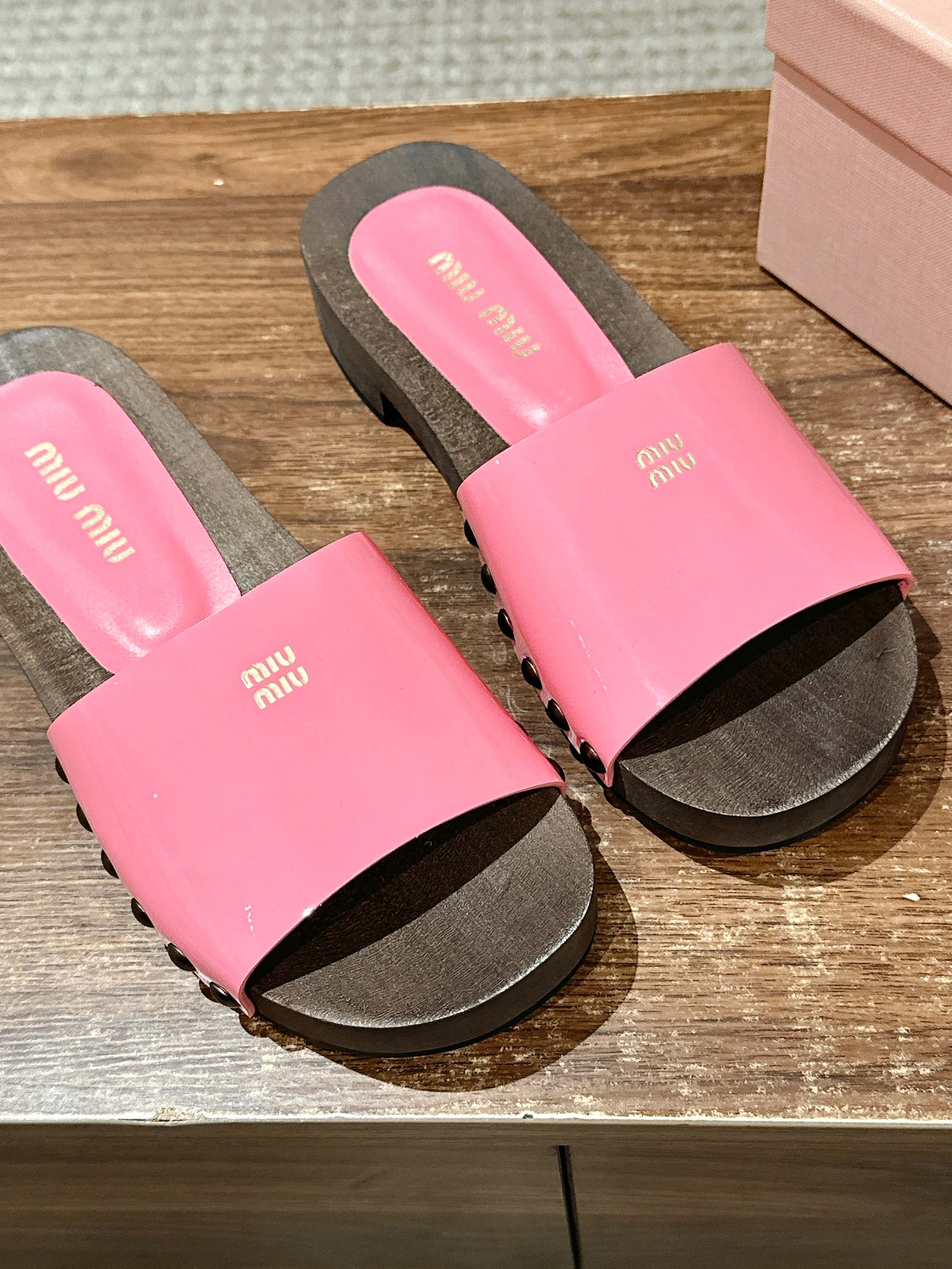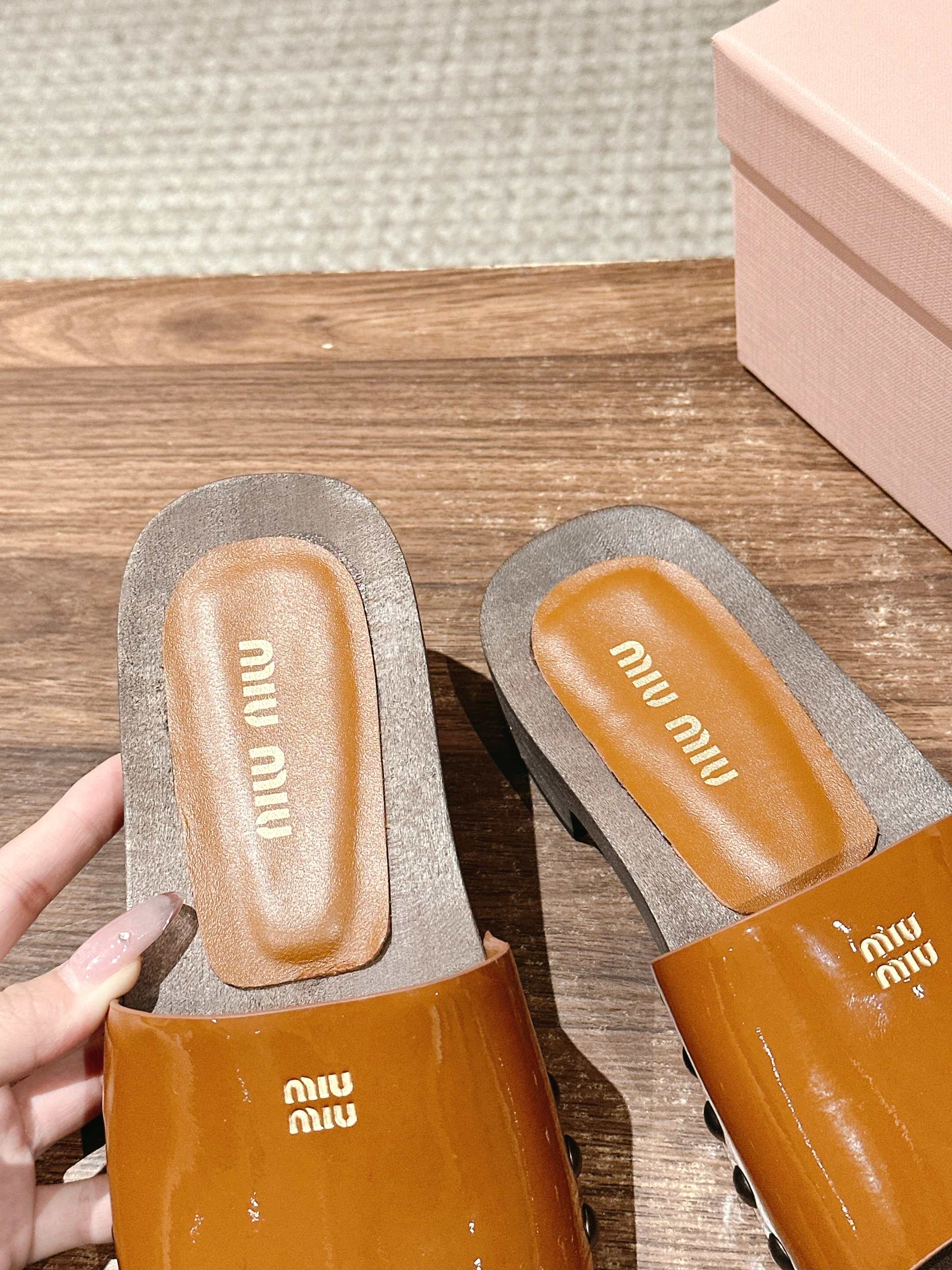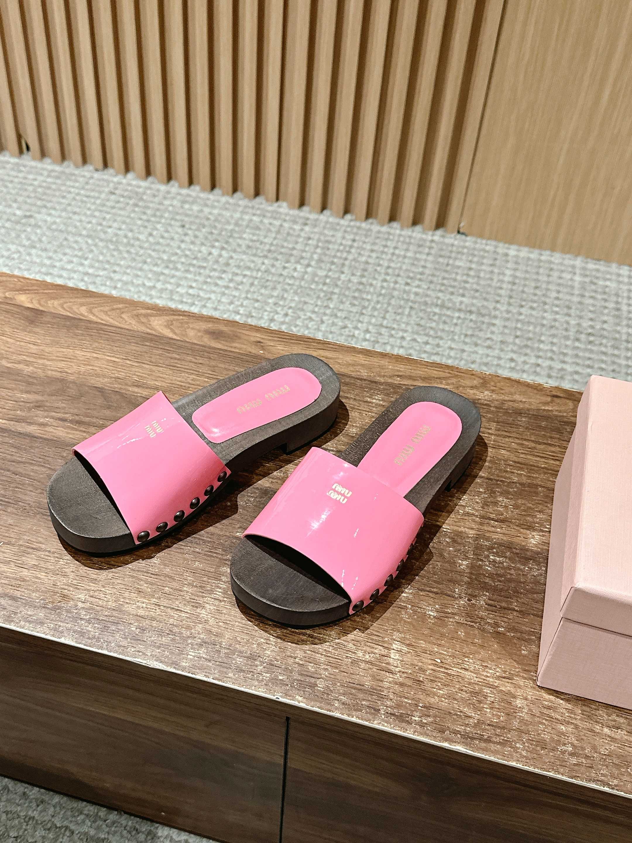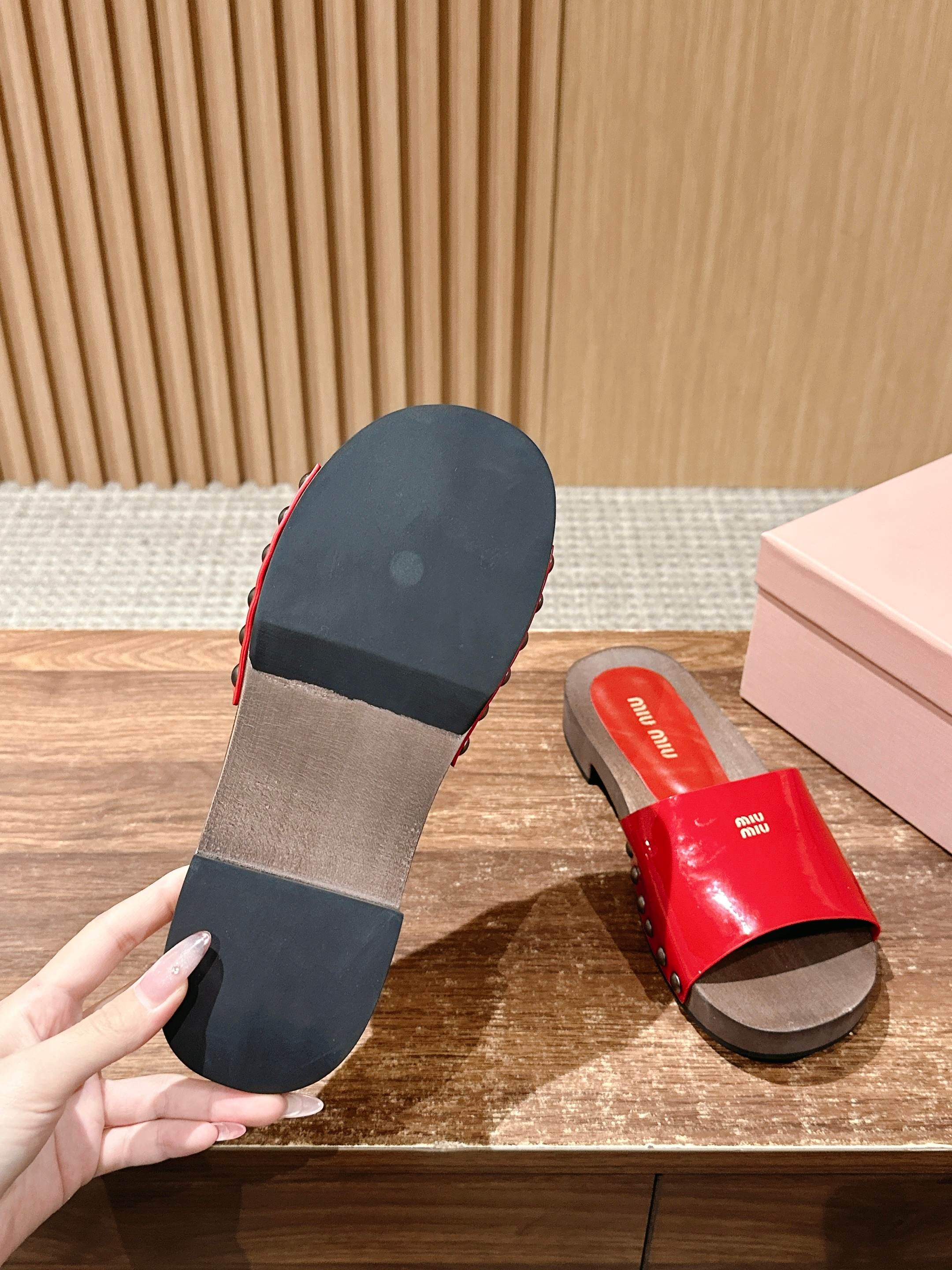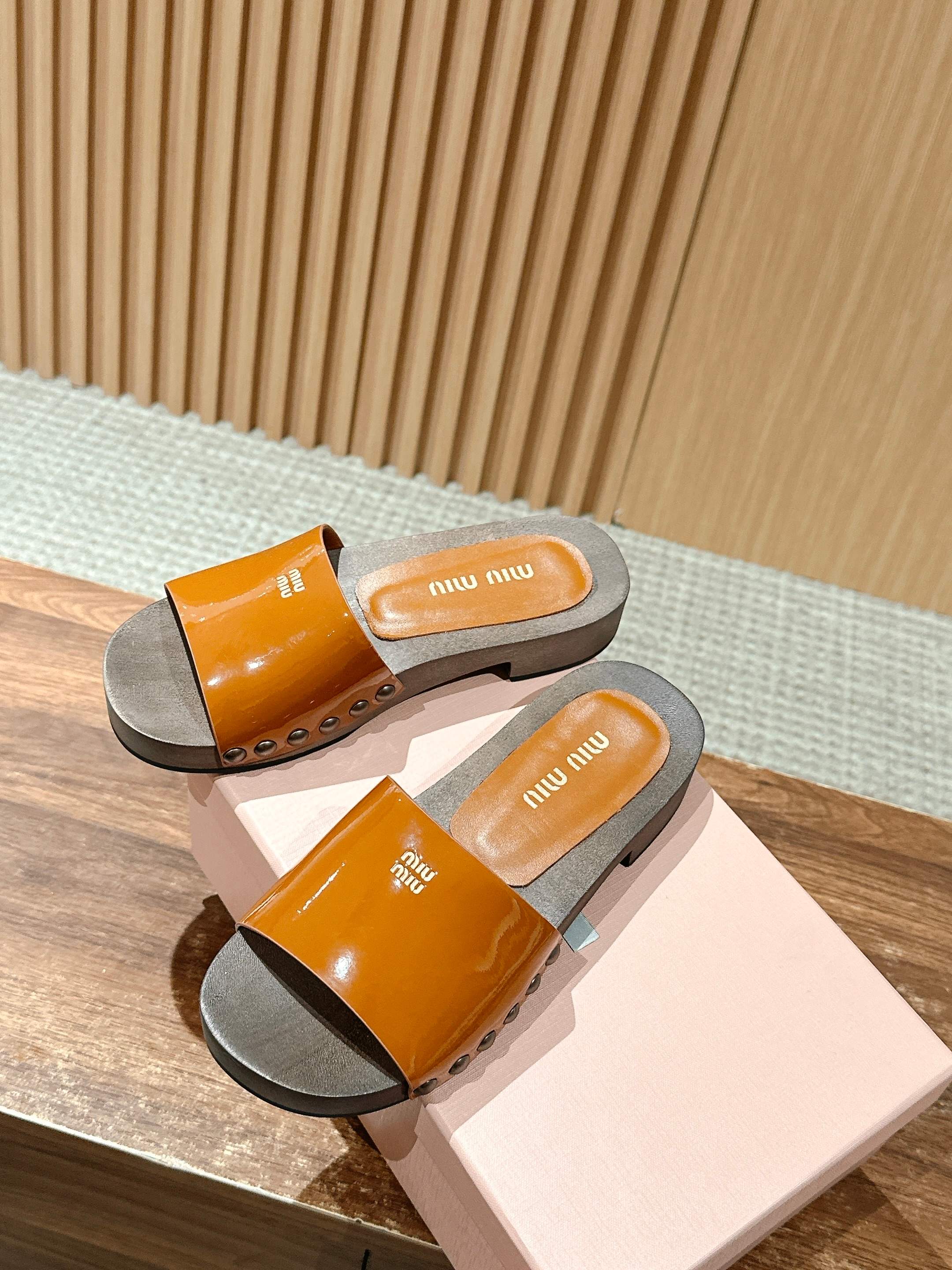 NIGO MiuMiu Women's Summer Fashion Casual Round Toe Slip On Suede Leather Wooden Sole Sandals Shoes #nigo78432