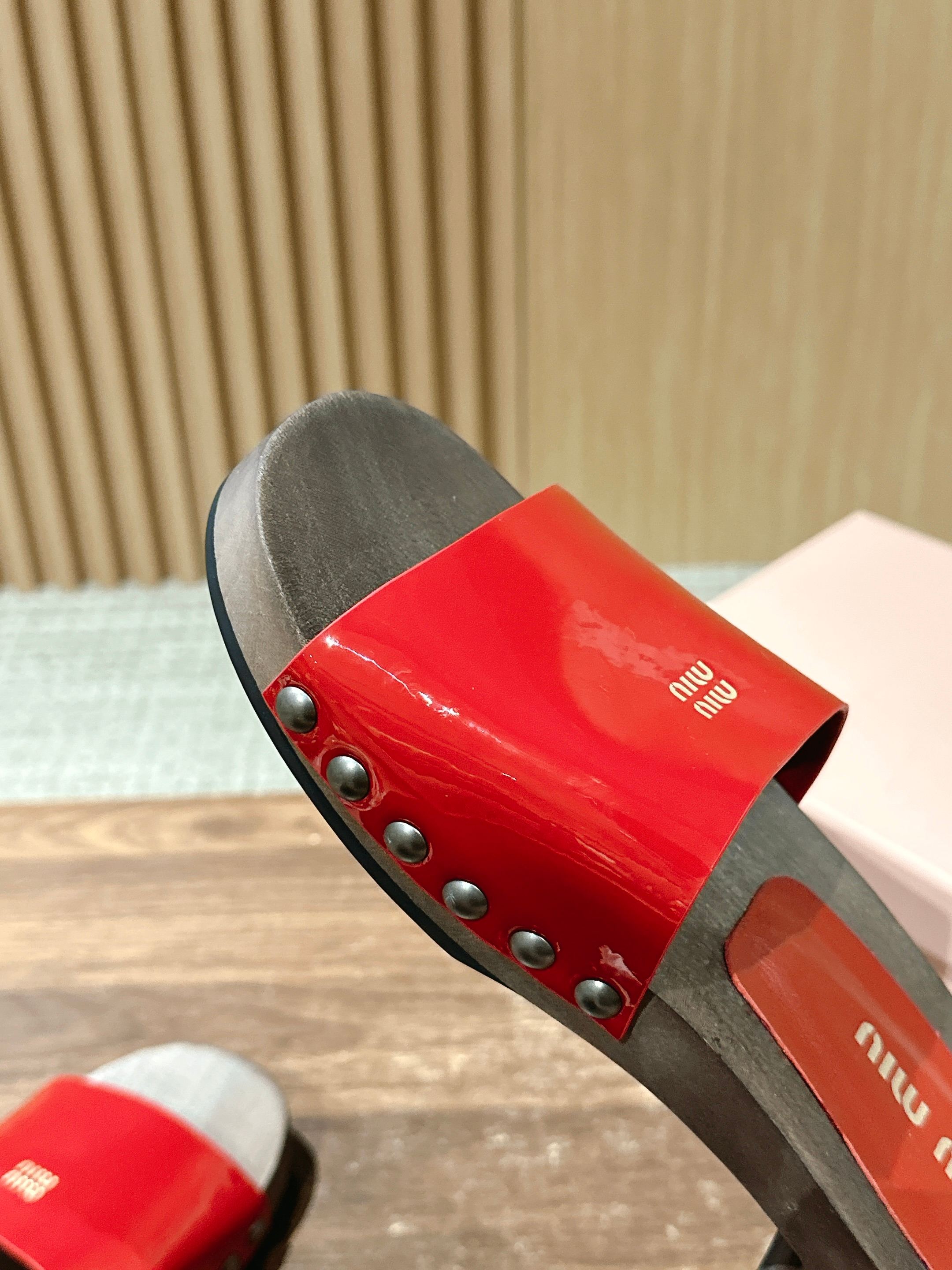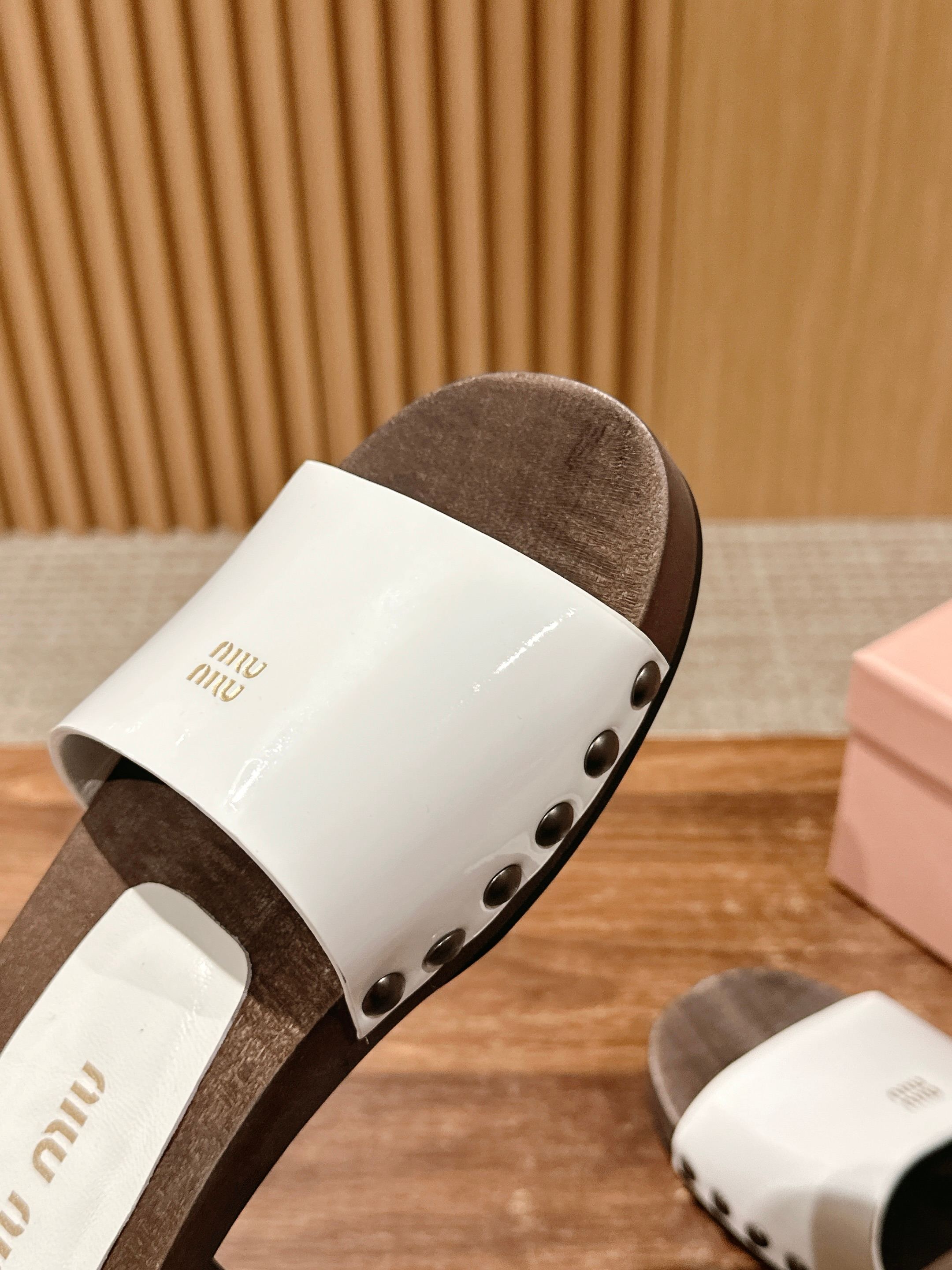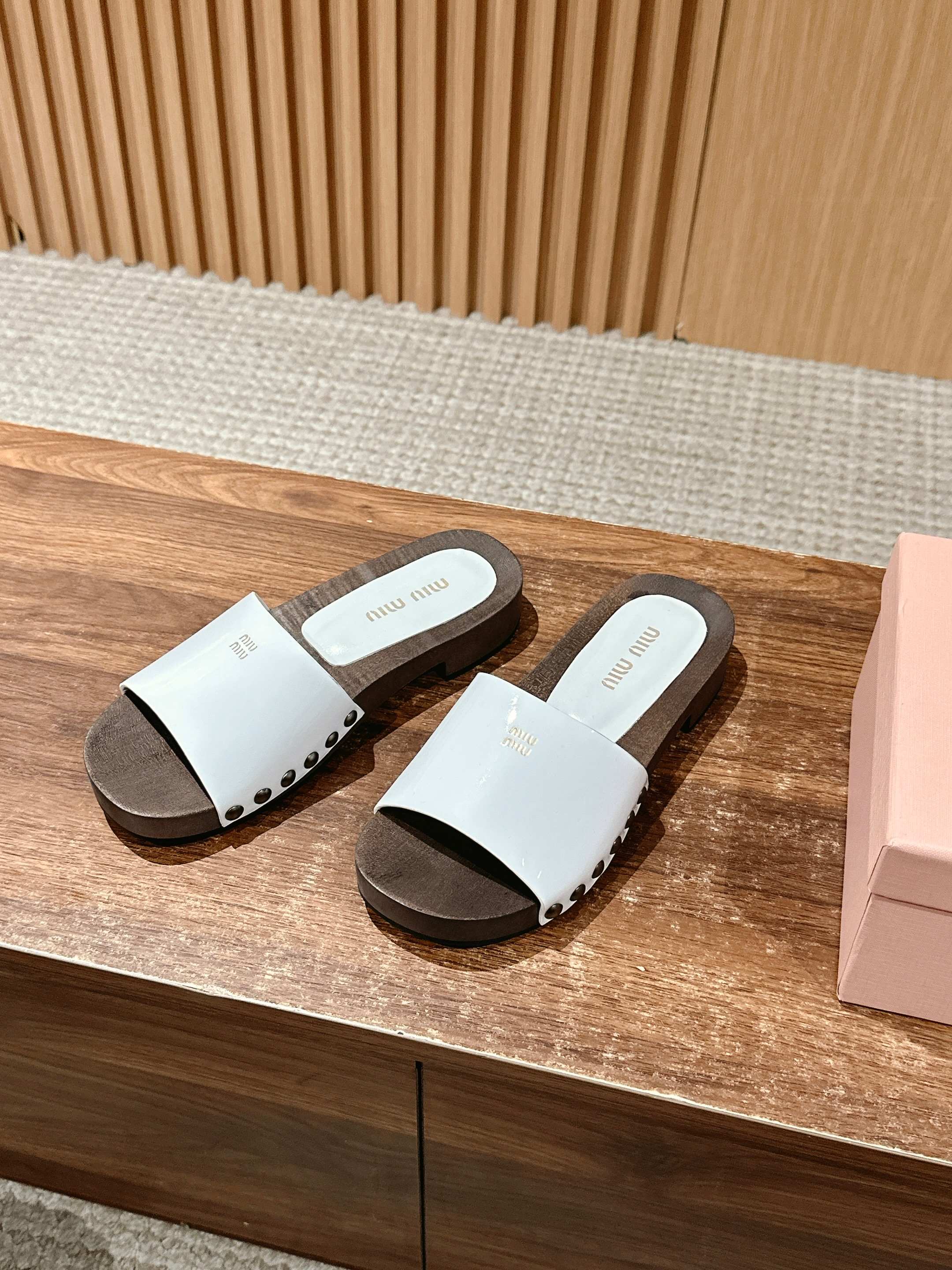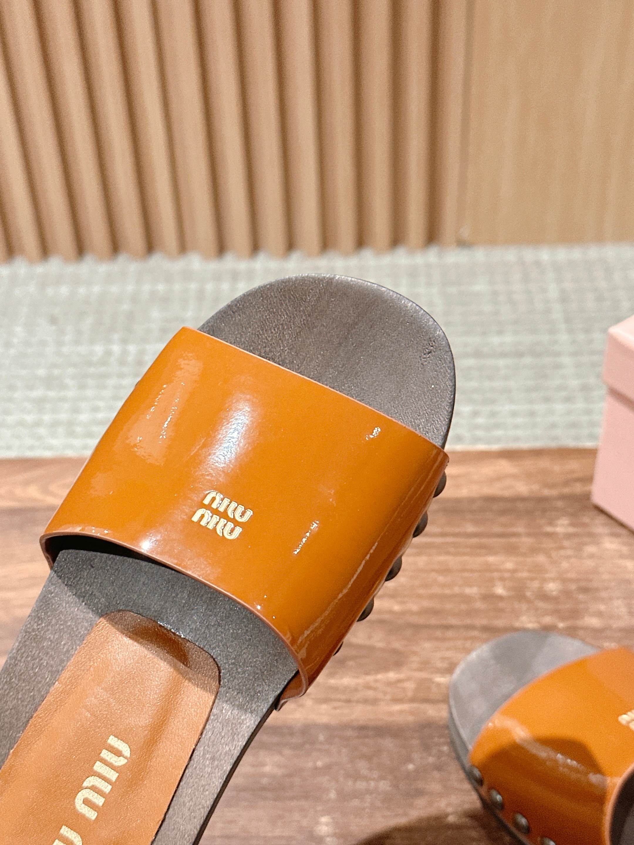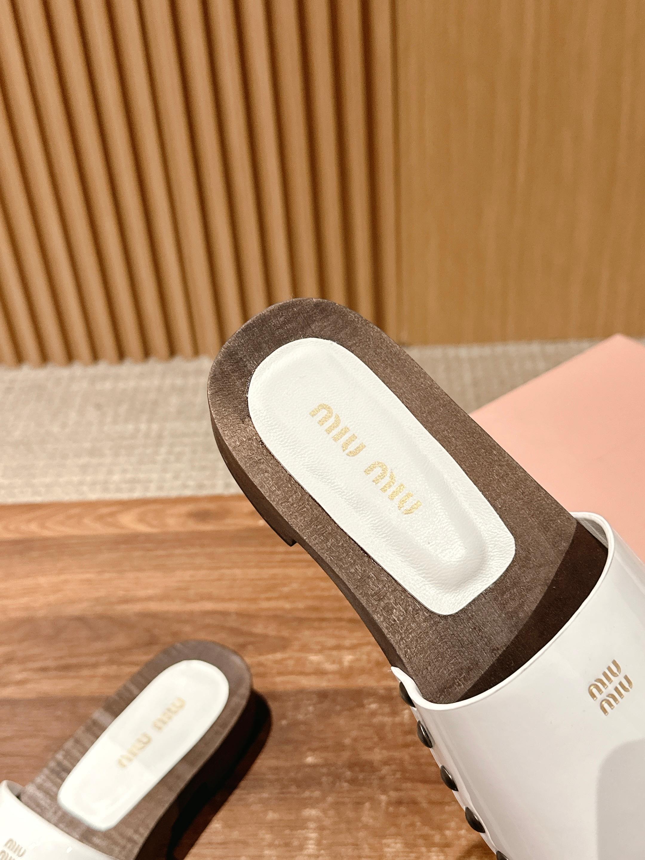 NIGO MiuMiu Women's Summer Fashion Casual Round Toe Slip On Suede Leather Wooden Sole Sandals Shoes #nigo78432