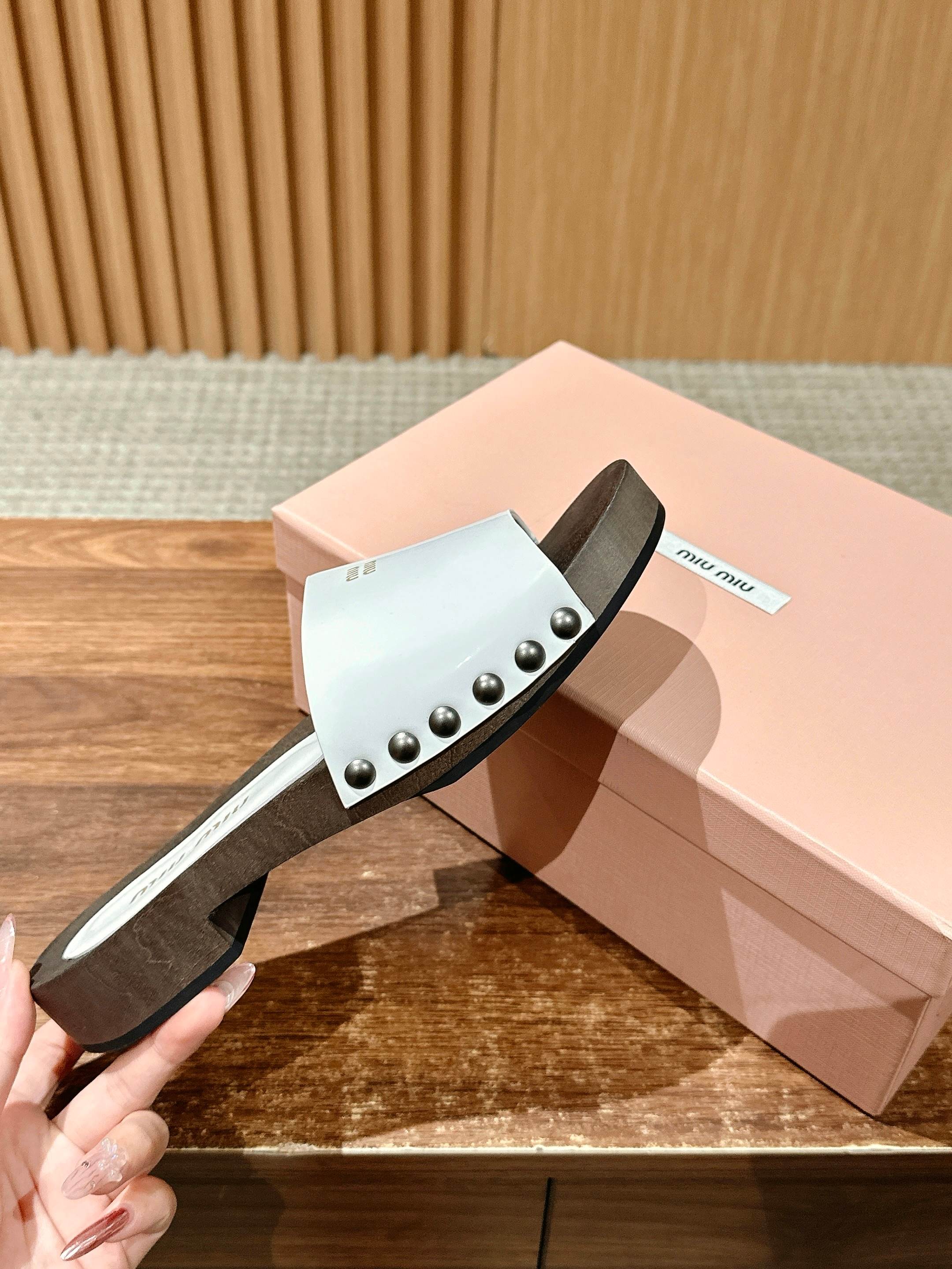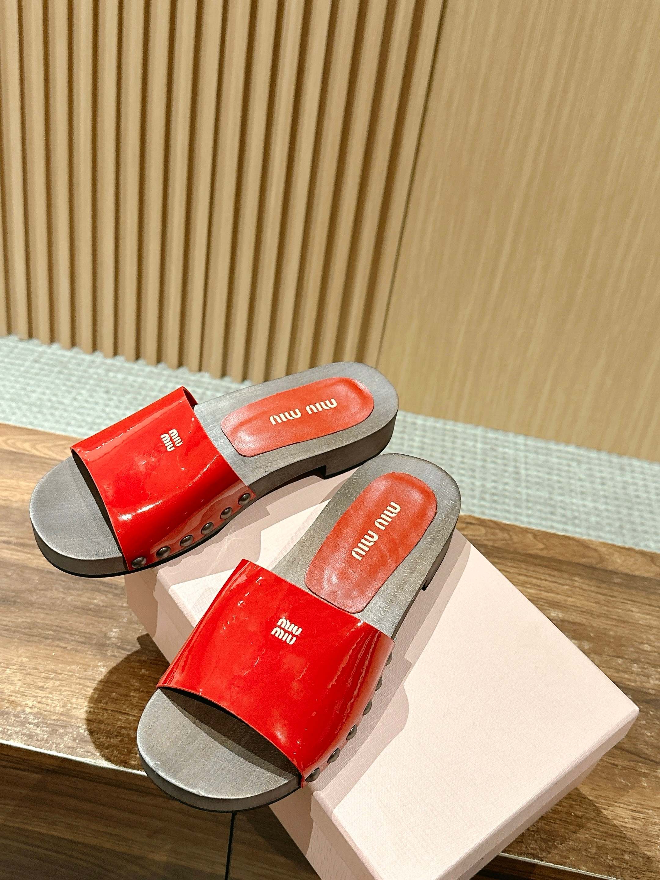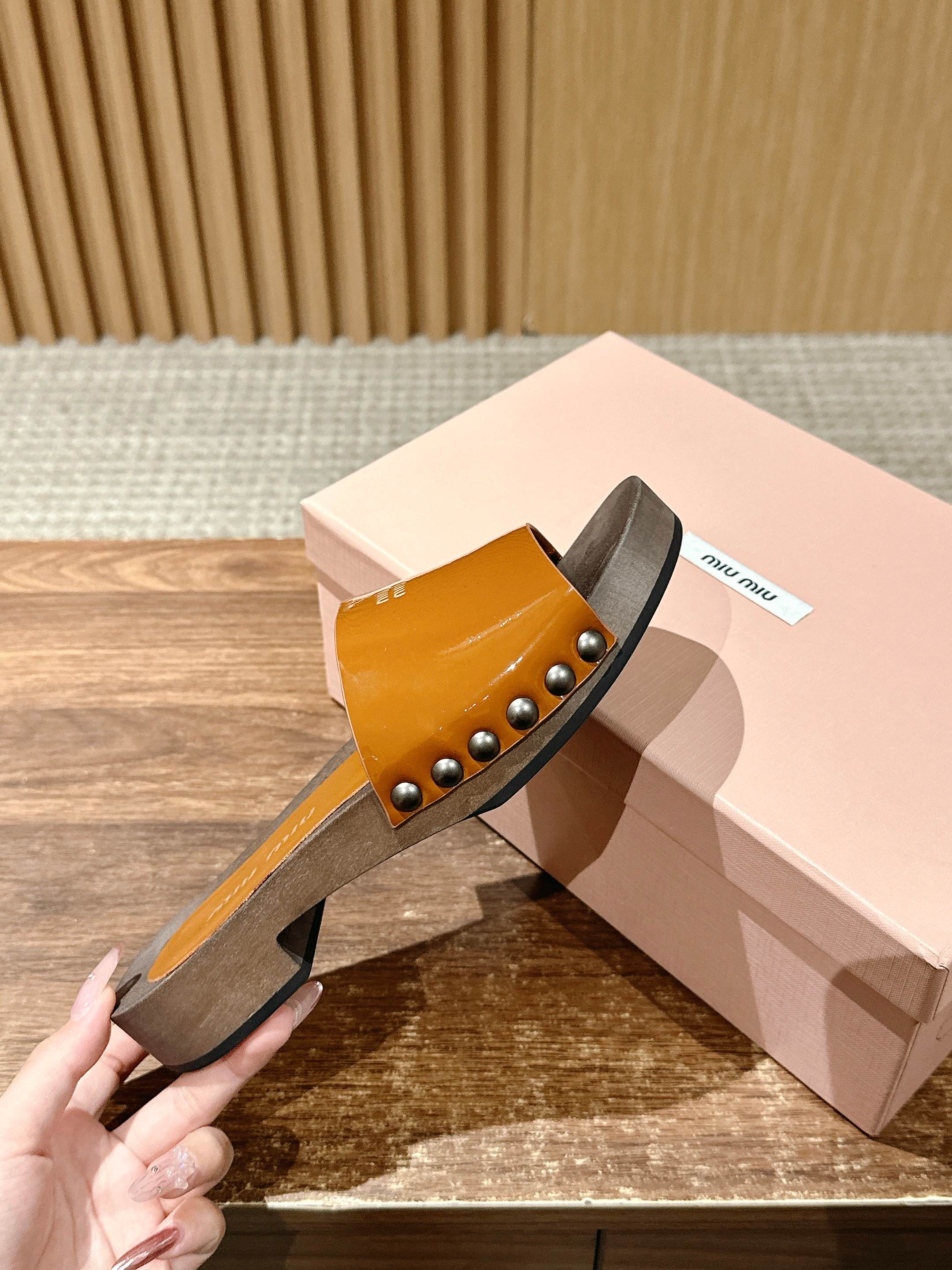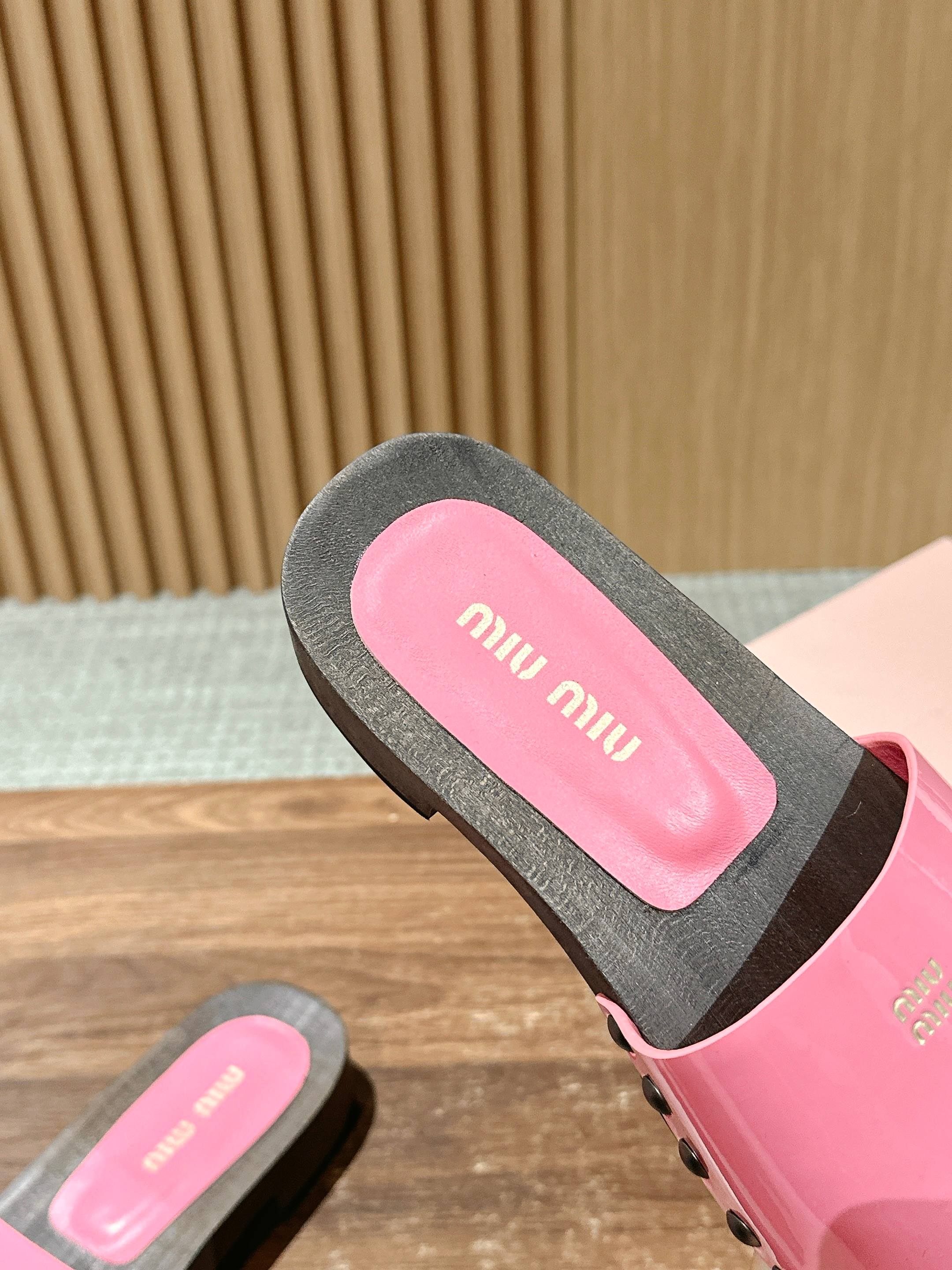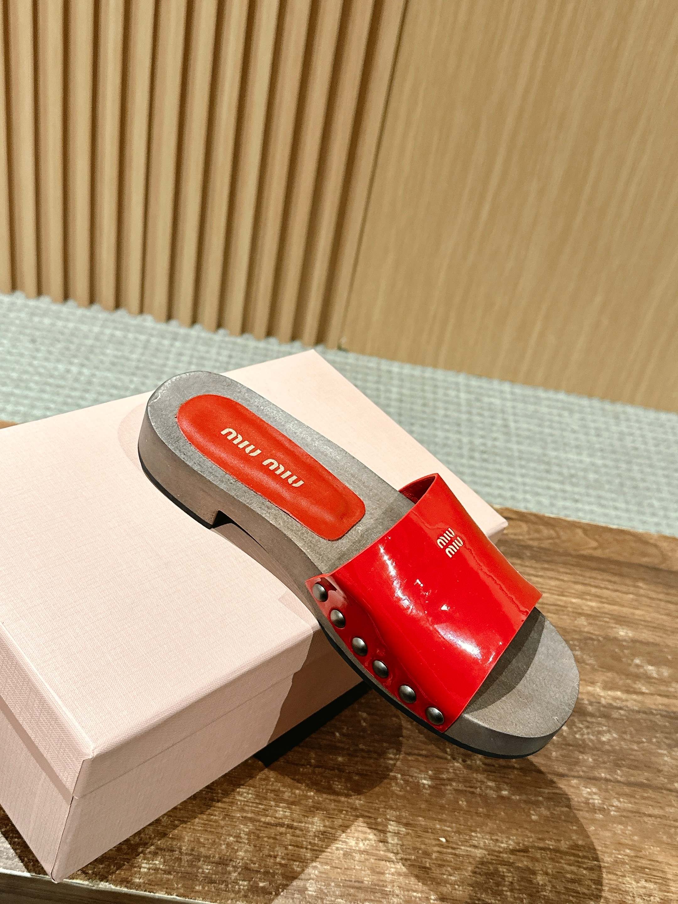 NIGO MiuMiu Women's Summer Fashion Casual Round Toe Slip On Suede Leather Wooden Sole Sandals Shoes #nigo78432