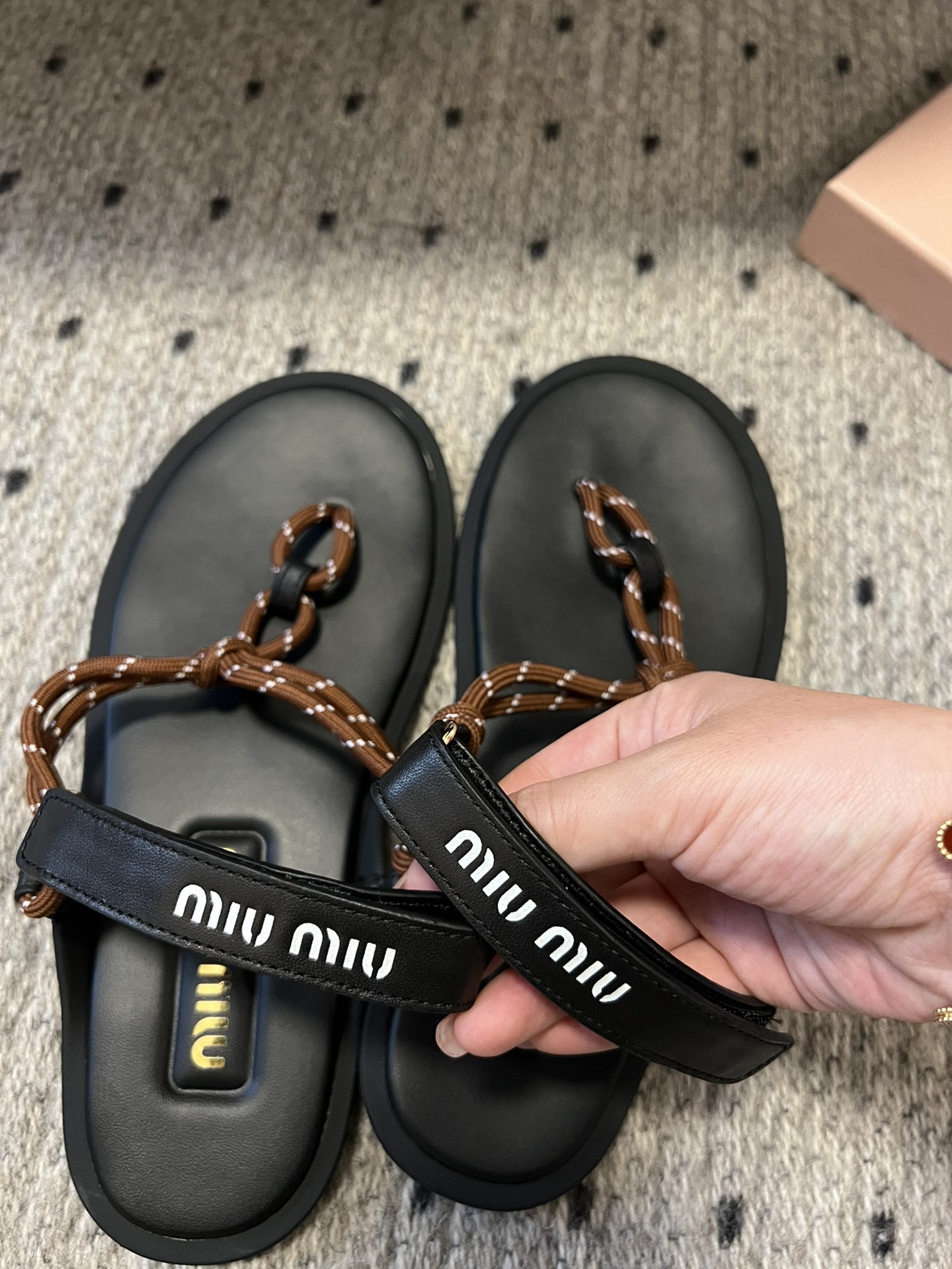 NIGO MiuMiu Women's Summer Fashion Casual Toe-exposed Strappy Leather Sandals Shoes #nigo78431