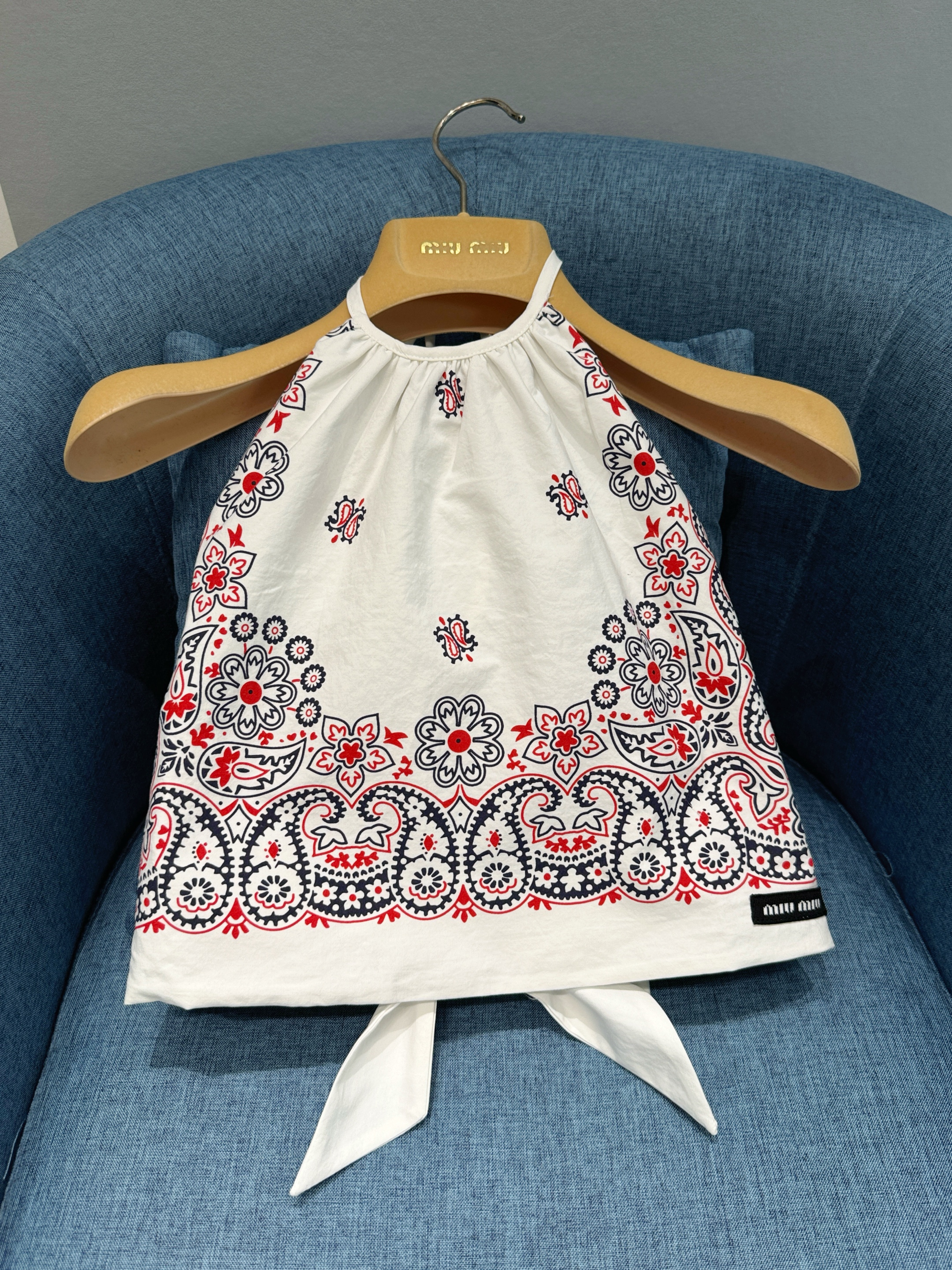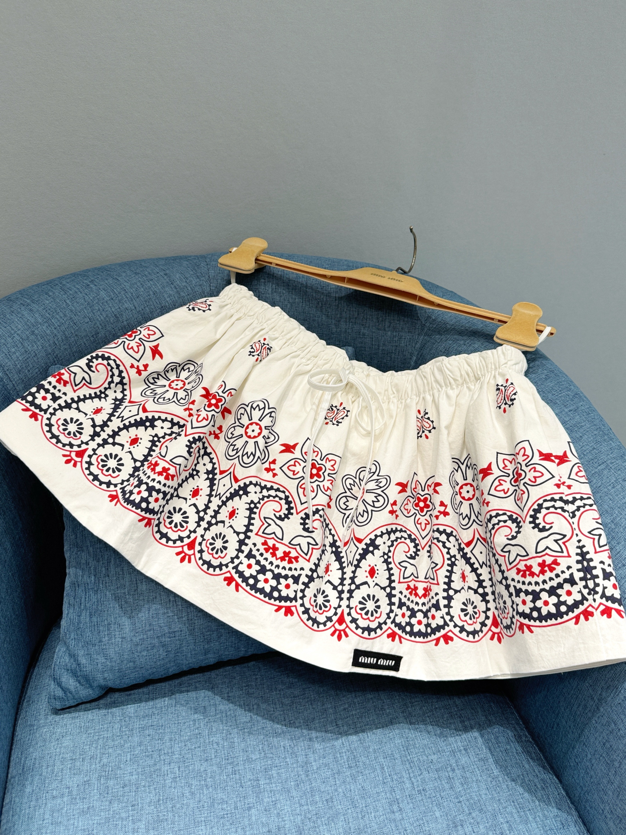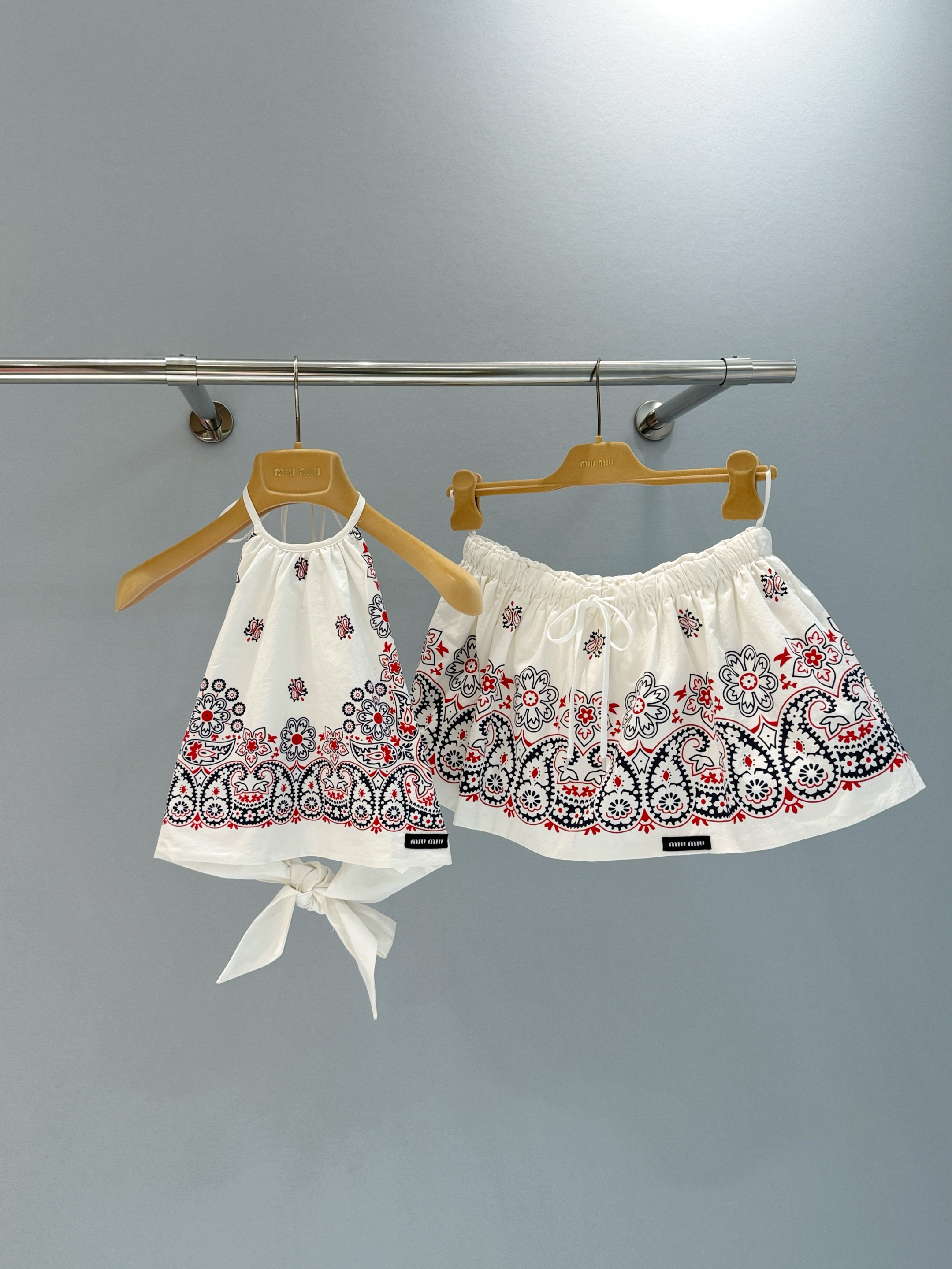 NIGO MiuMiu Women's Summer Floral Print Revenge Backless Tank Top and Casual Stretch Waist Short Skirt Set Suit #nigo77553