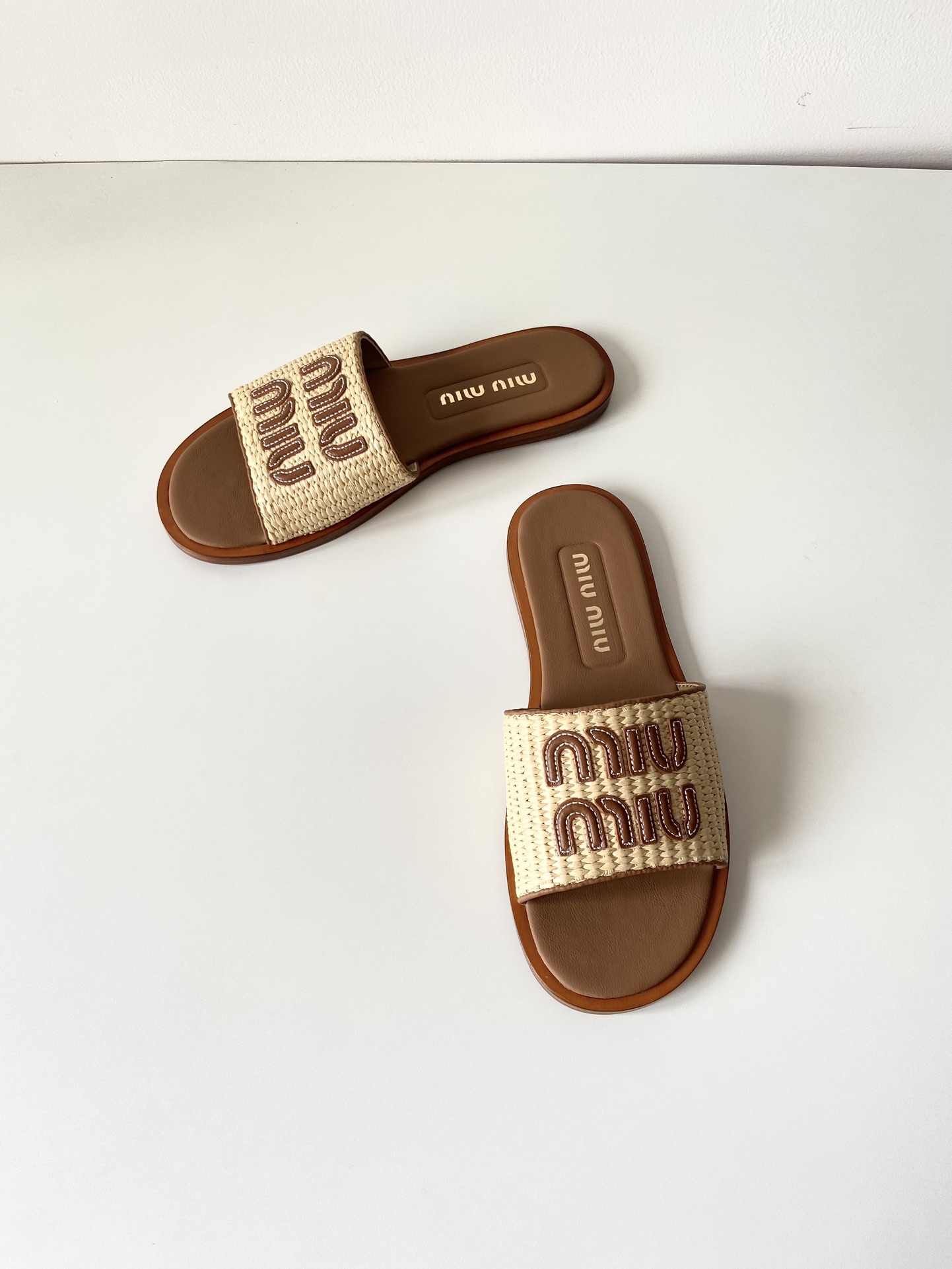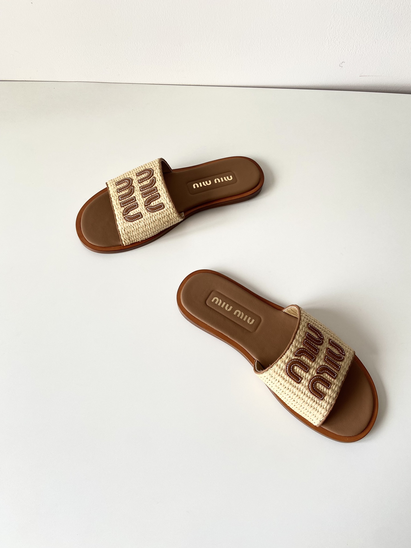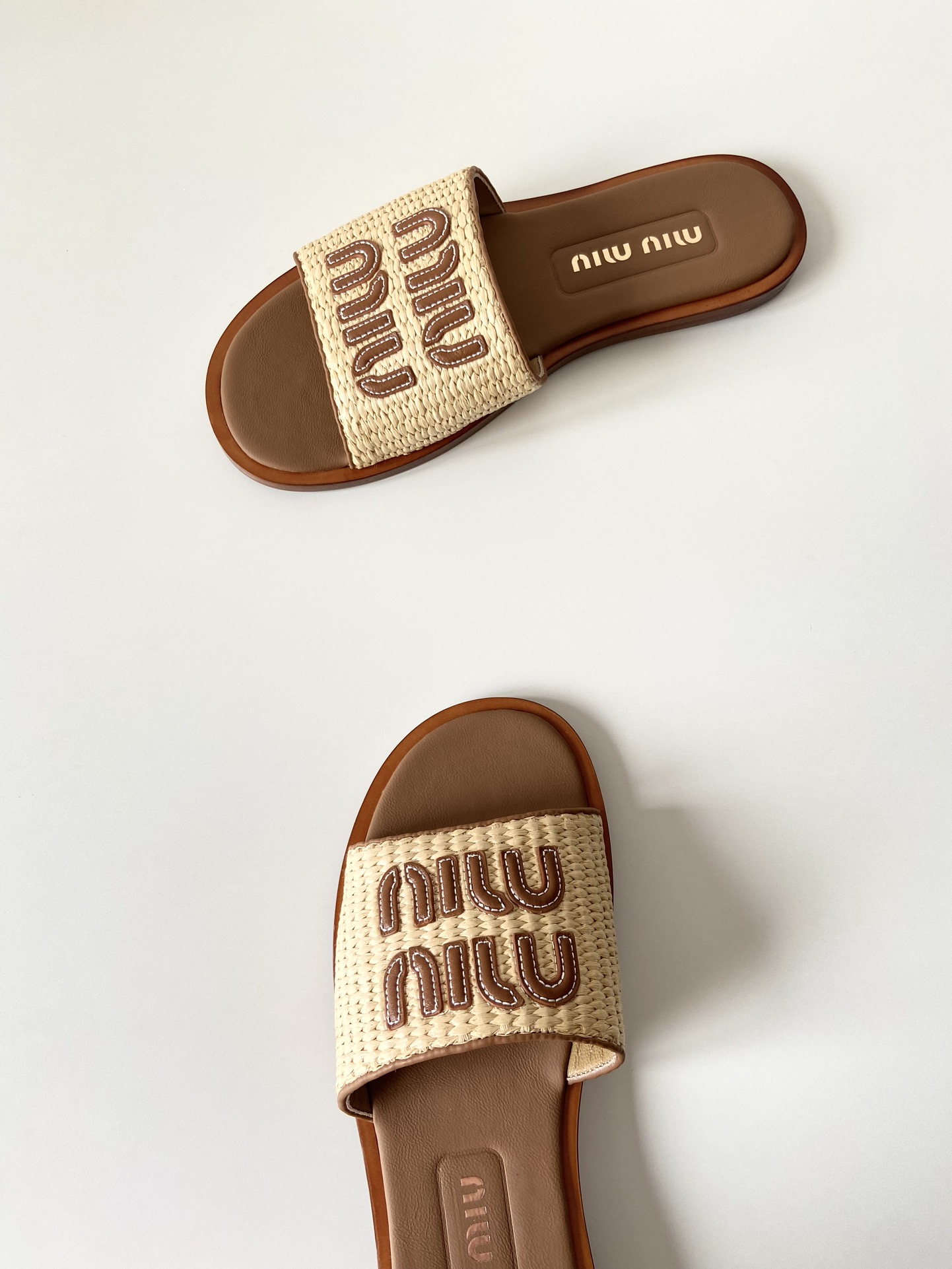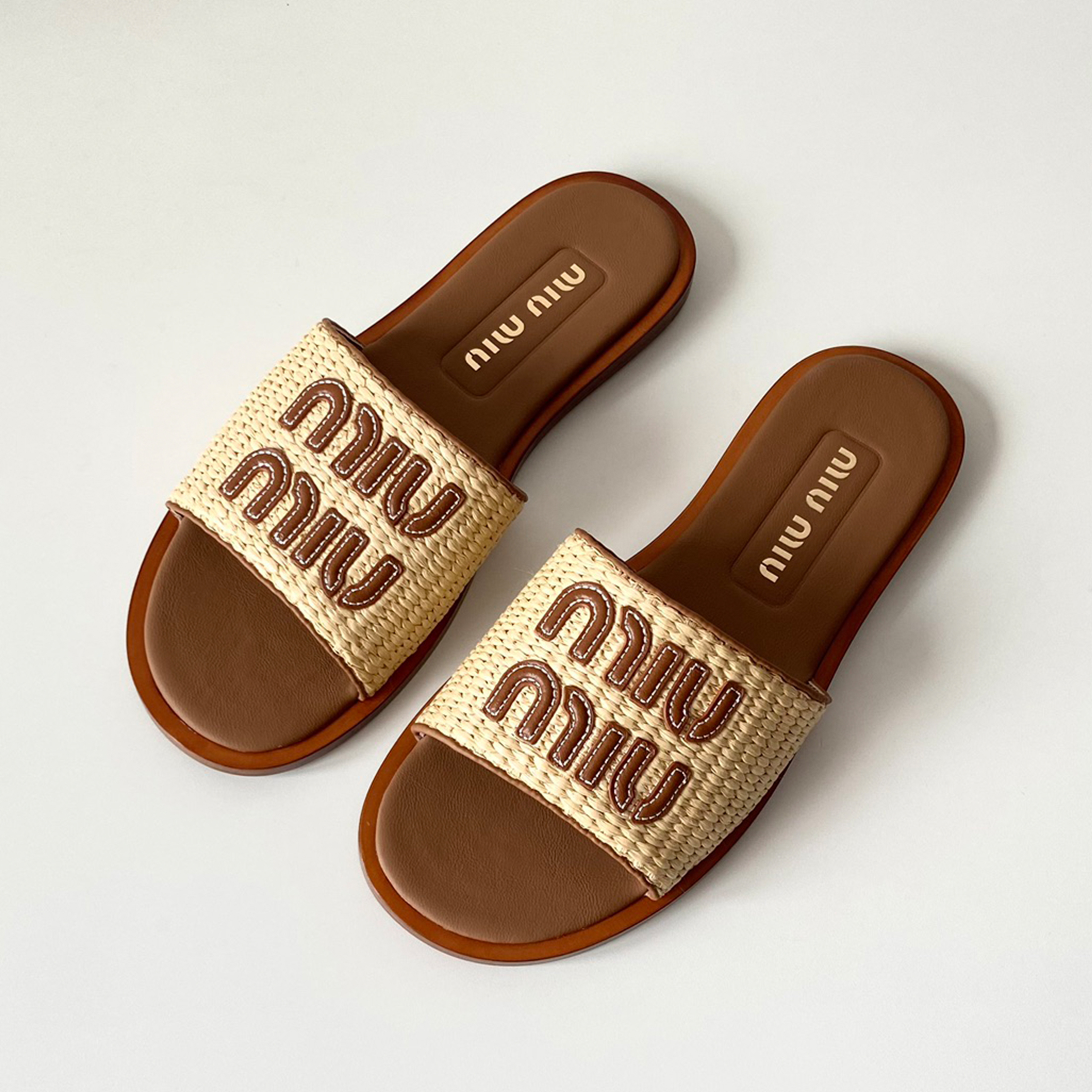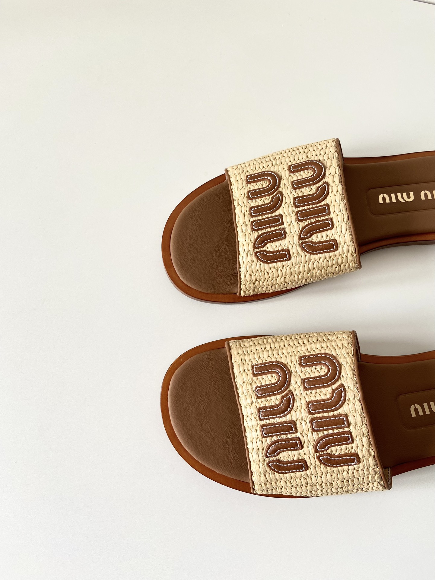 NIGO MiuMiu Women's Summer Gold Logo Fashion Trend Casual Shoes Woven Sandals Comfortable Slippers #nigo71298