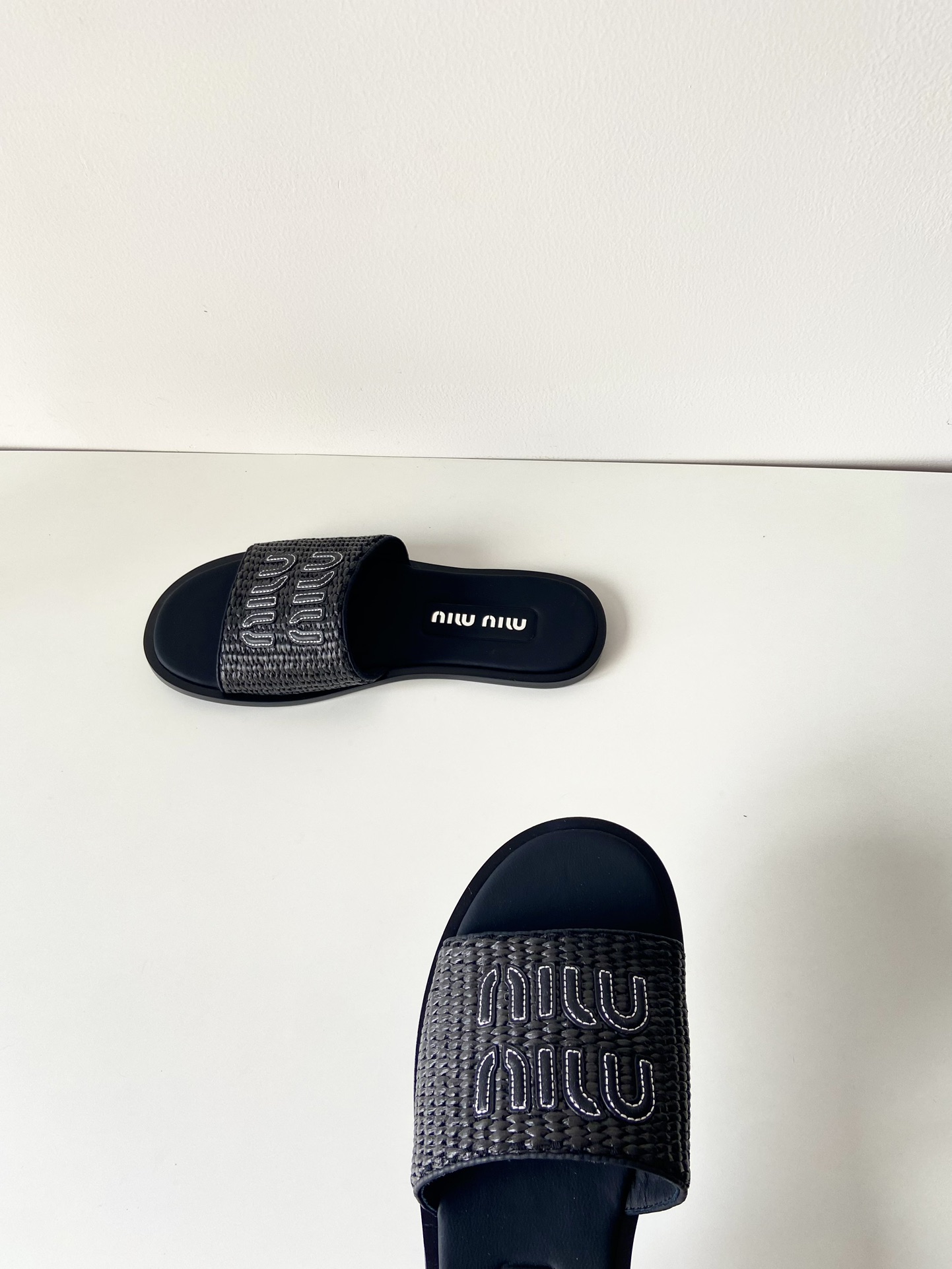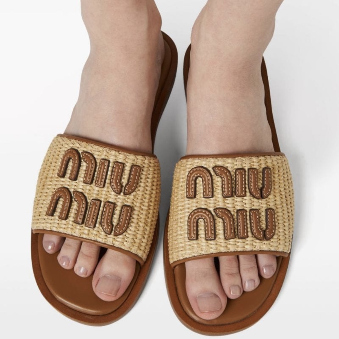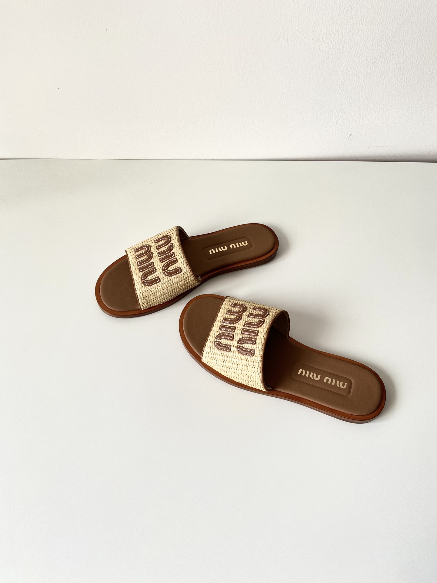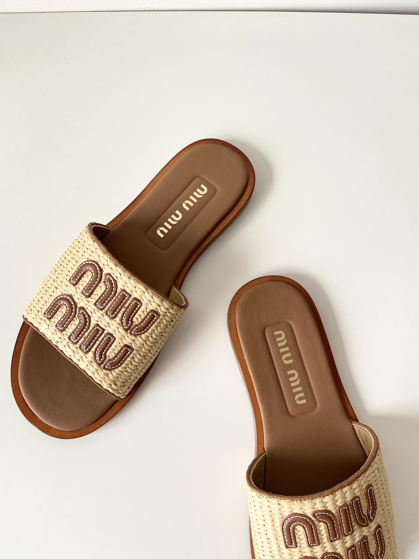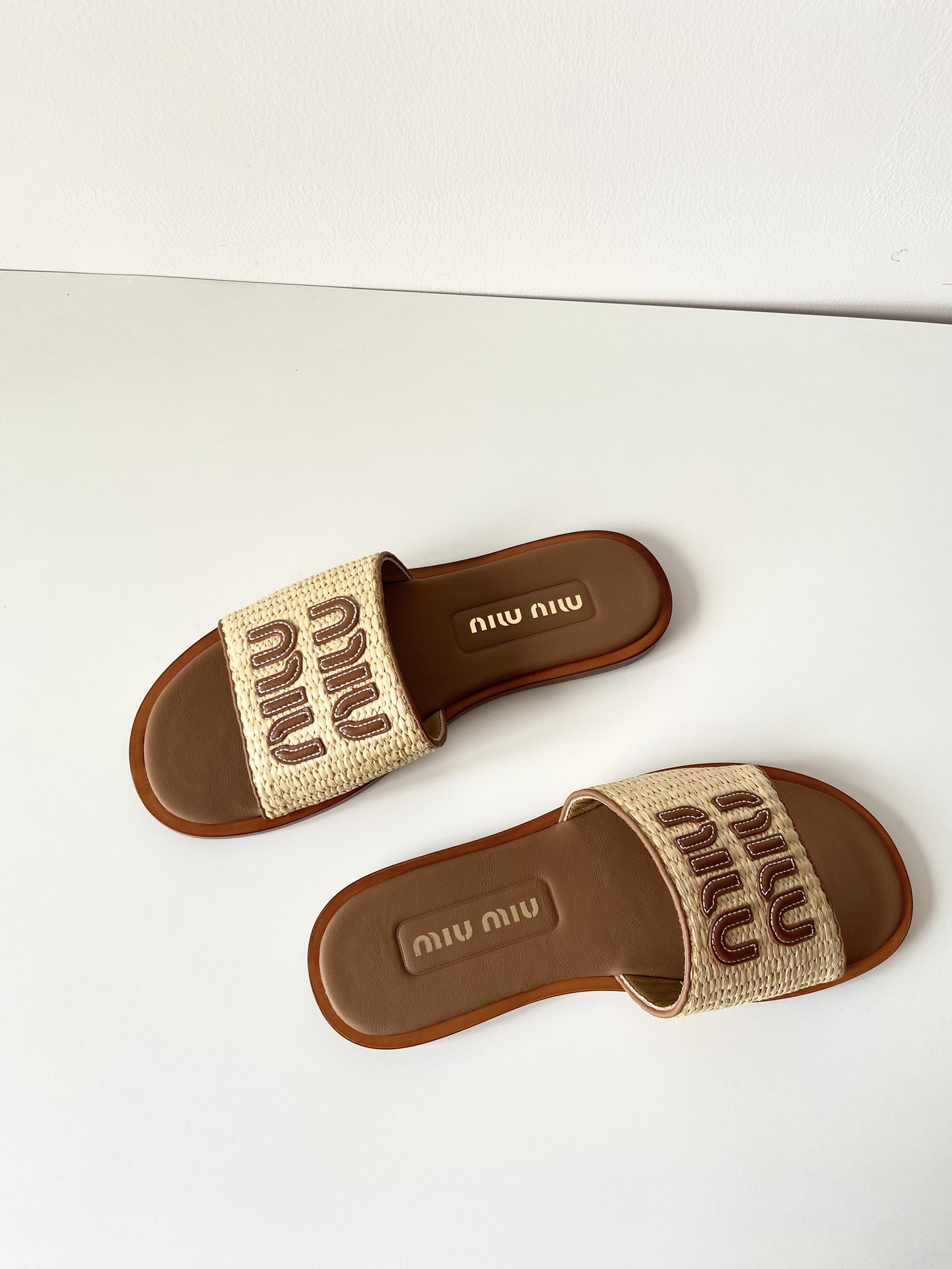NIGO MiuMiu Women's Summer Gold Logo Fashion Trend Casual Shoes Woven Sandals Comfortable Slippers #nigo71298