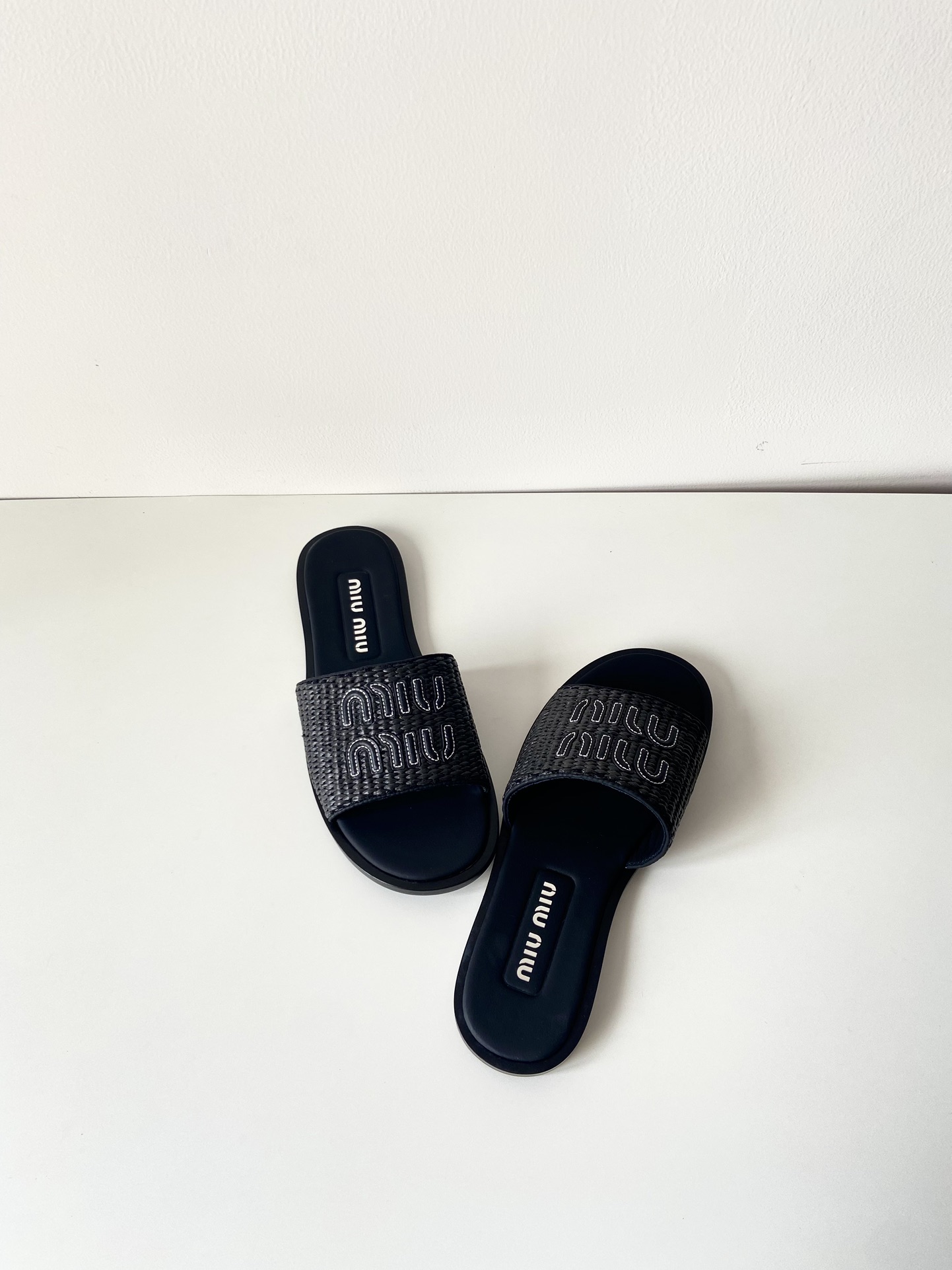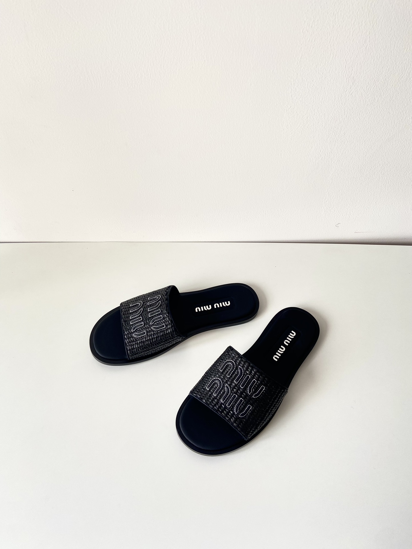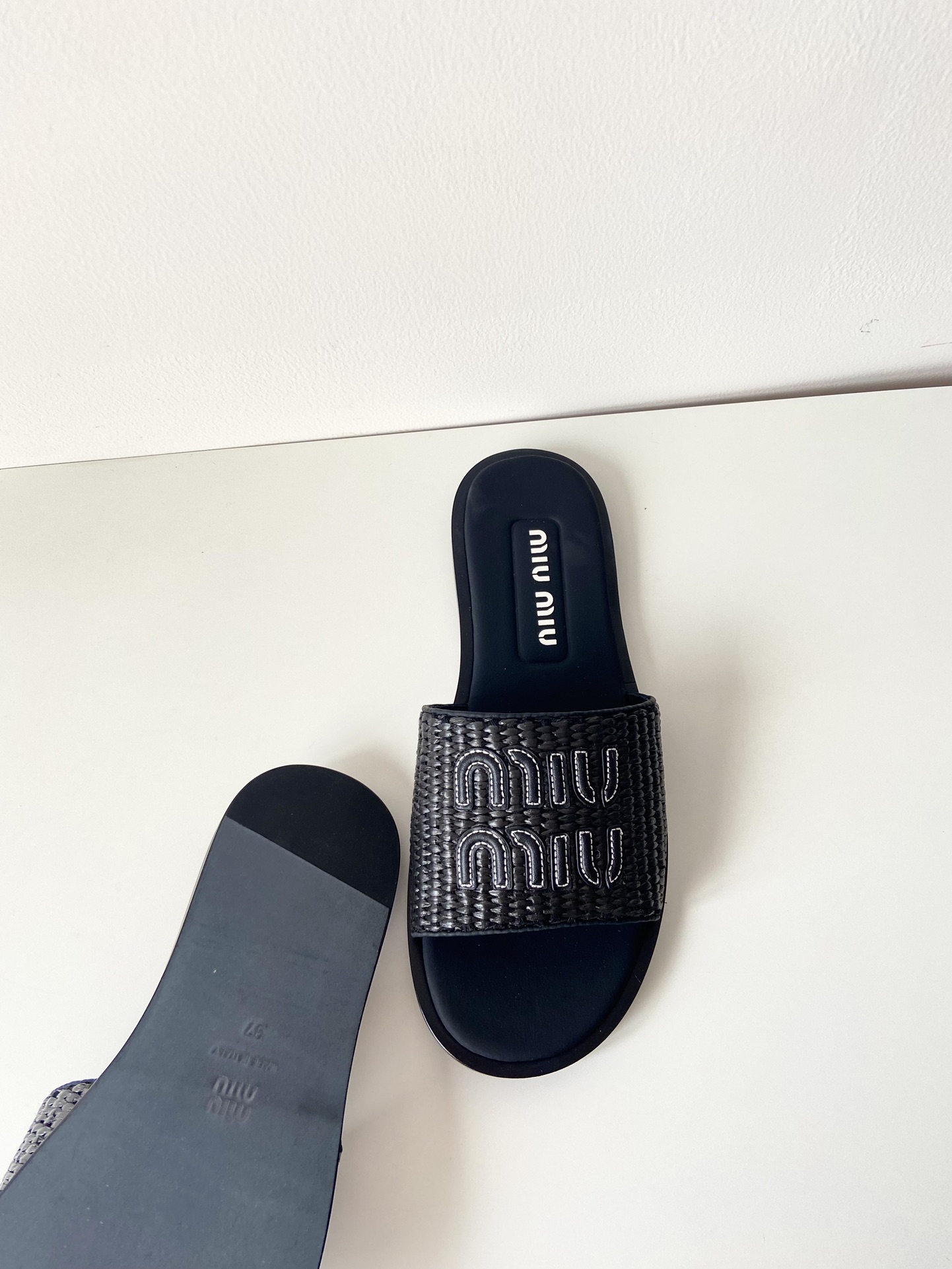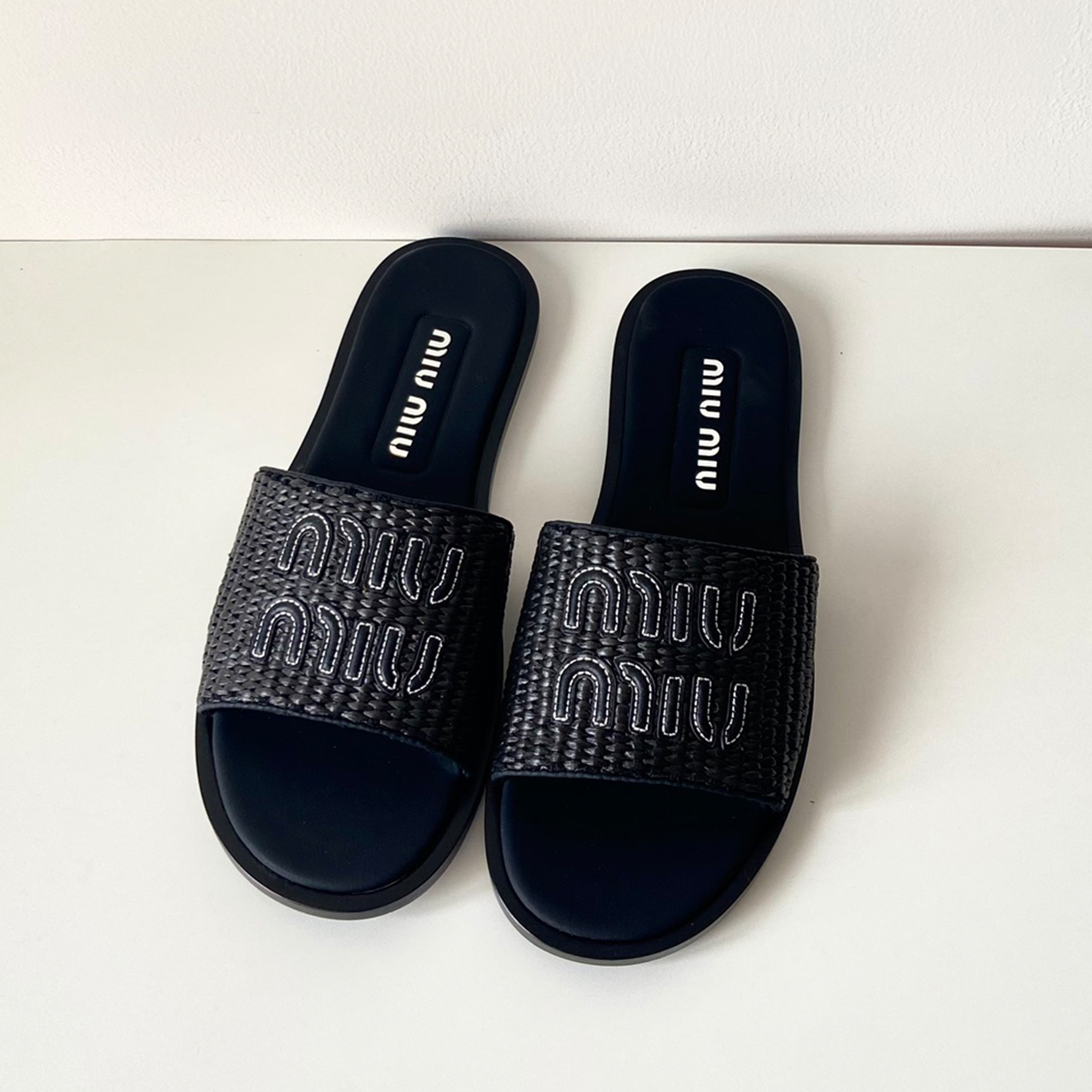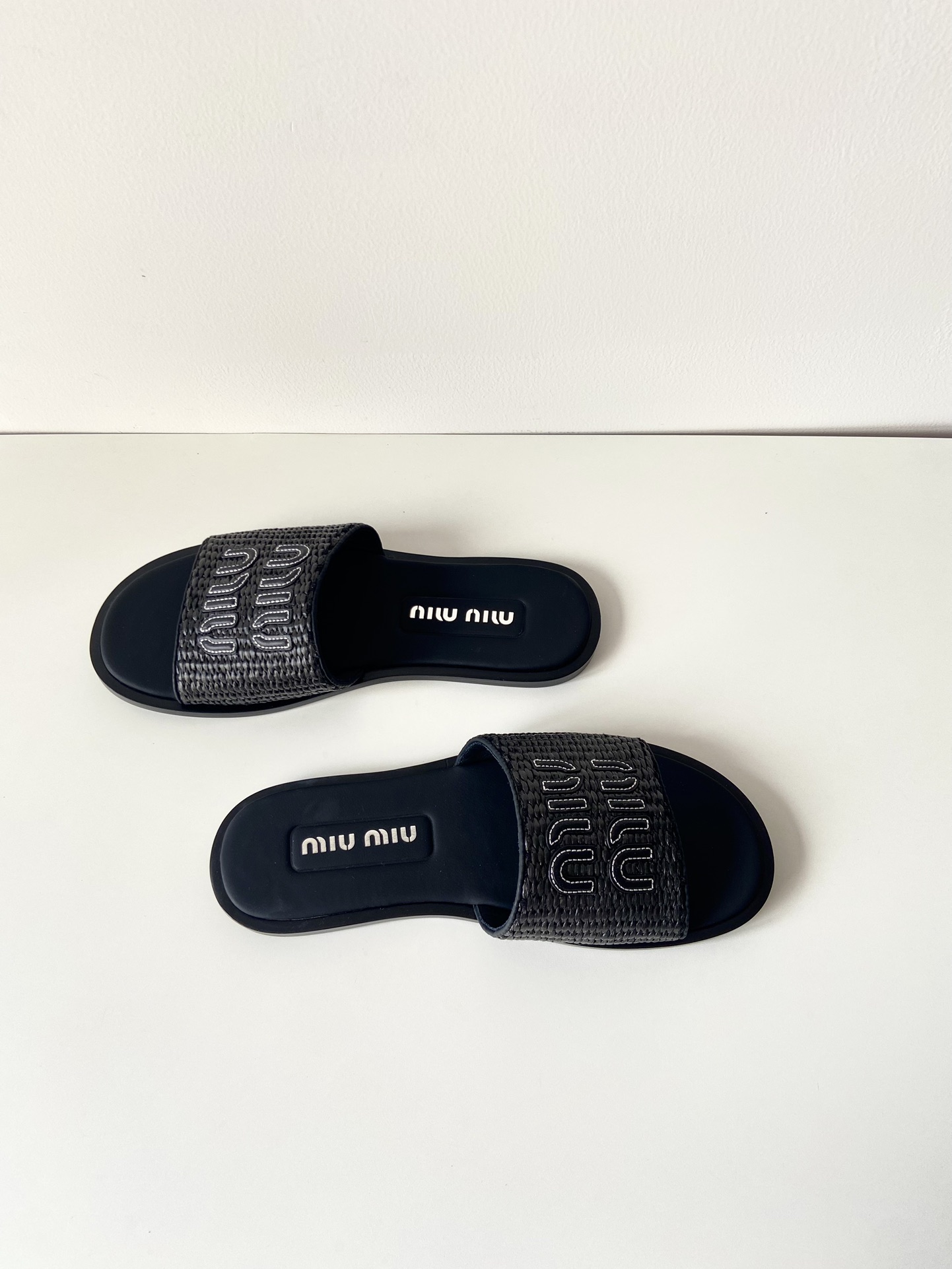 NIGO MiuMiu Women's Summer Gold Logo Fashion Trend Casual Shoes Woven Sandals Comfortable Slippers #nigo71298