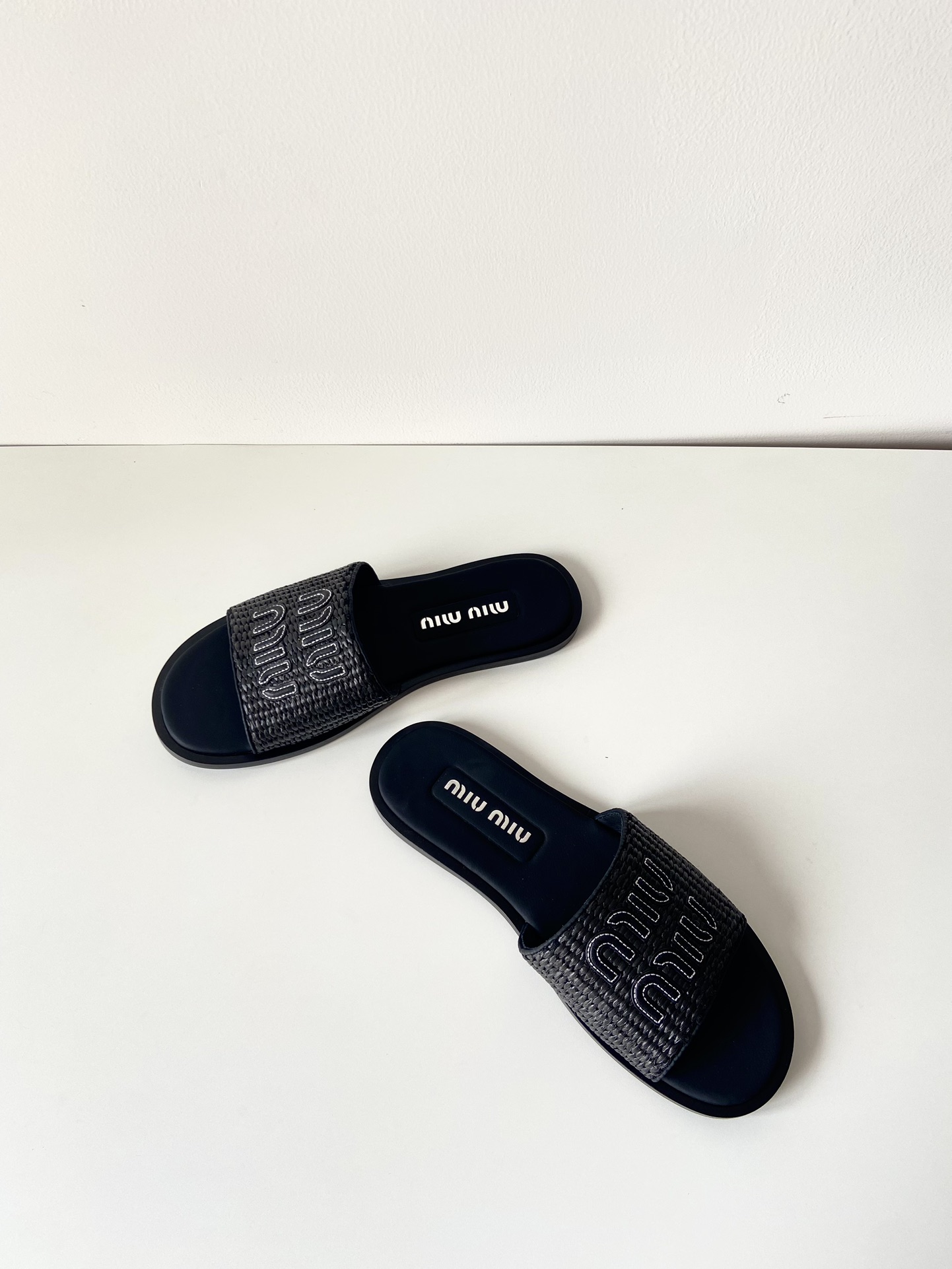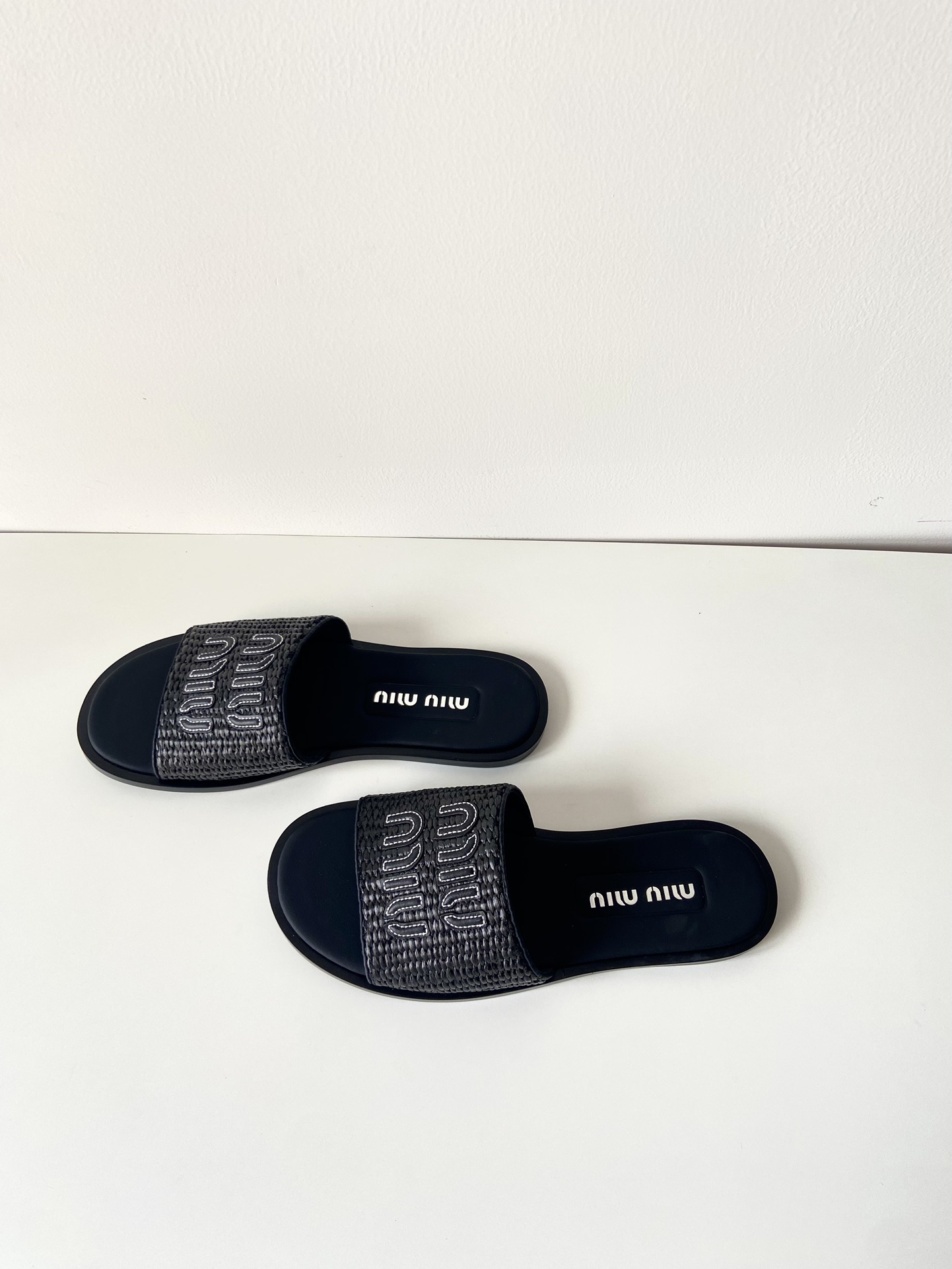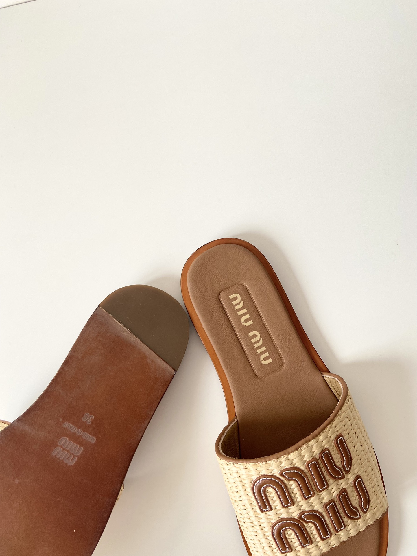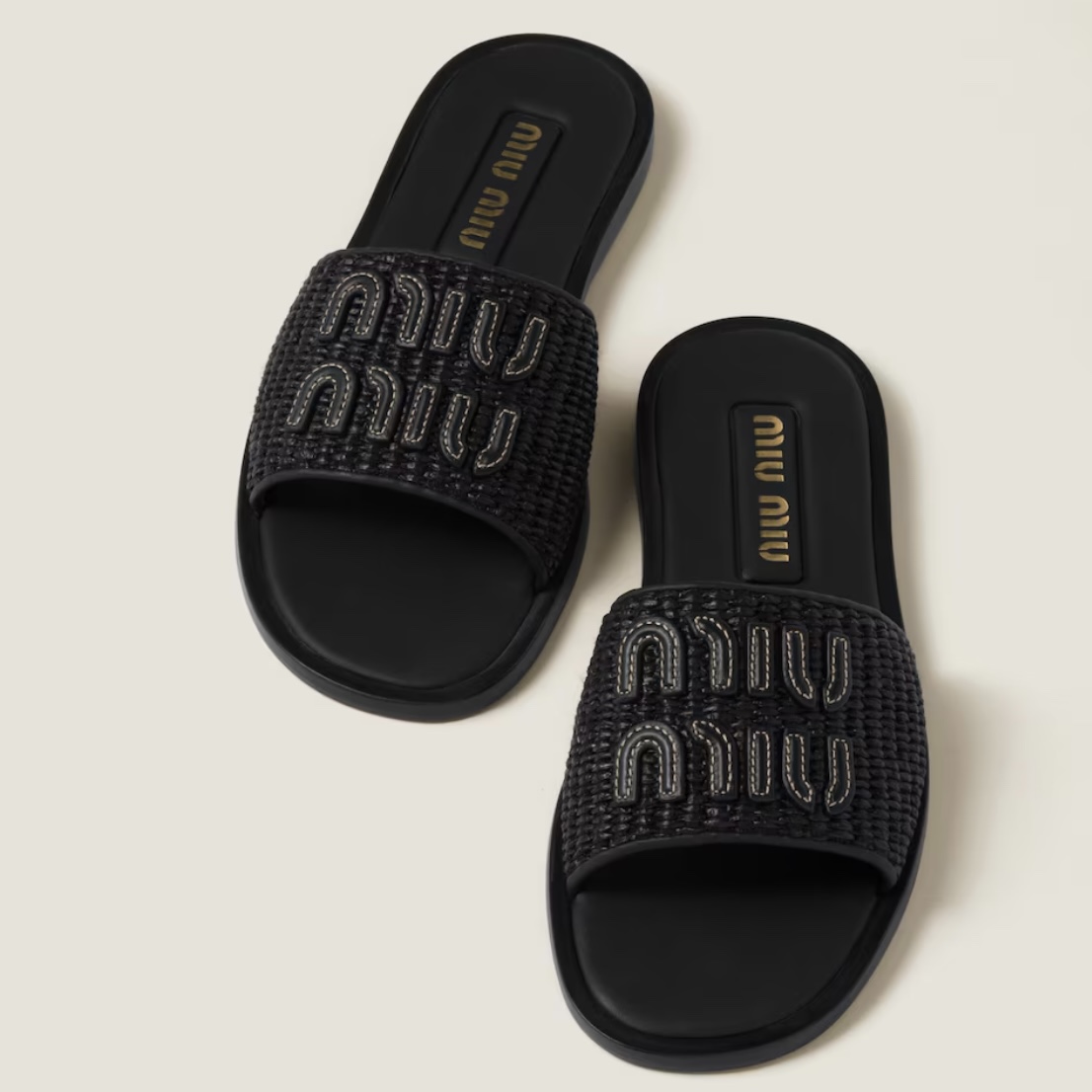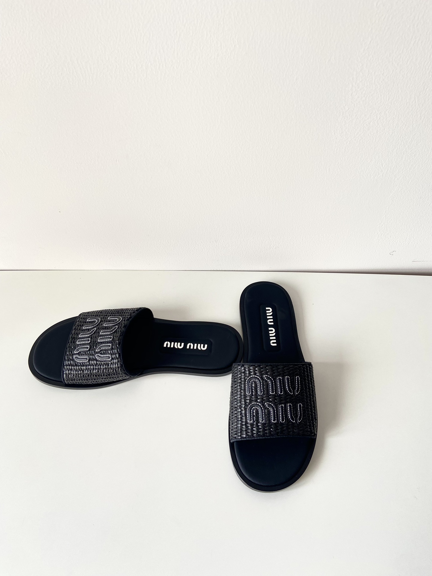 NIGO MiuMiu Women's Summer Gold Logo Fashion Trend Casual Shoes Woven Sandals Comfortable Slippers #nigo71298