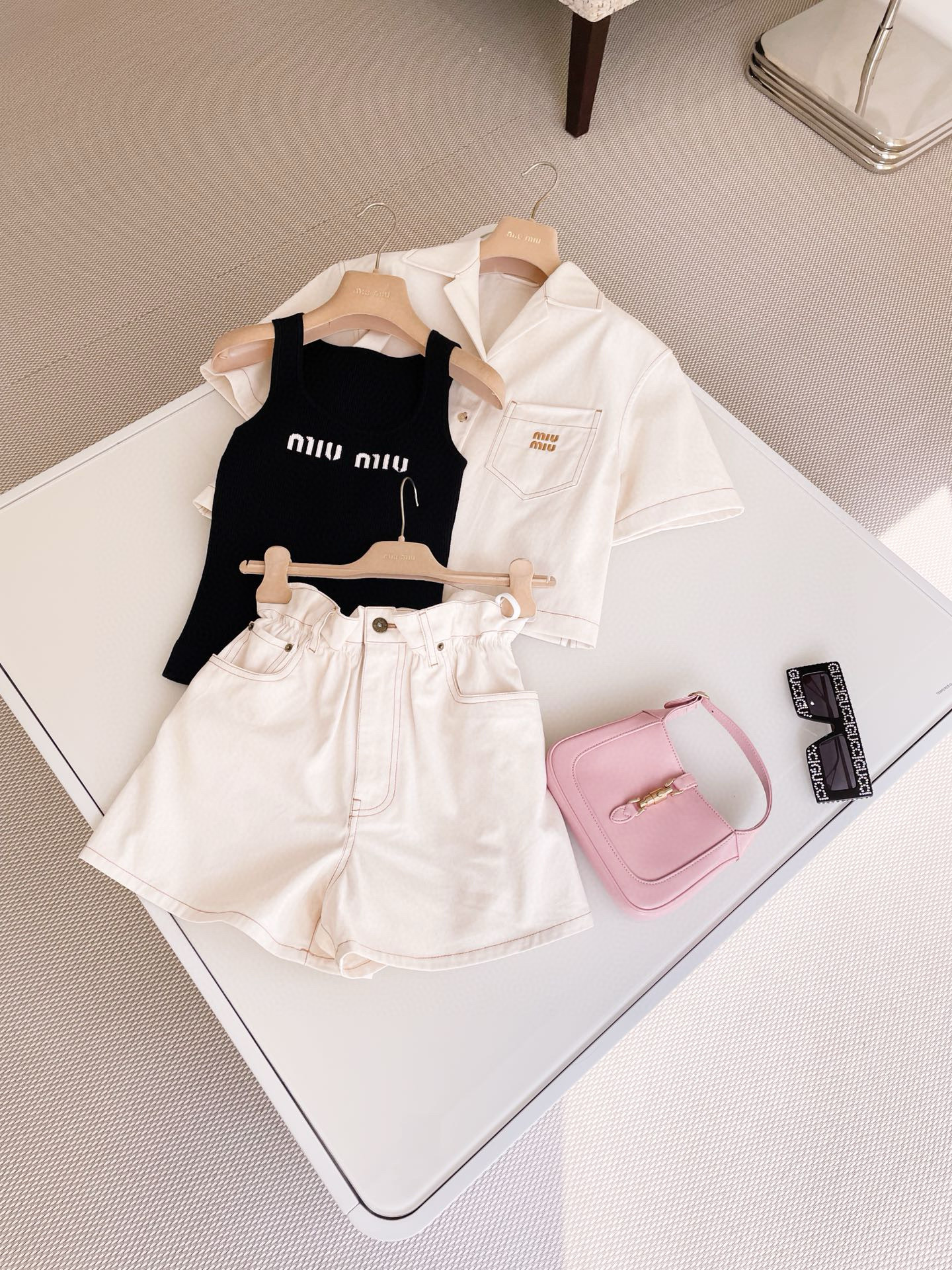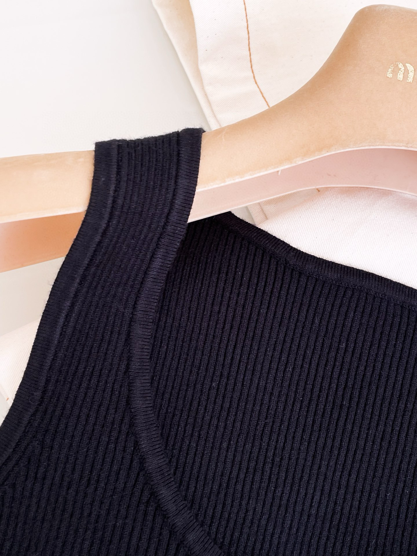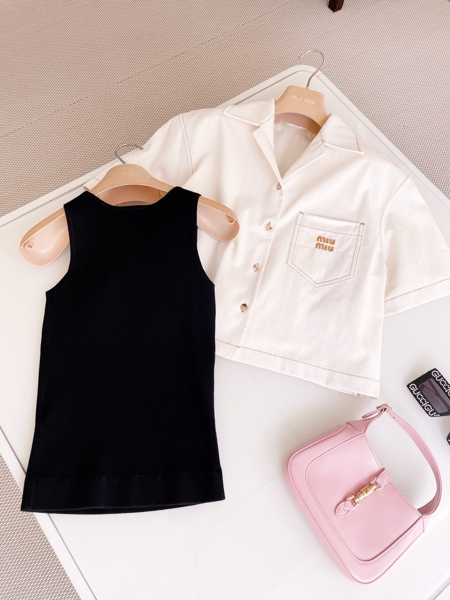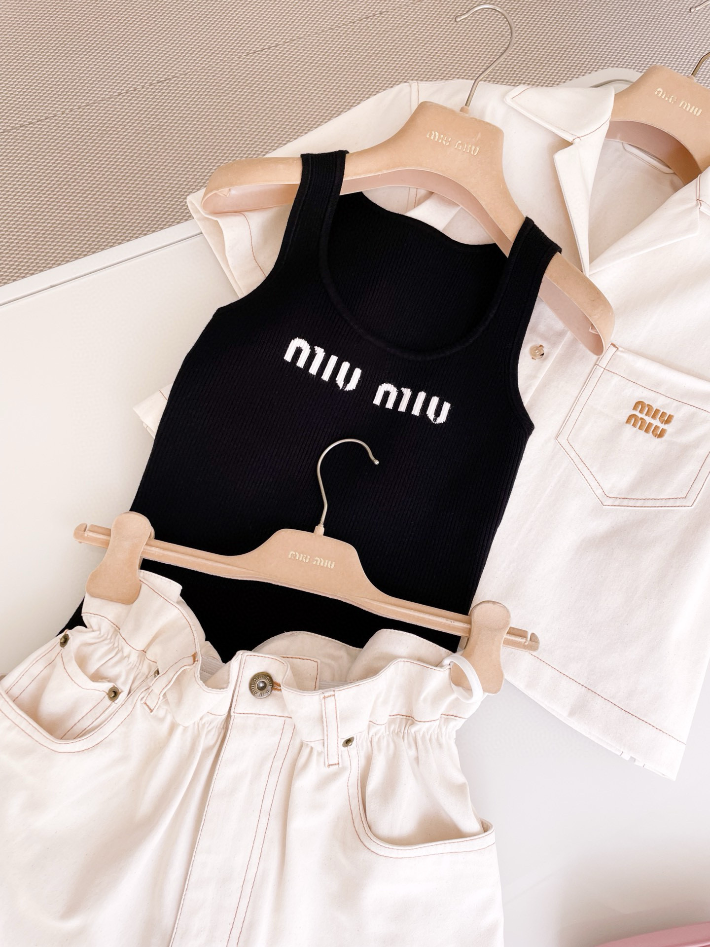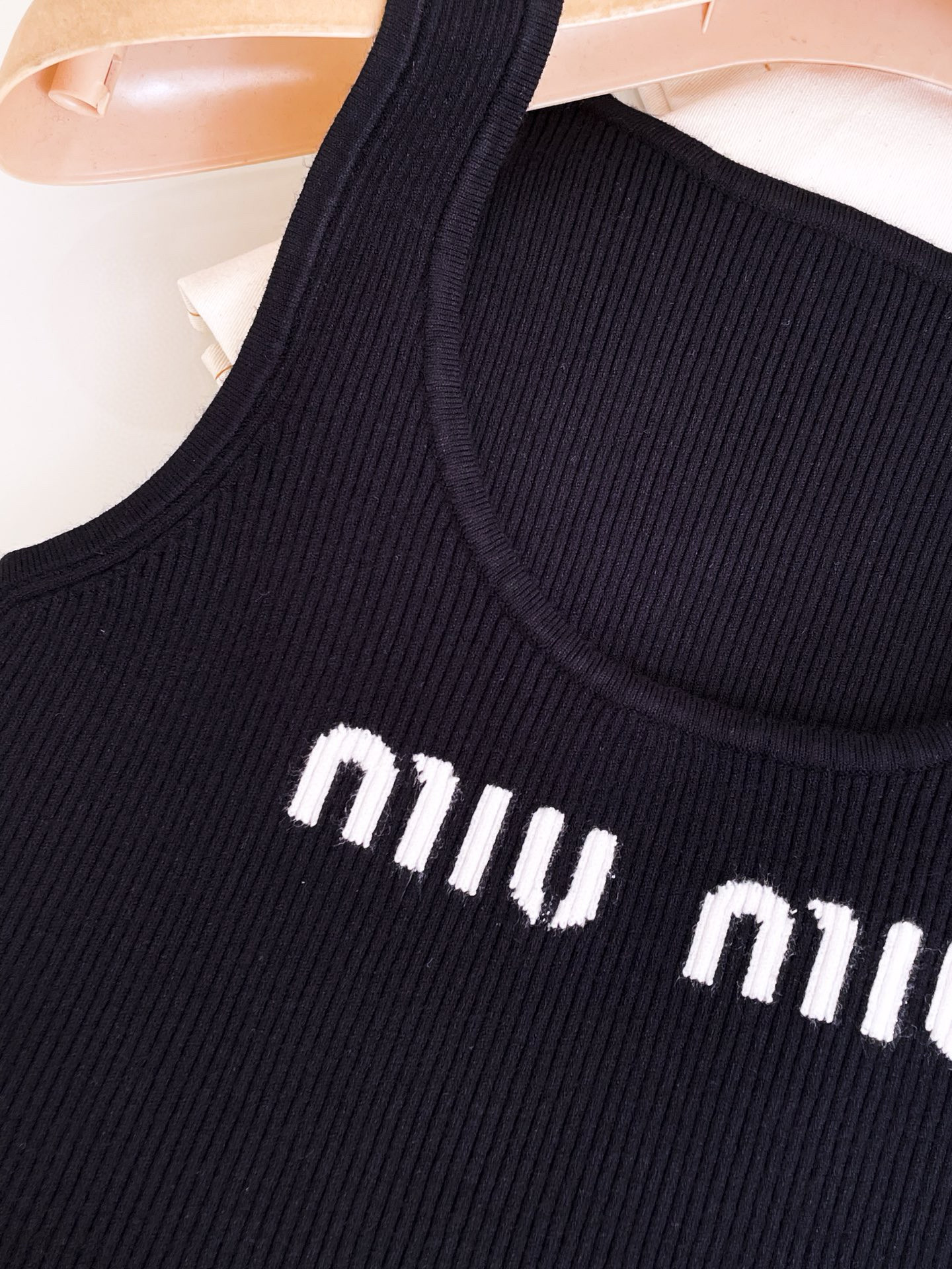 NIGO MiuMiu Women's Summer Logo Print Black Slimming High Stretch Knit Sleeveless Tank Top #nigo99246