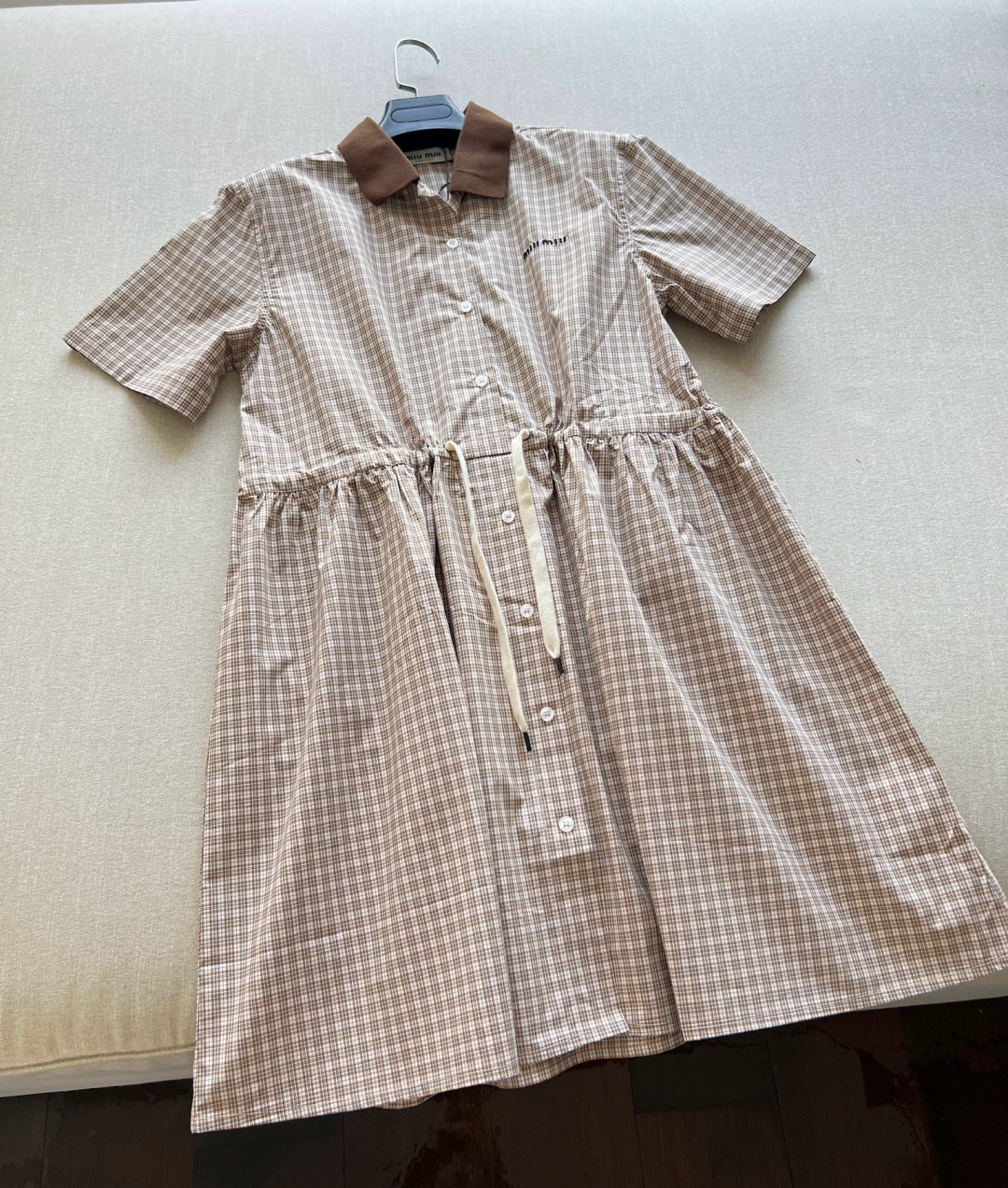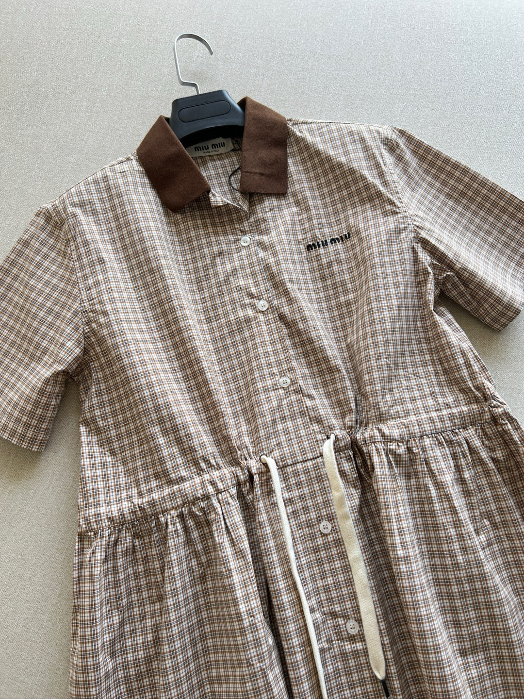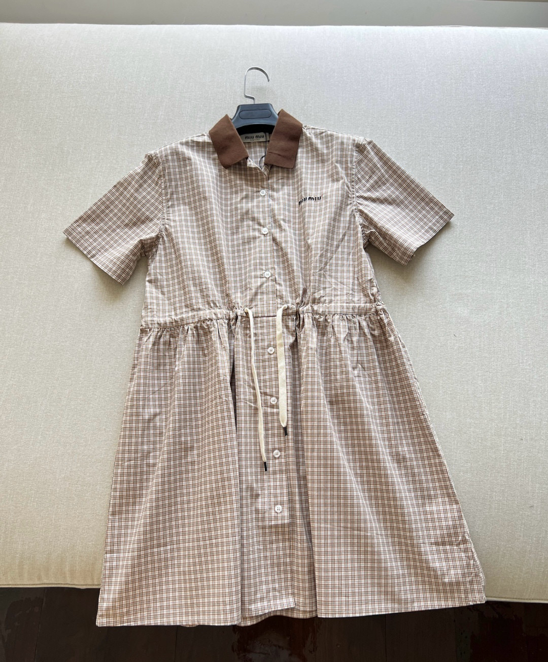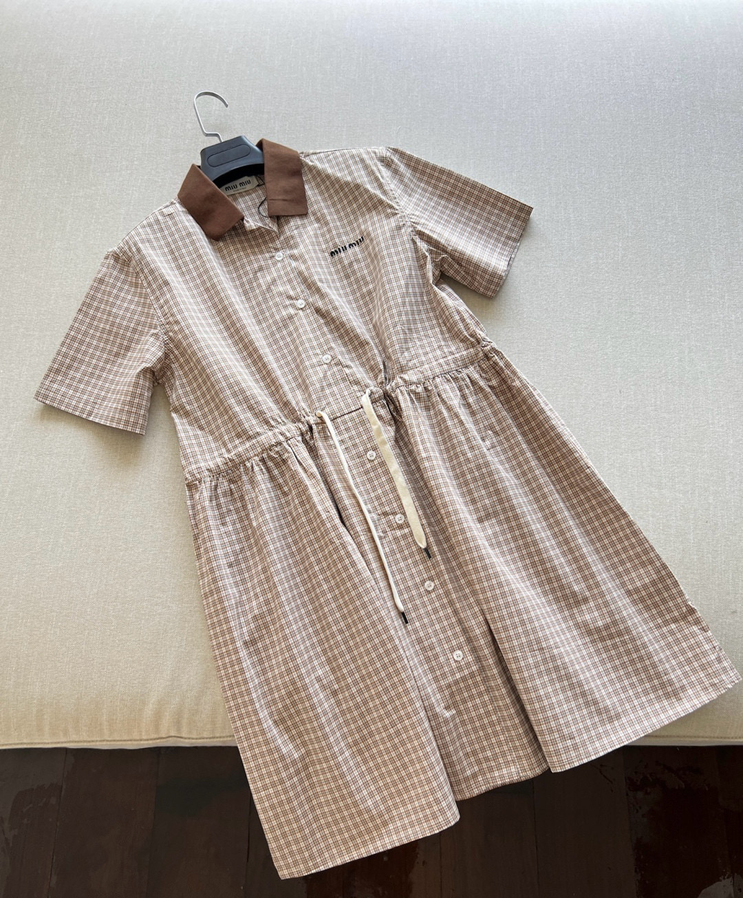 NIGO MiuMiu Women's Summer Plaid Print Collar Single Breasted Short Sleeved Short Dress #nigo77738