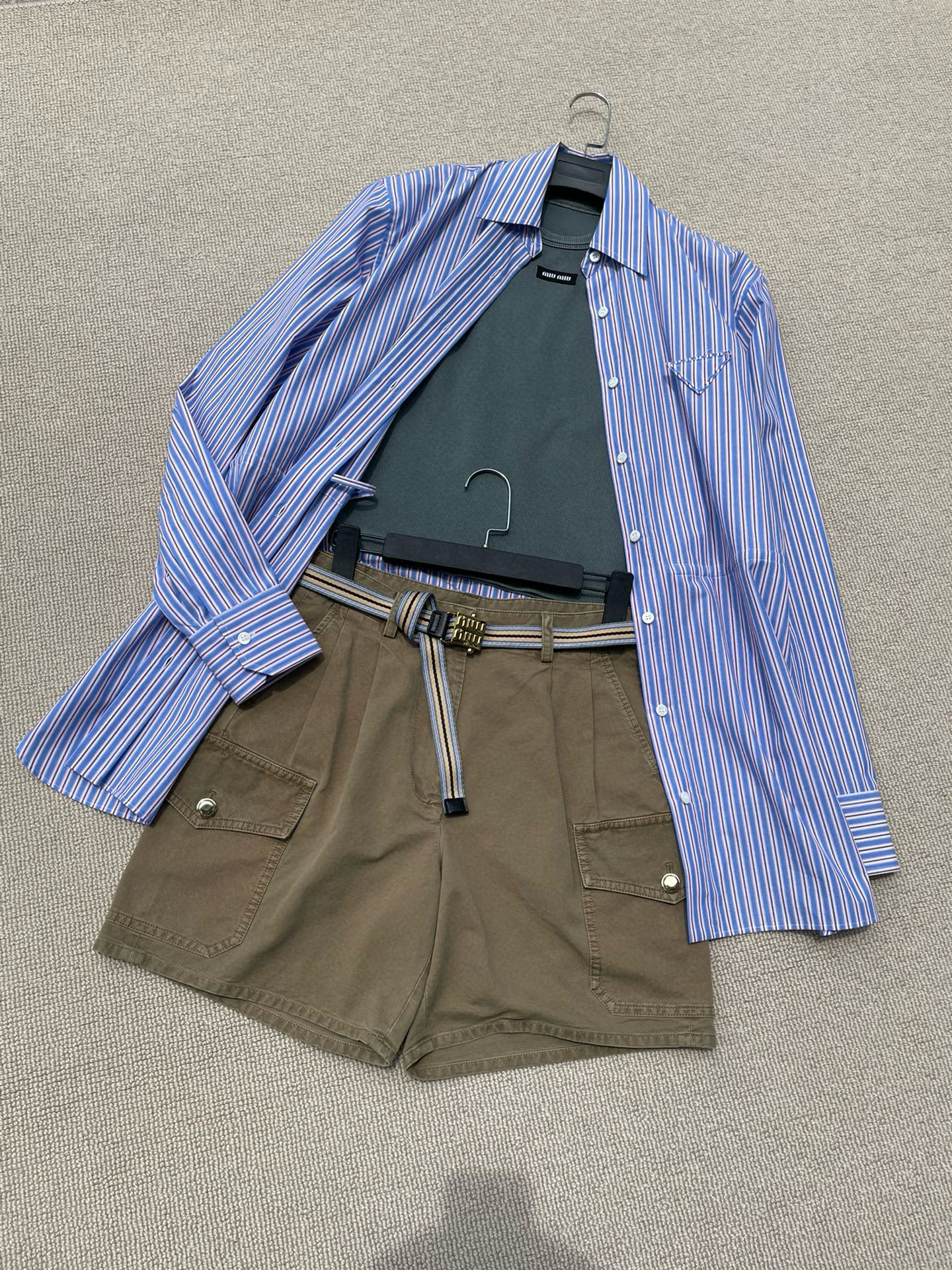NIGO MiuMiu Women's Summer Solid Colour Embroidered Letter Printed Metal Logo Belt Casual Shorts #nigo76727