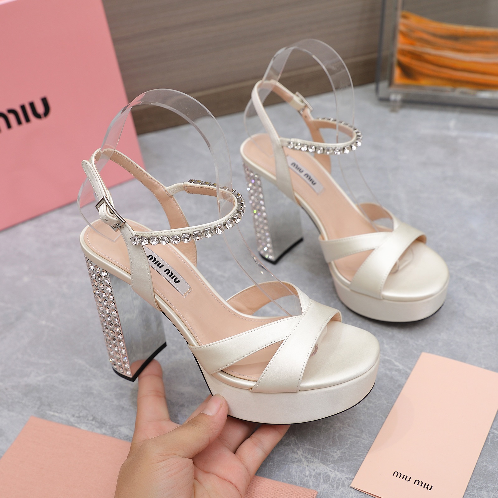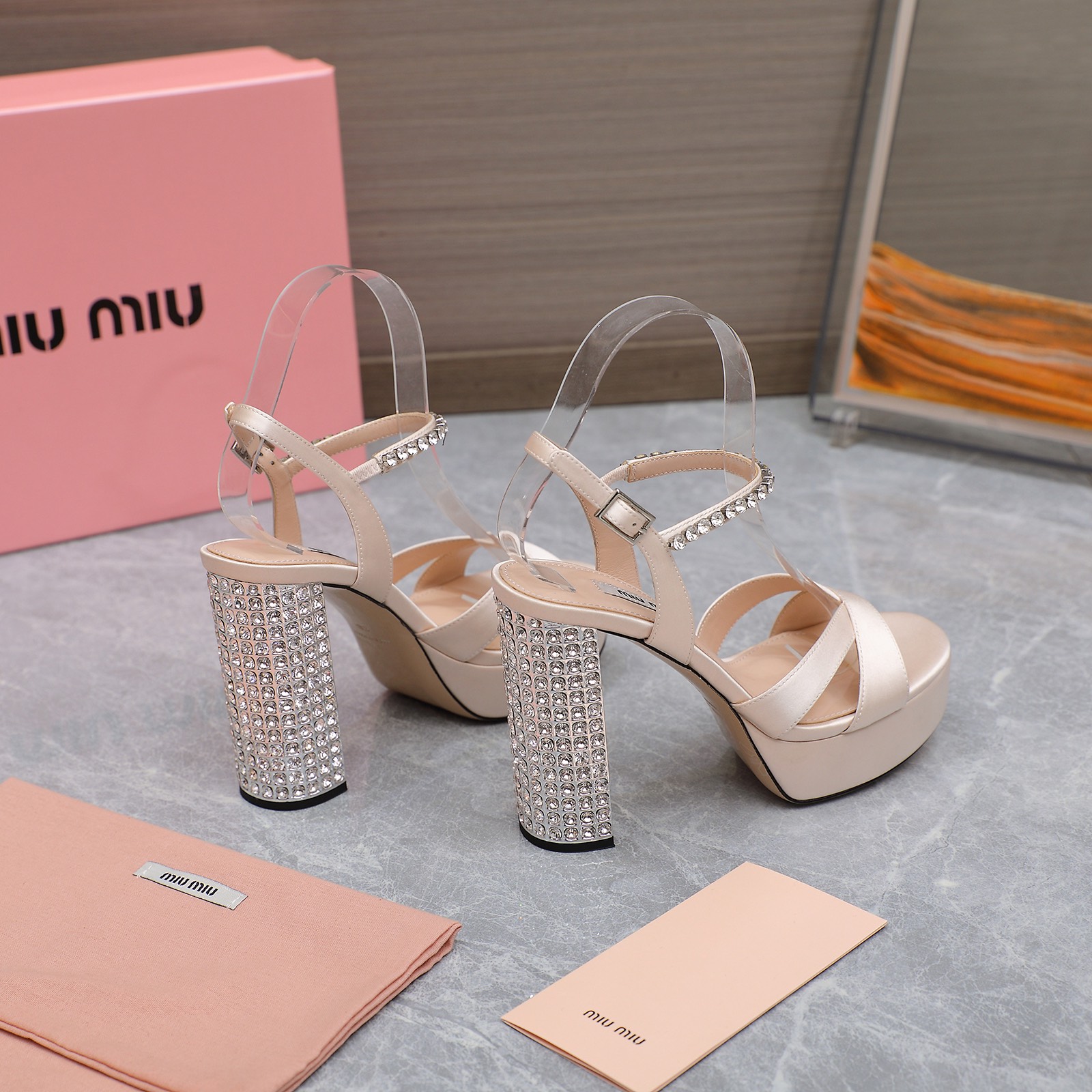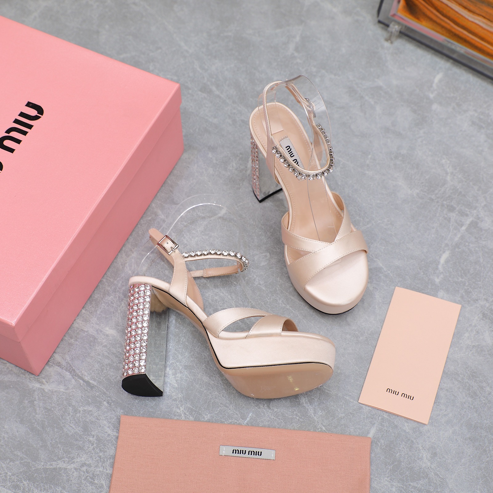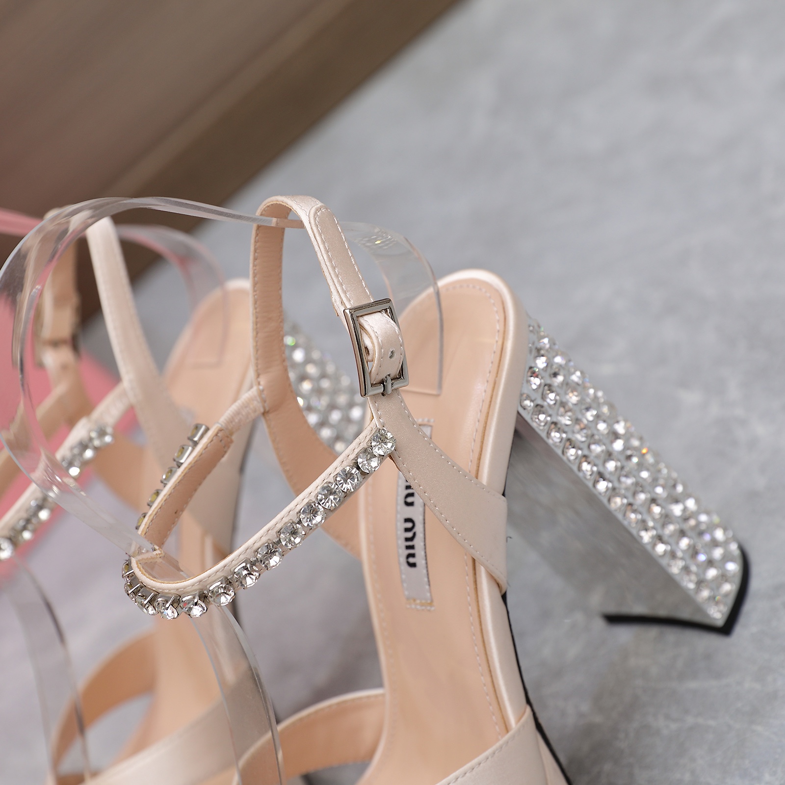 NIGO MiuMiu Women's Summer Solid Colour Sheepskin Diamonds High Heeled Sandals Shoes #nigo76786