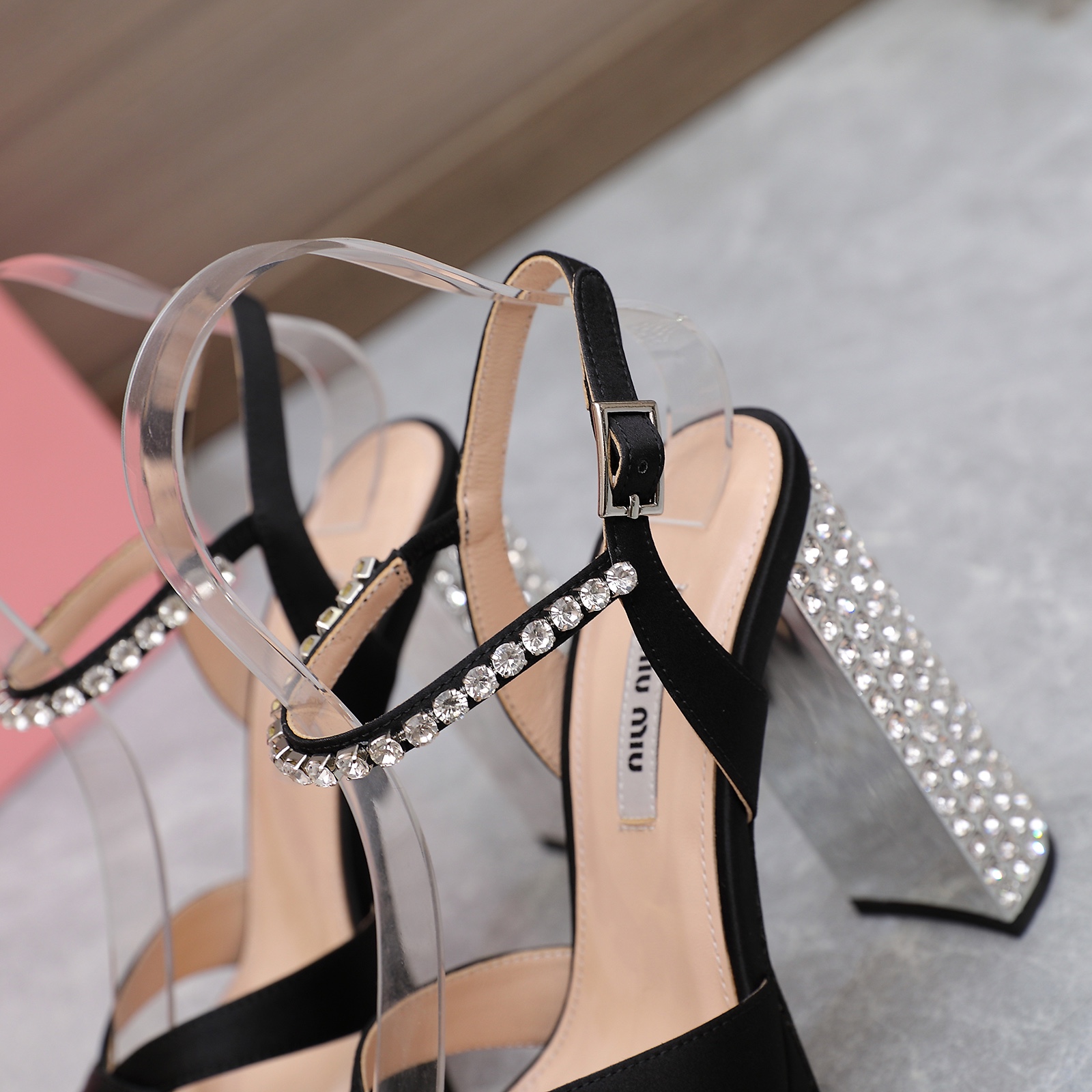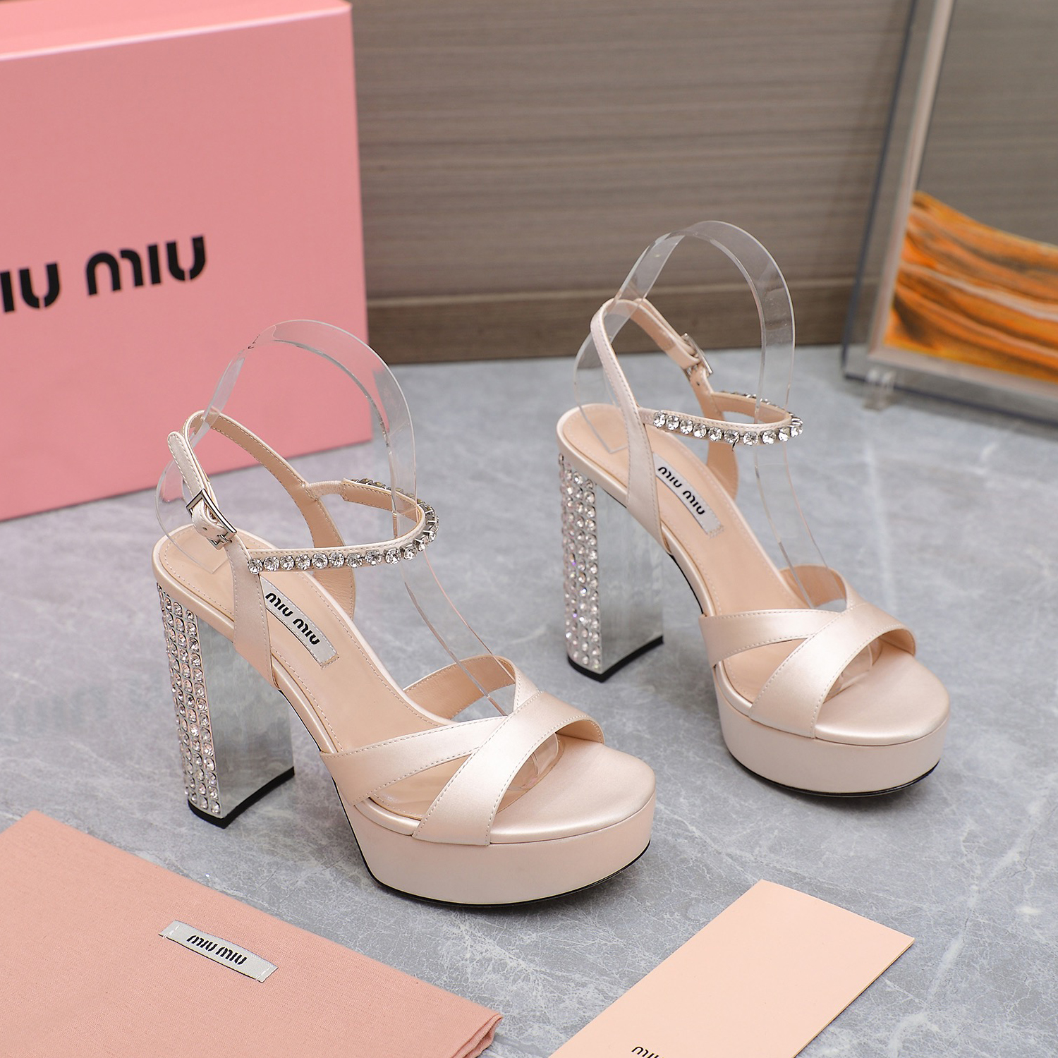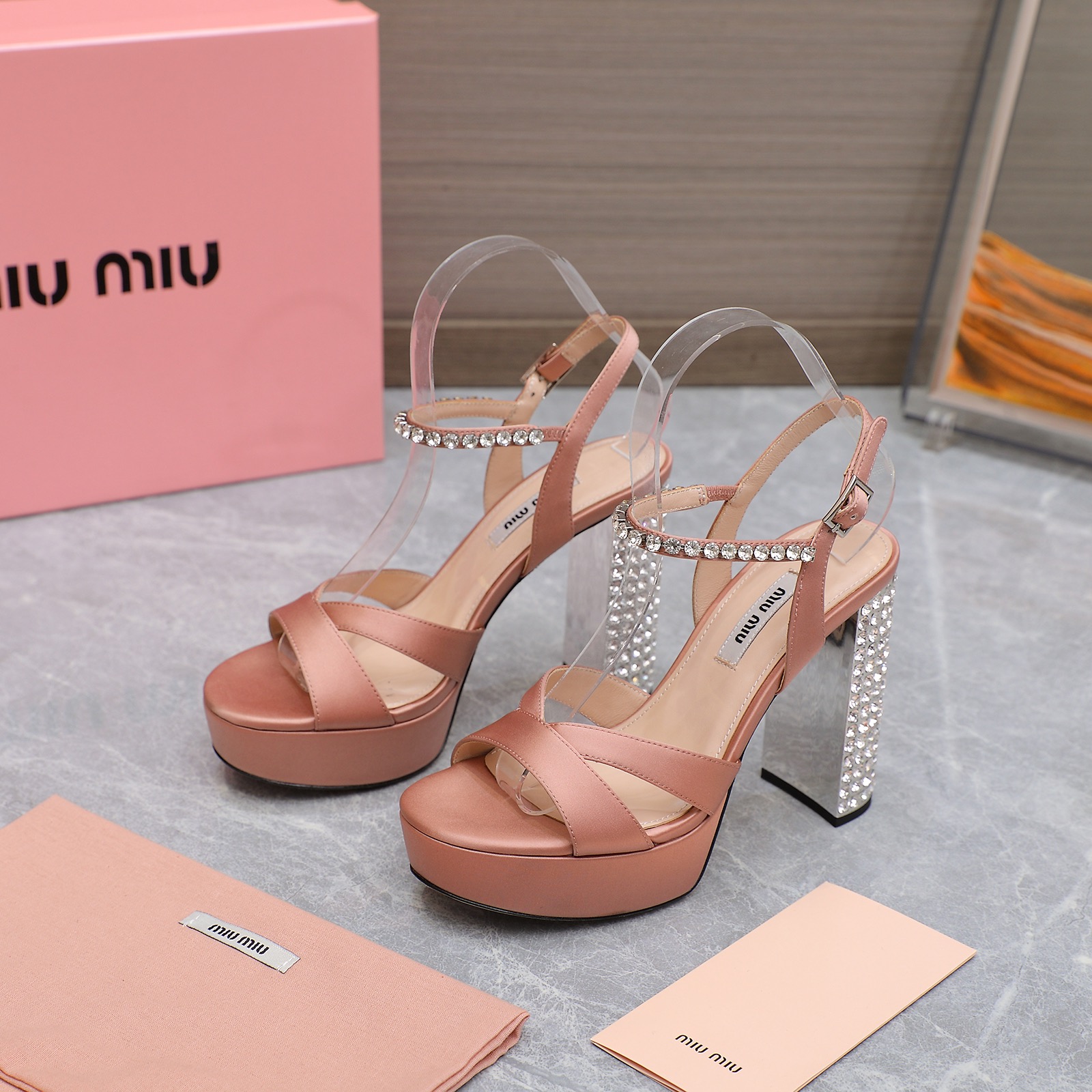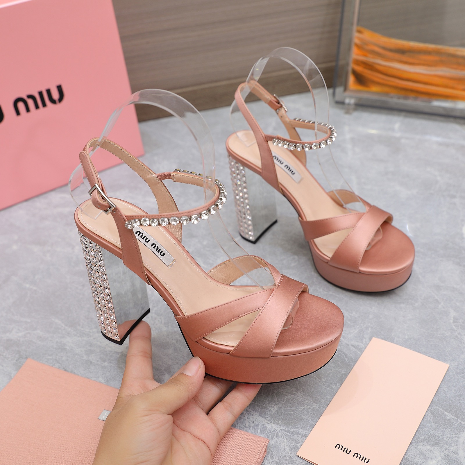 NIGO MiuMiu Women's Summer Solid Colour Sheepskin Diamonds High Heeled Sandals Shoes #nigo76786