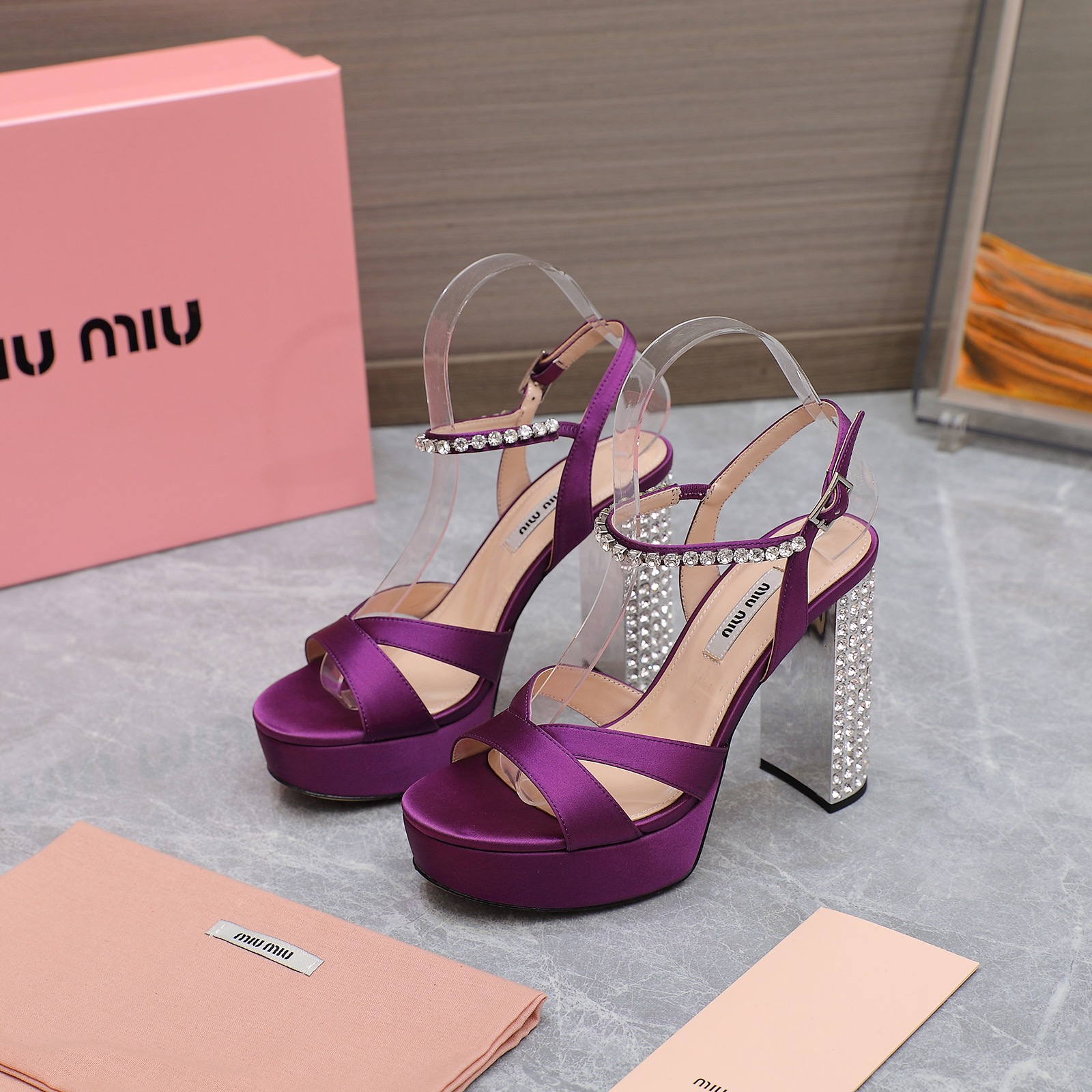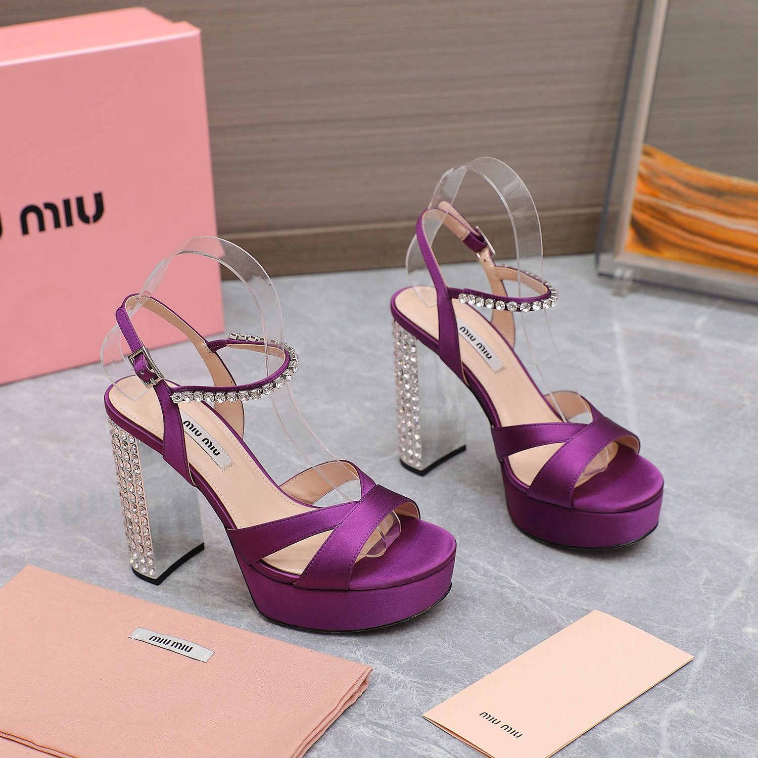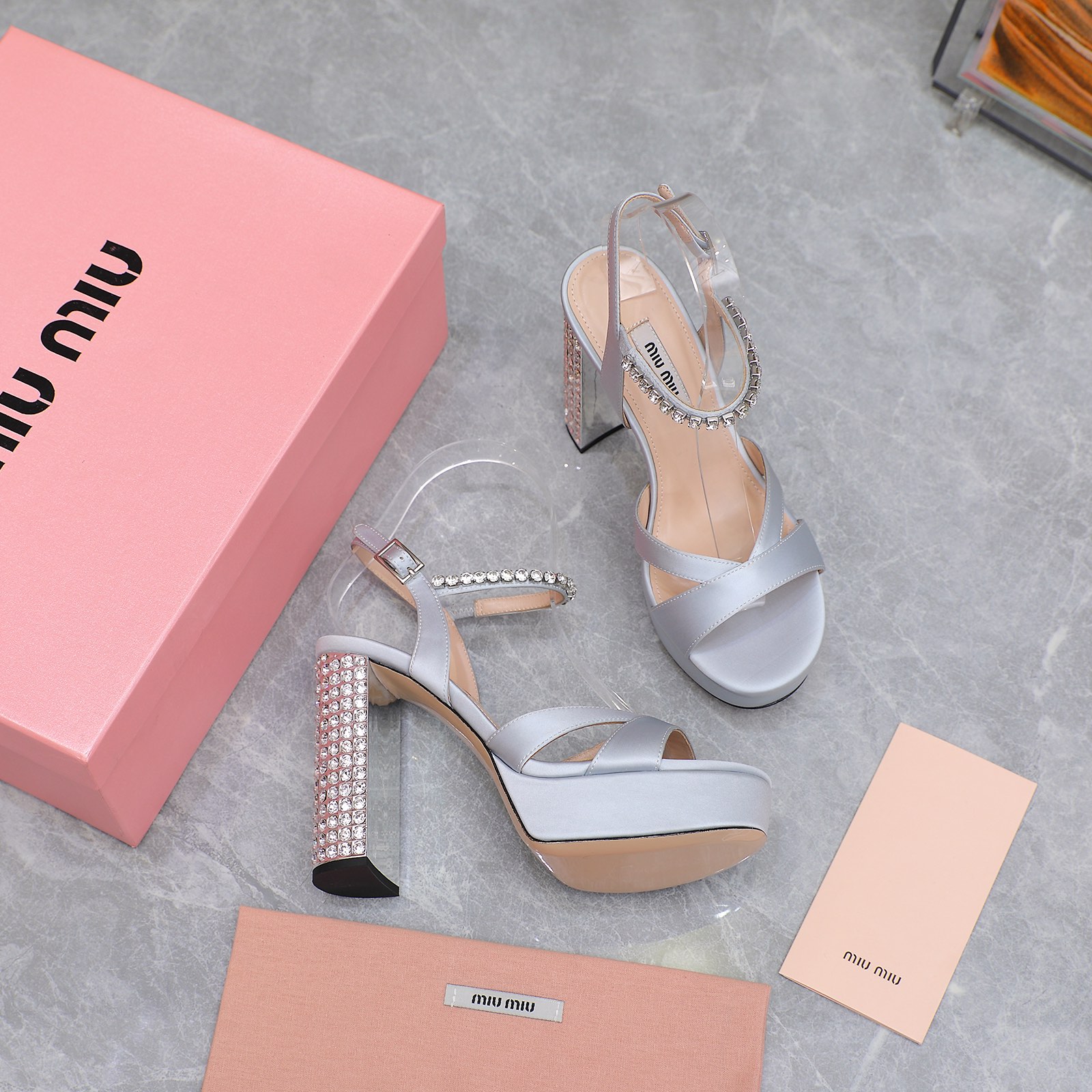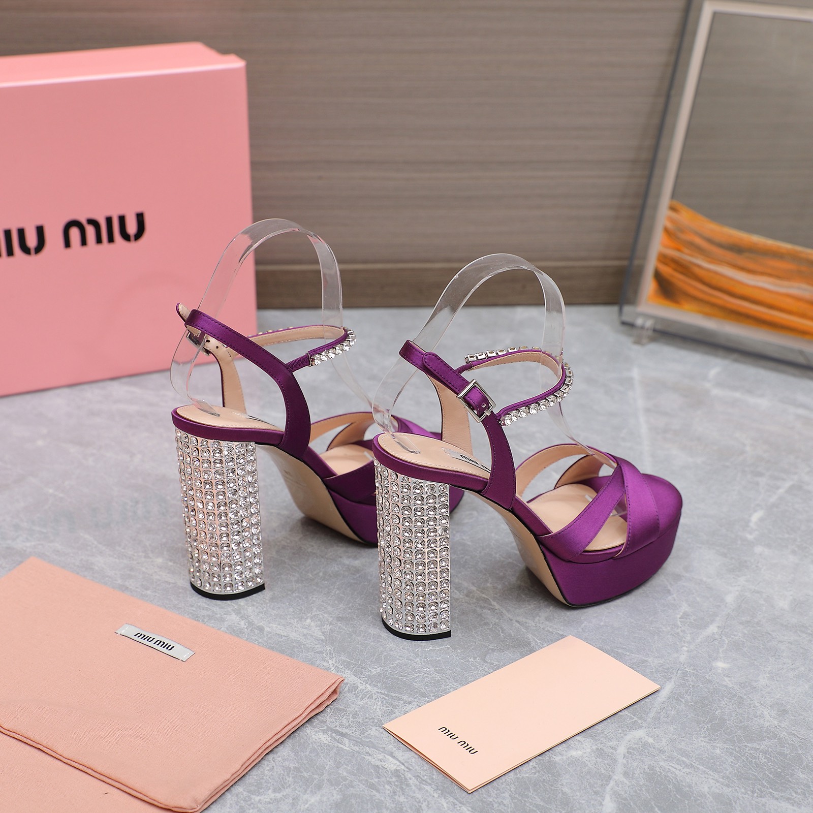 NIGO MiuMiu Women's Summer Solid Colour Sheepskin Diamonds High Heeled Sandals Shoes #nigo76786