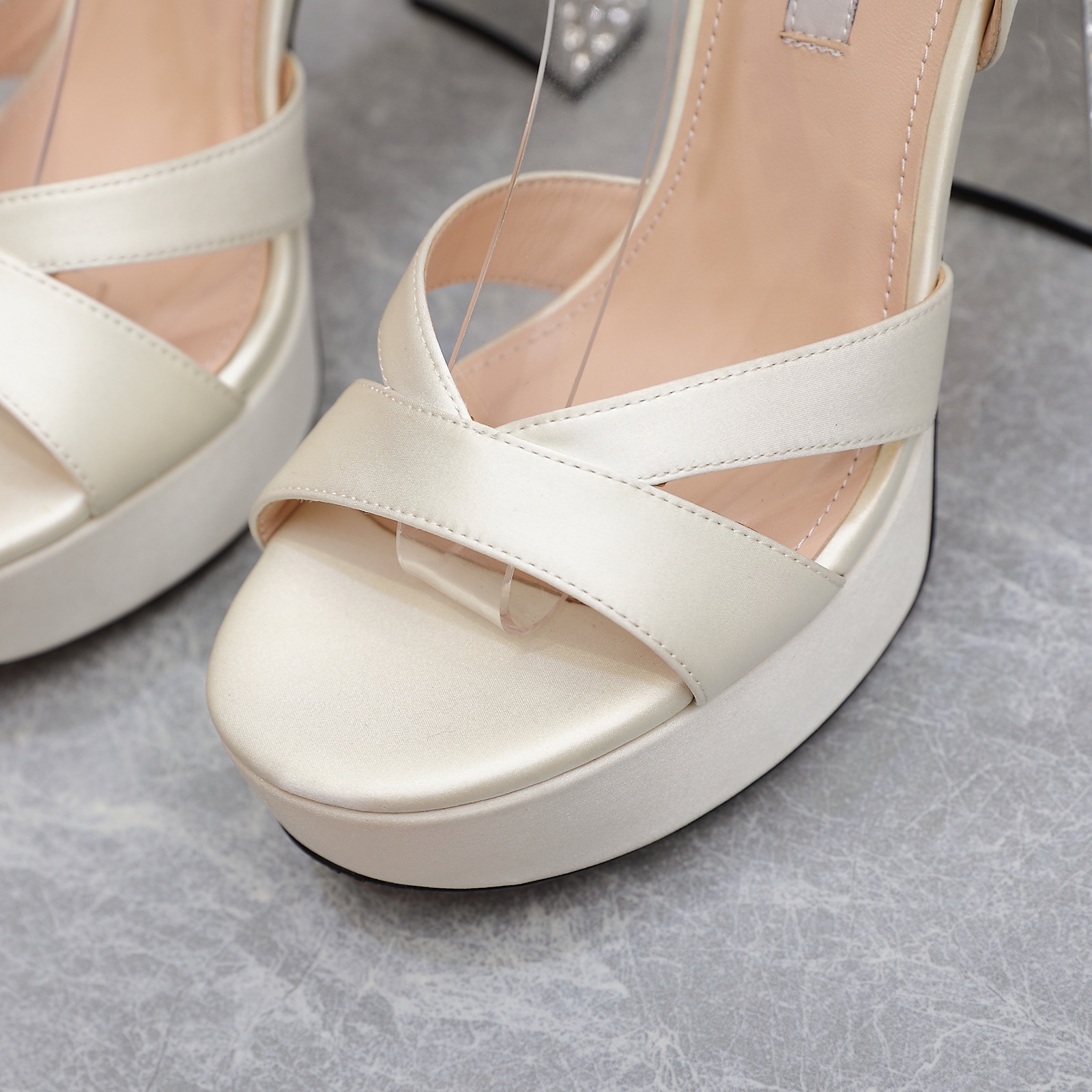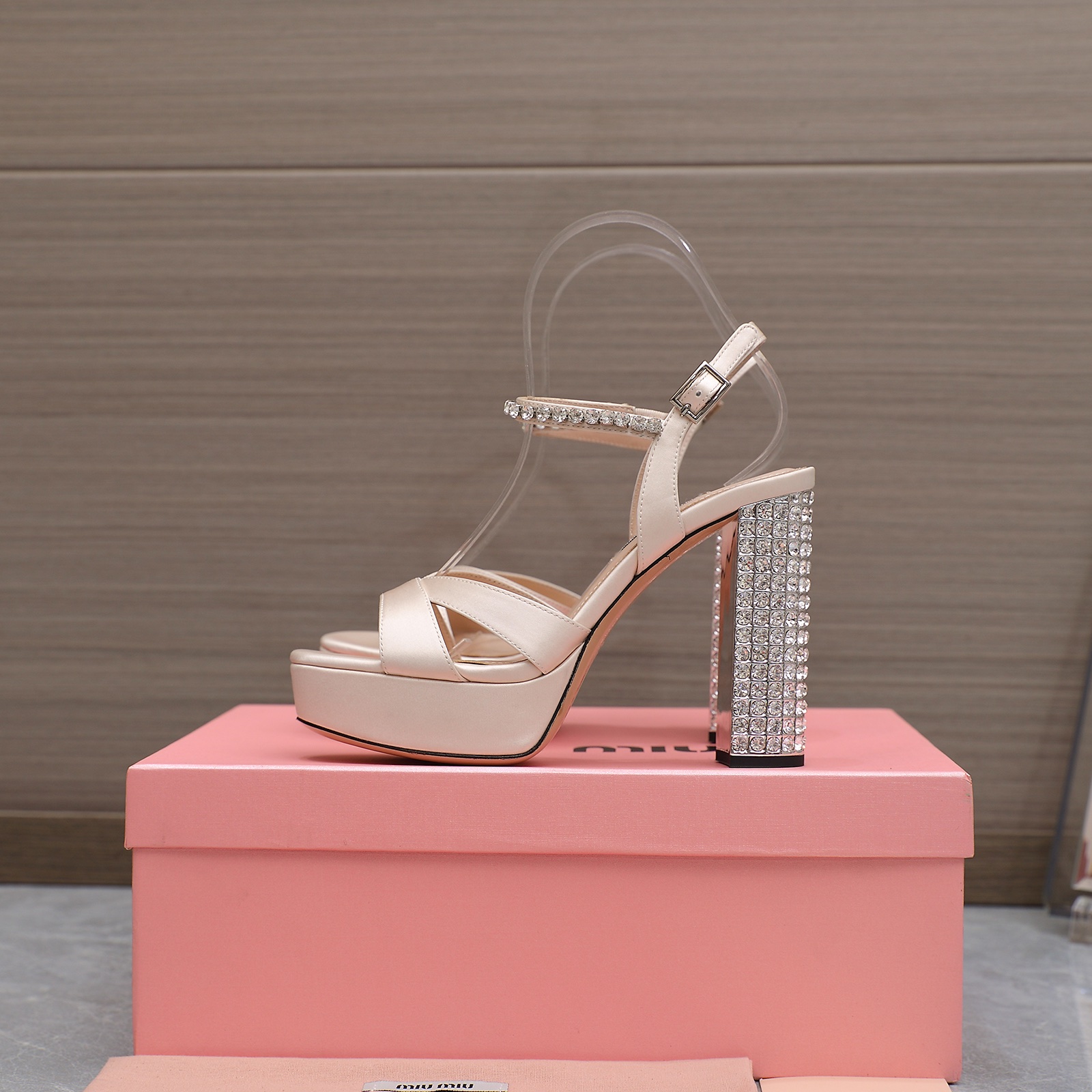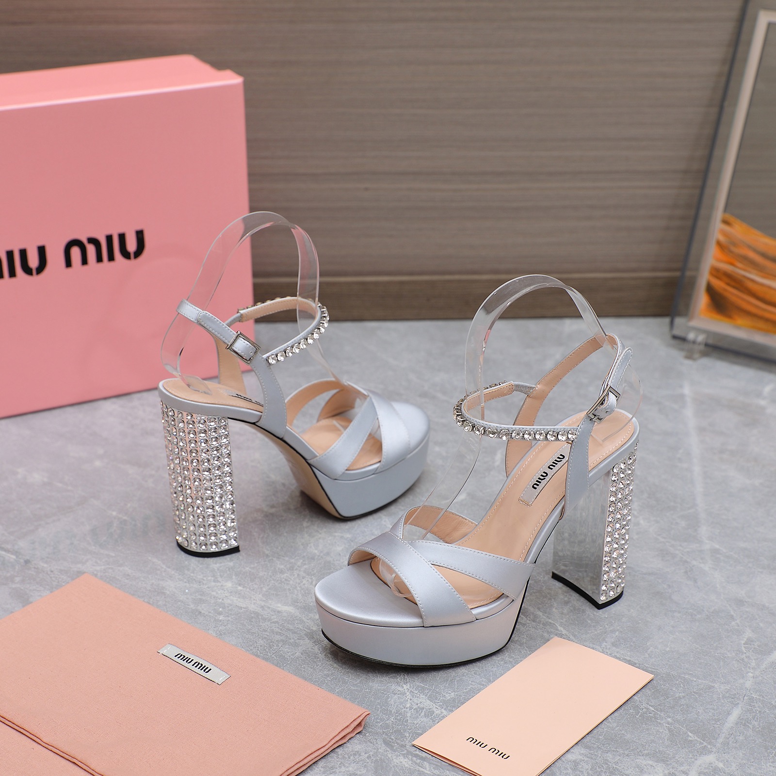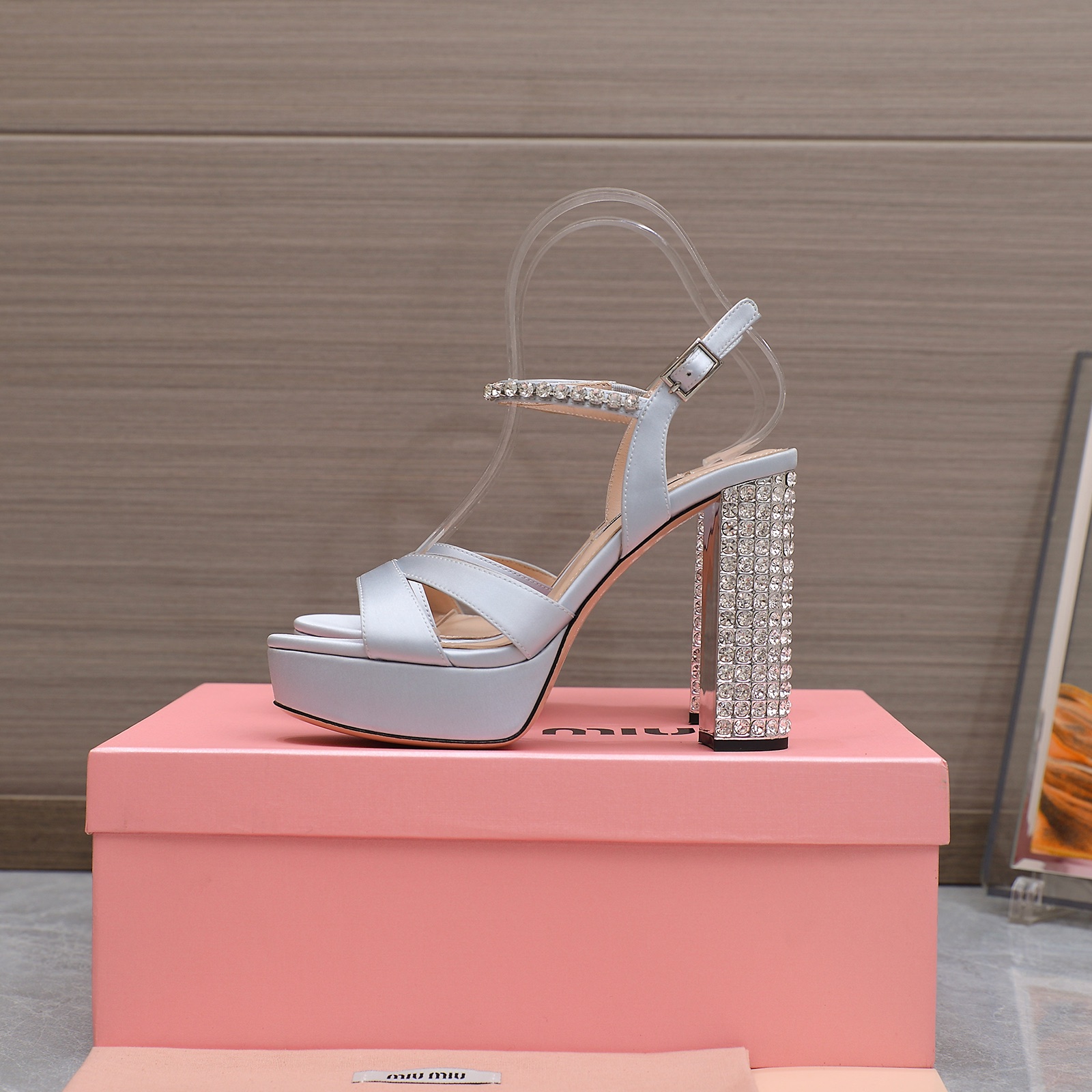 NIGO MiuMiu Women's Summer Solid Colour Sheepskin Diamonds High Heeled Sandals Shoes #nigo76786