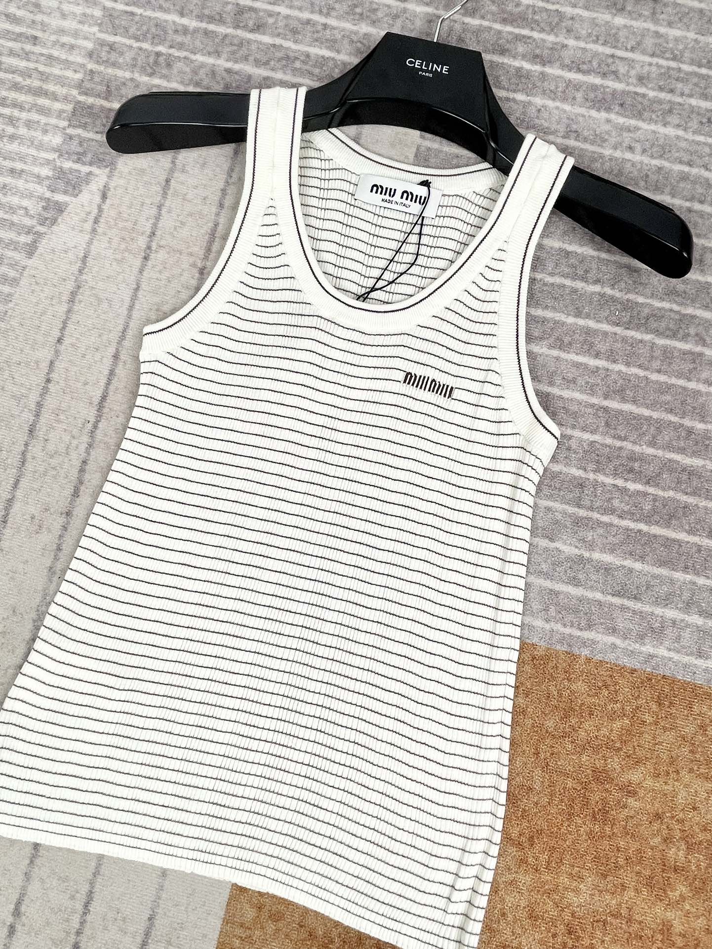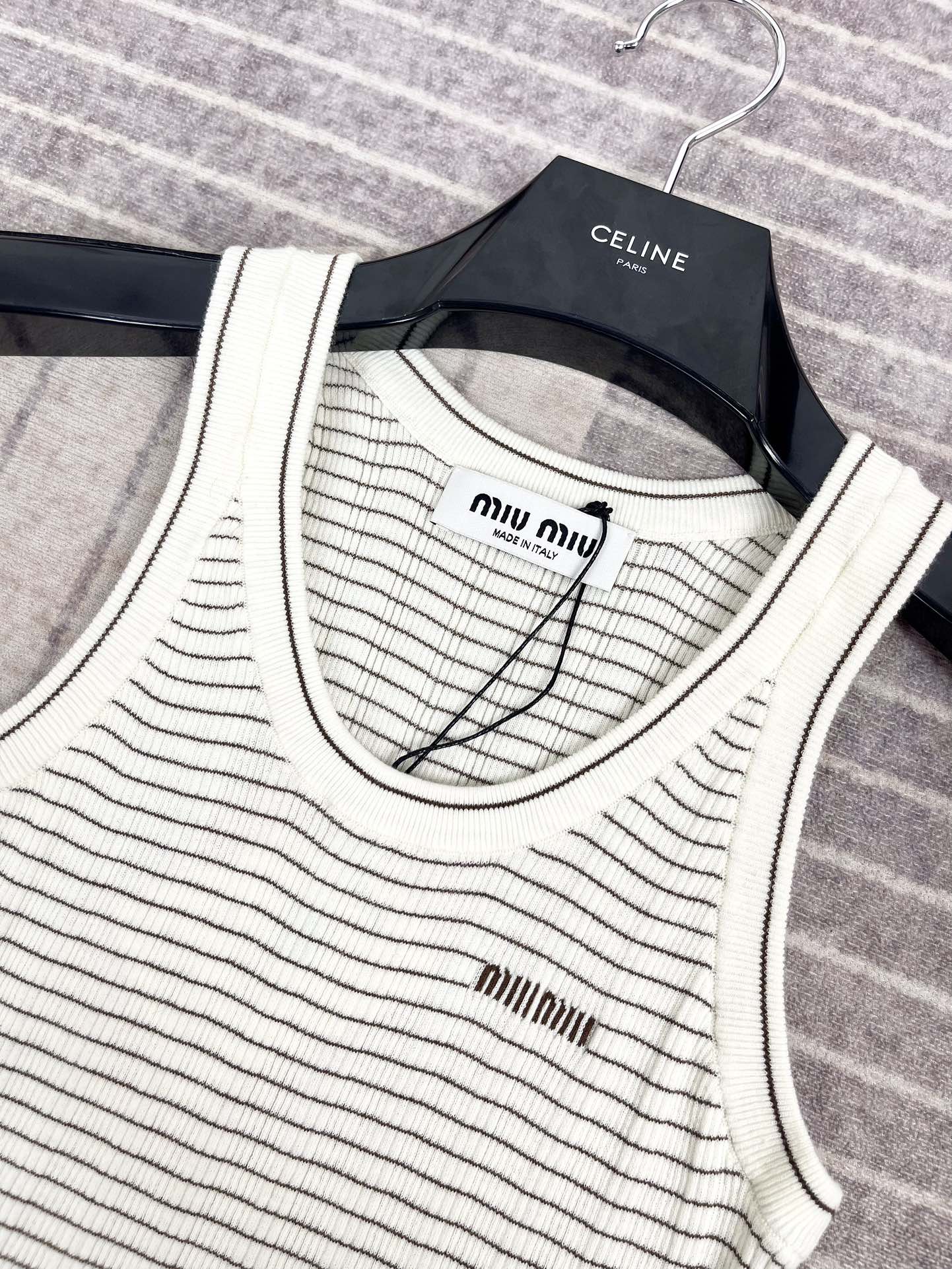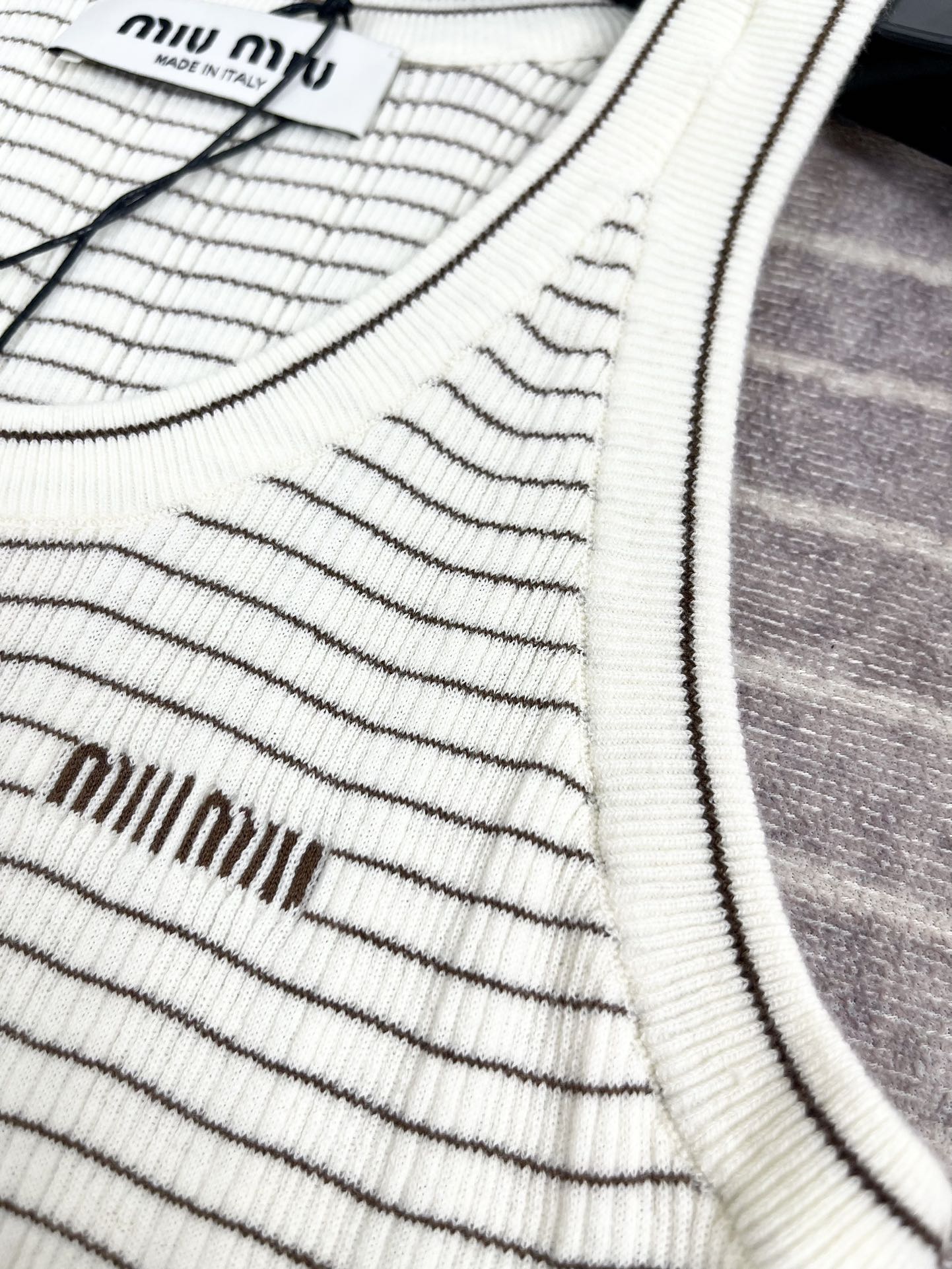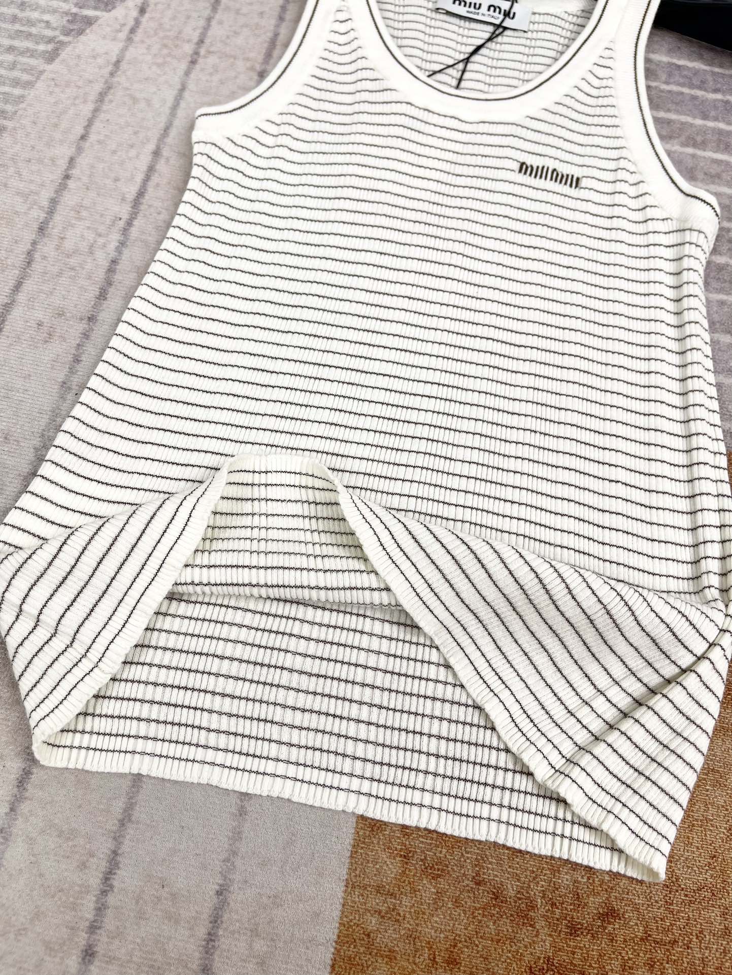 NIGO MiuMiu Women's Summer White Striped Knit Sleeveless Crew Neck Tank Top Vest #nigo99888