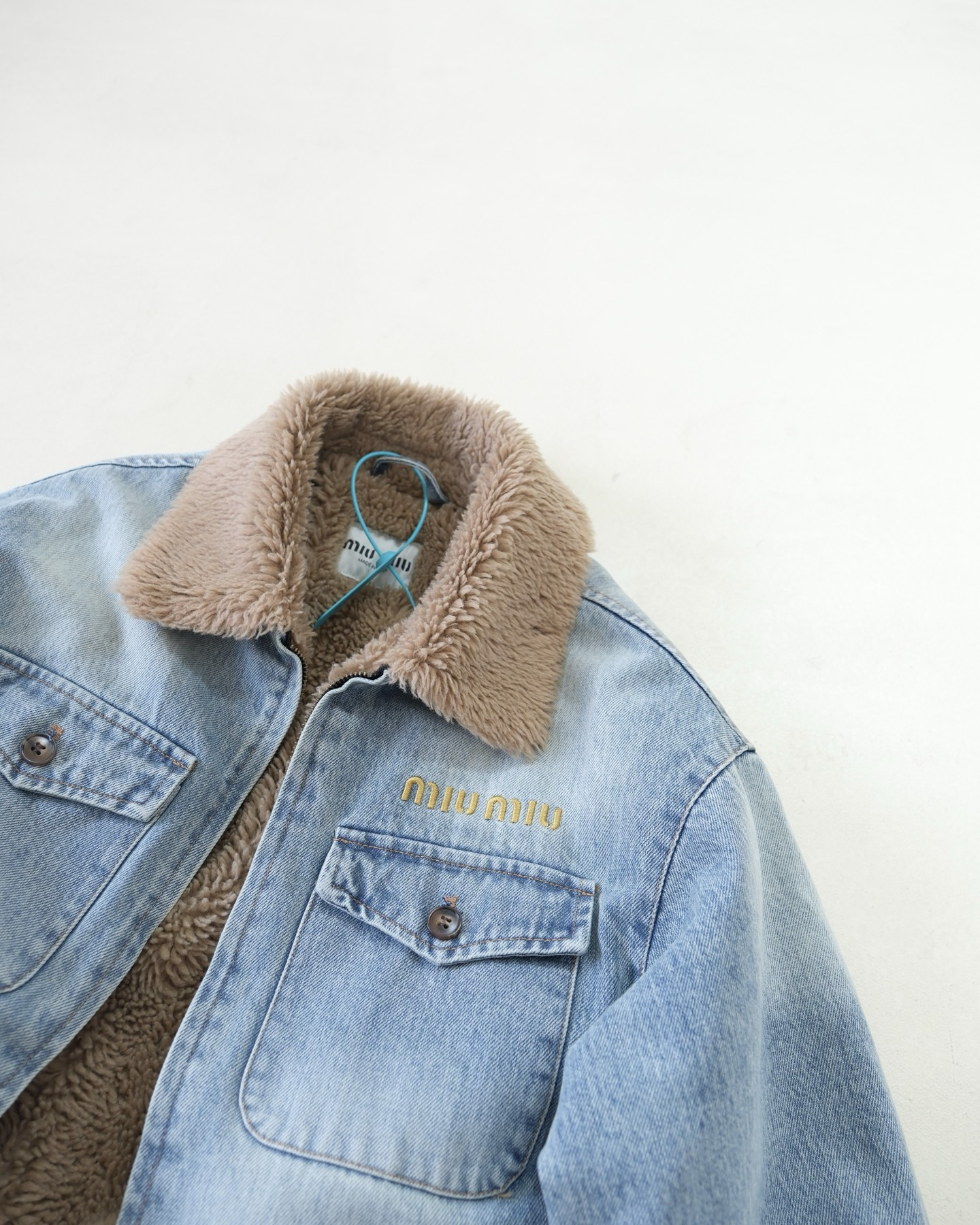 NIGO MiuMiu Denim and Wool Trucker Jacket Washed Embroidery Light Blue #nigo332979