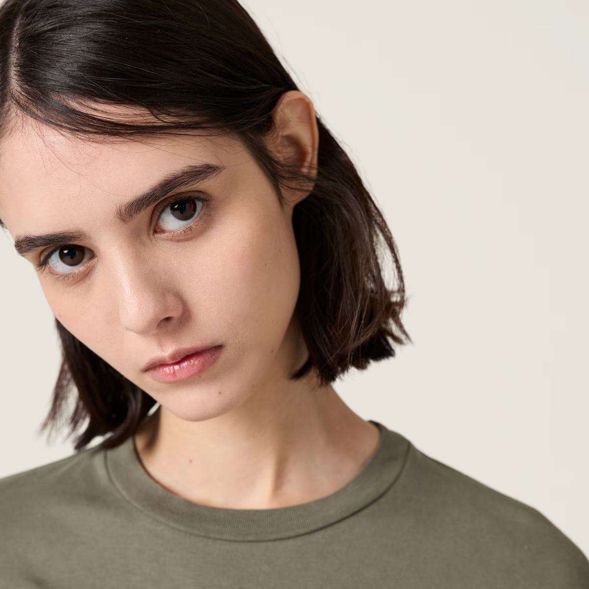 NIGO MiuMiu Women's Summer Jersey Knit Top Solid Color Round Neck Pullover Cotton Short Sleeve T-Shirt #nigo81464
