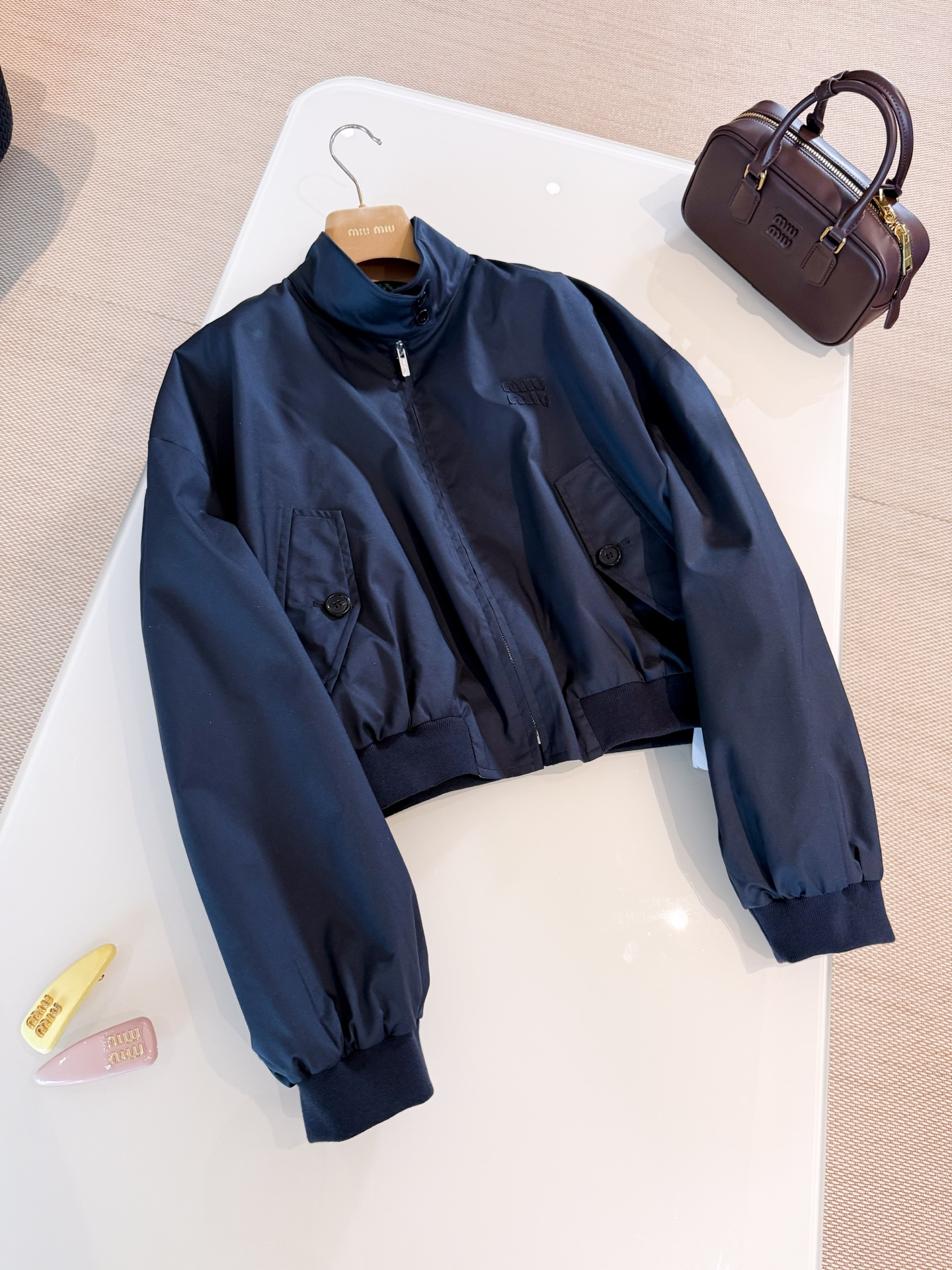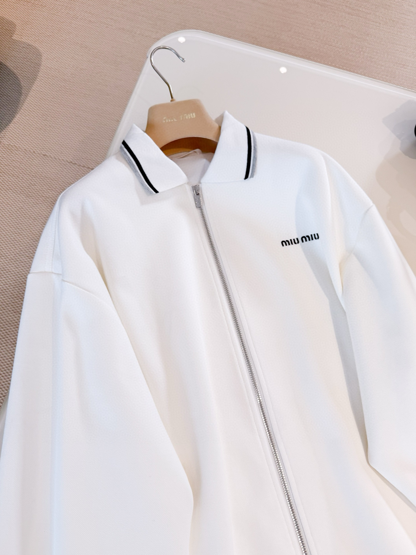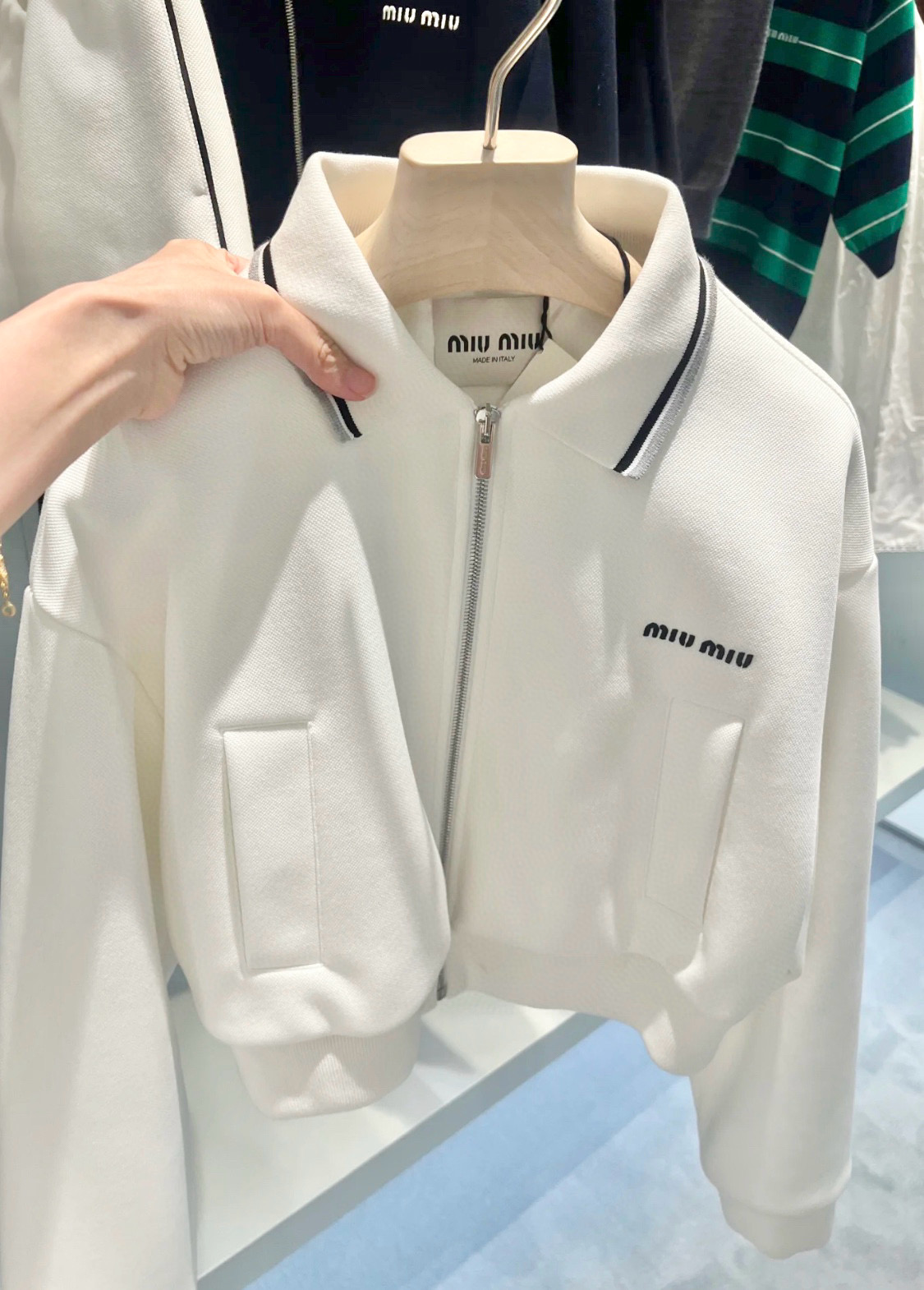 NIGO MiuMiu Women's Spring/Summer Casual Collared Zipper Color Block Logo Embroidered Sports Jacket #nigo78216