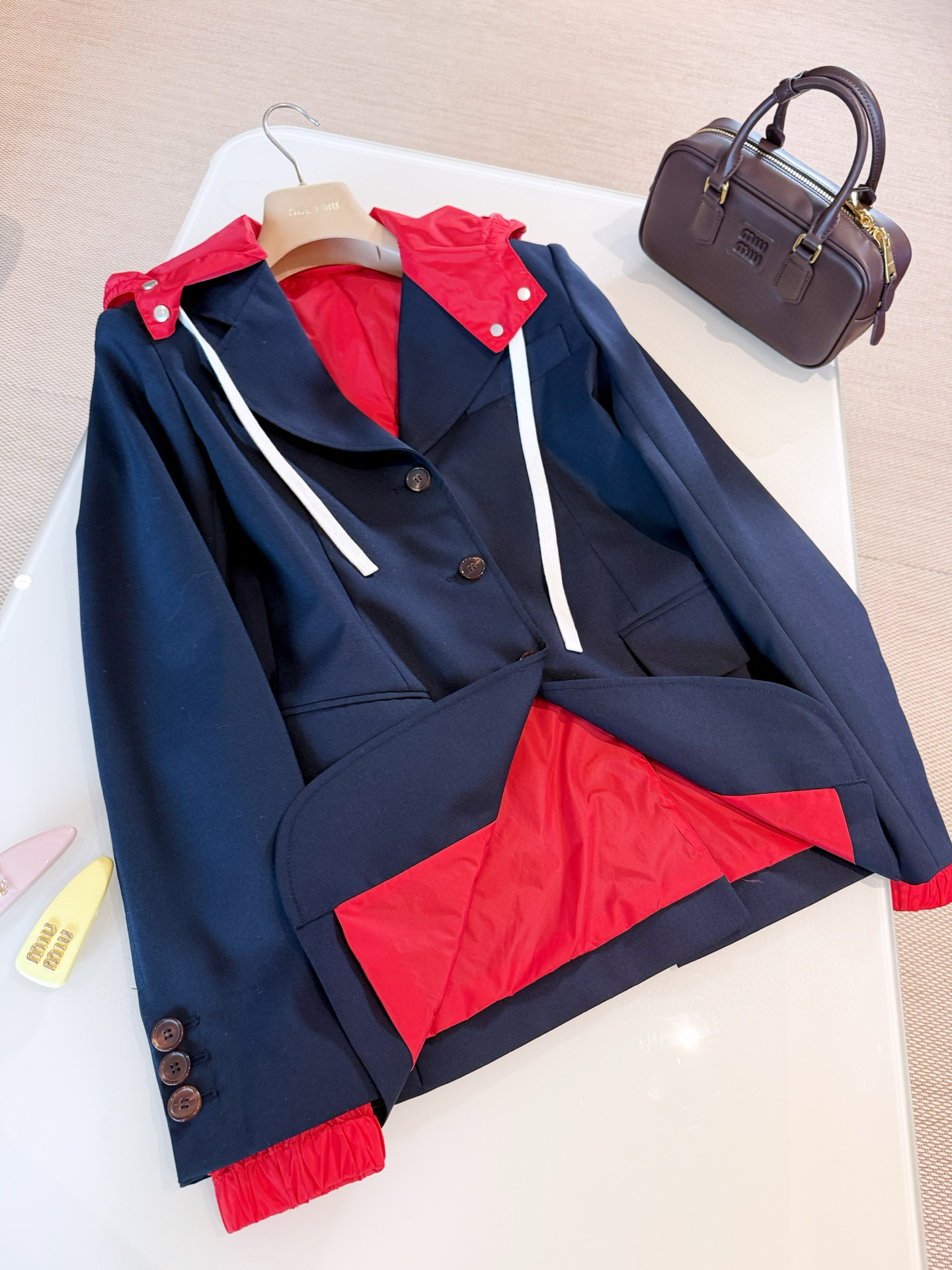 NIGO MiuMiu Women's Classic Spring/Autumn Fashion Single-breasted Wool Hooded Blazer Jacket #nigo78214