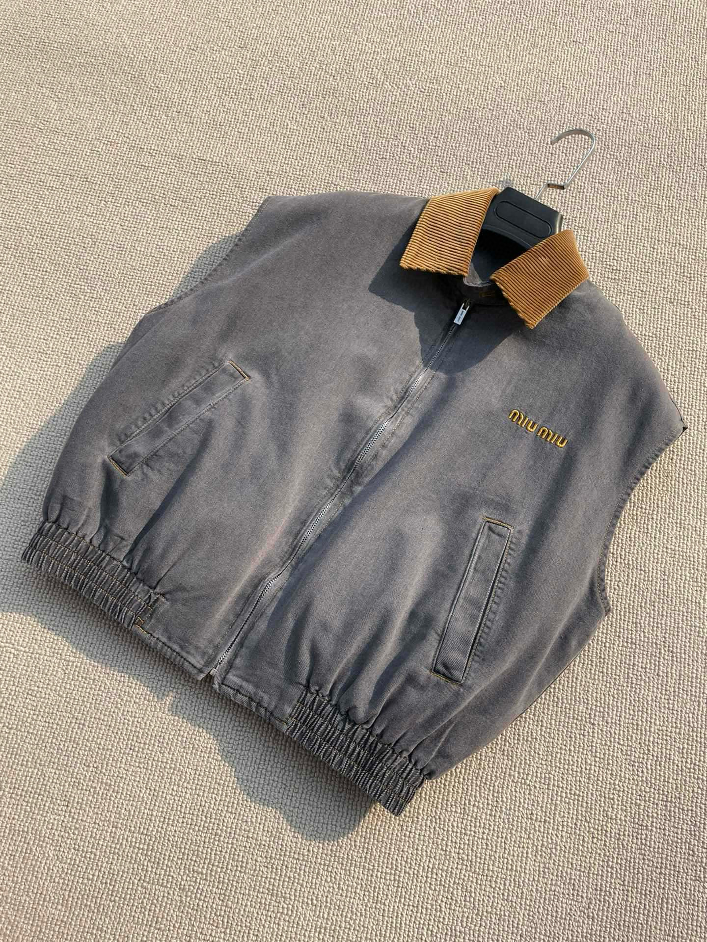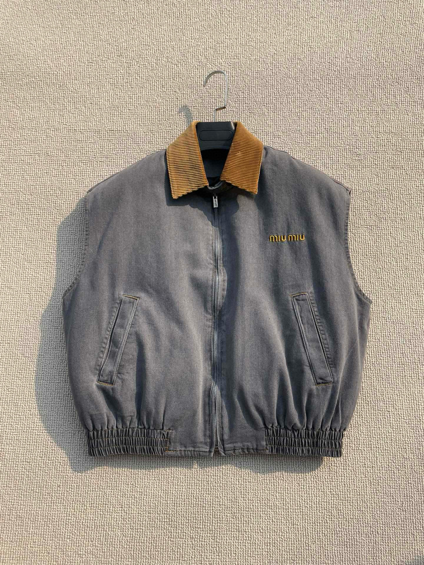 NIGO MiuMiu Women's Fall/Winter Logo Printed Splicing Lapel Zipper Closure Sleeveless Vest Jacket #nigo76536