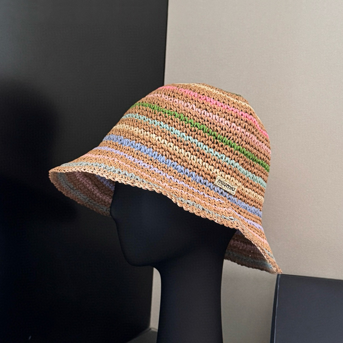 NIGO MiuMiu Women's Spring and Summer Rainbow Knit Fisherman's Hat Cap #nigo76551