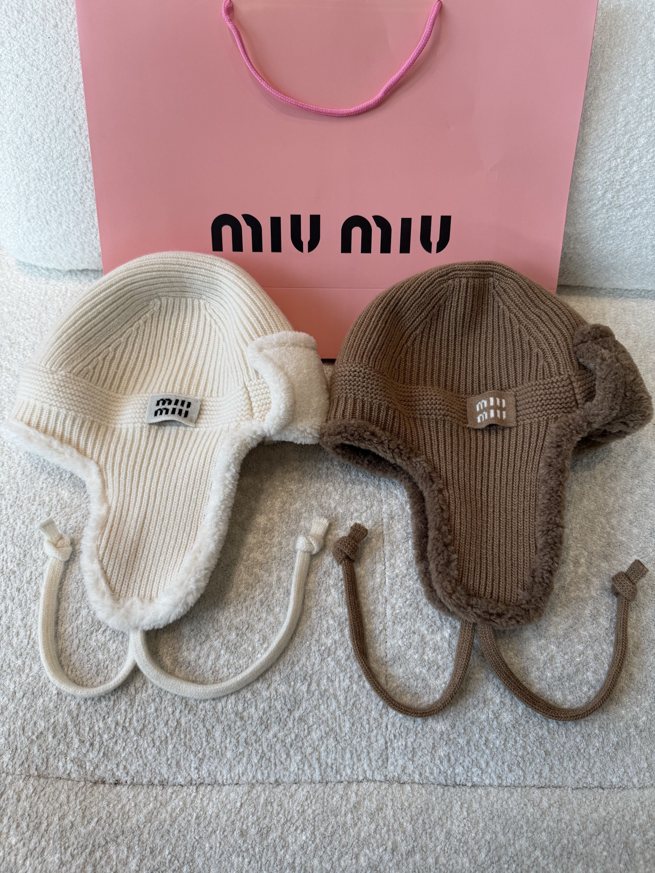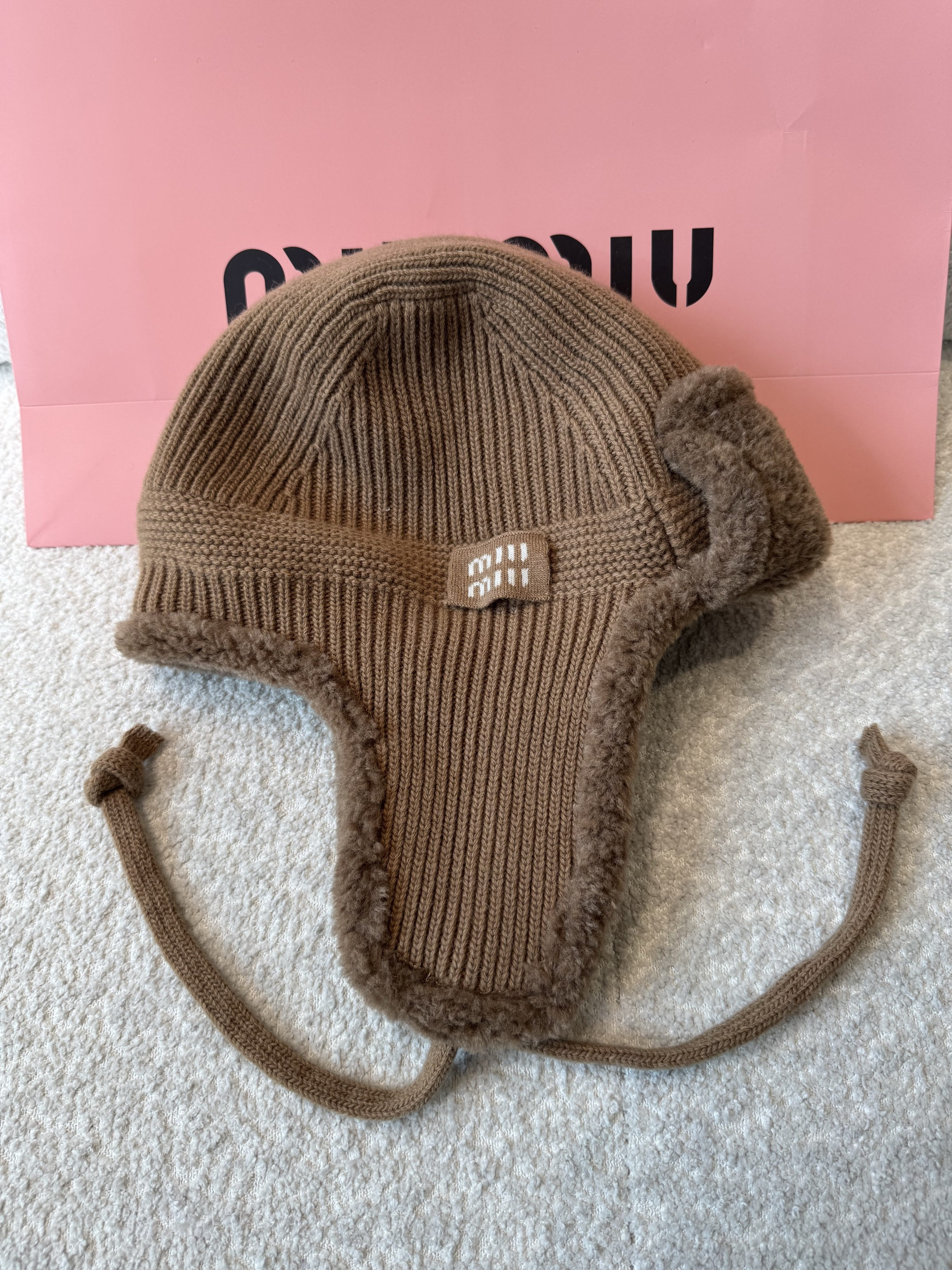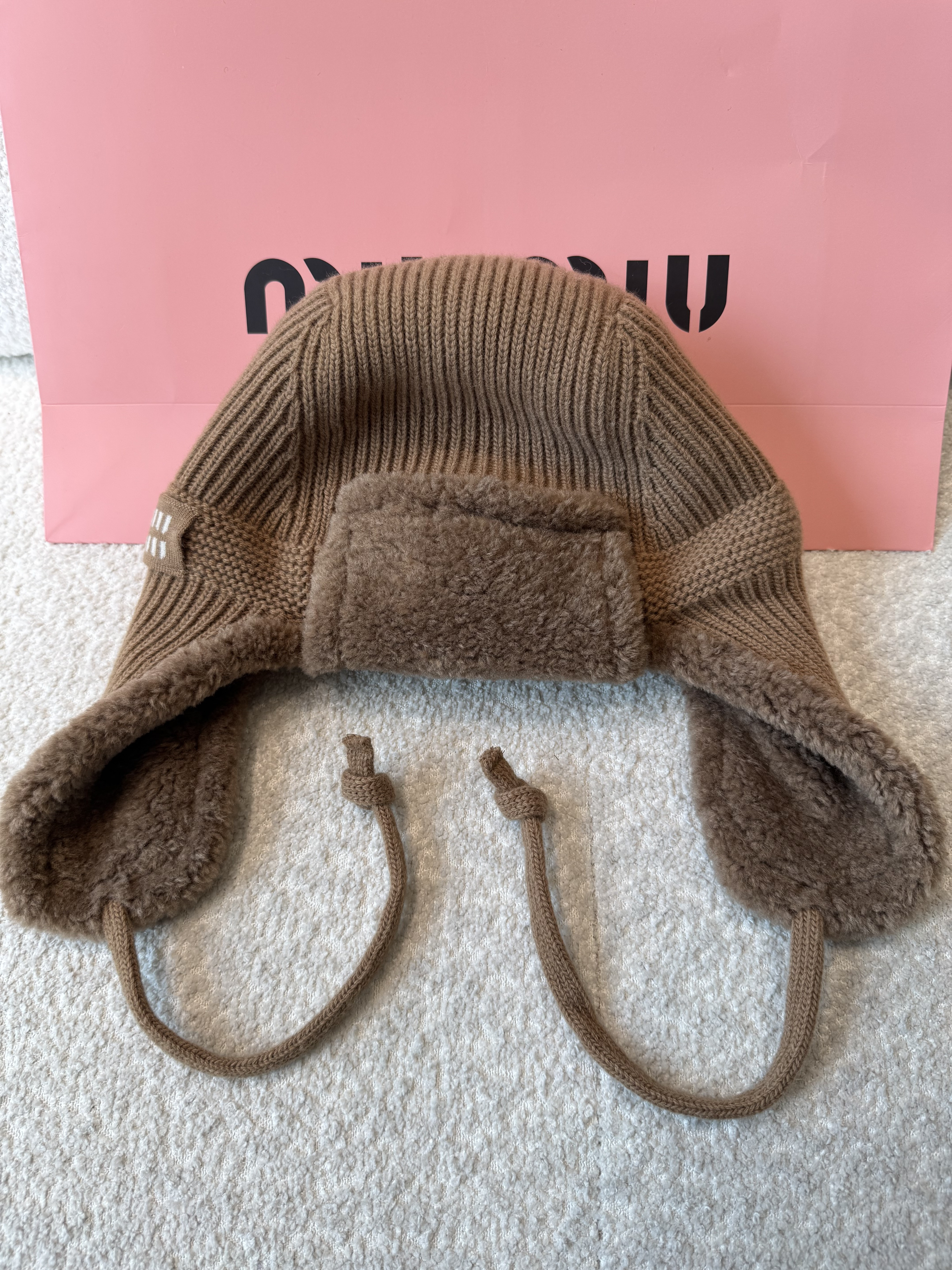 NIGO MiuMiu Camel Brown Wool Cashmere And Shearling Trapper Hat #nigo335646