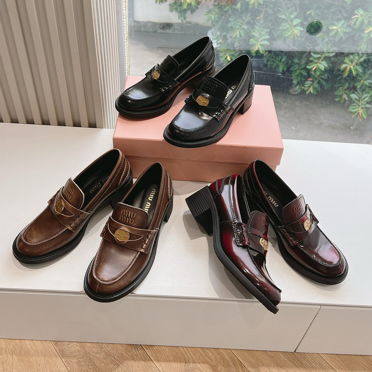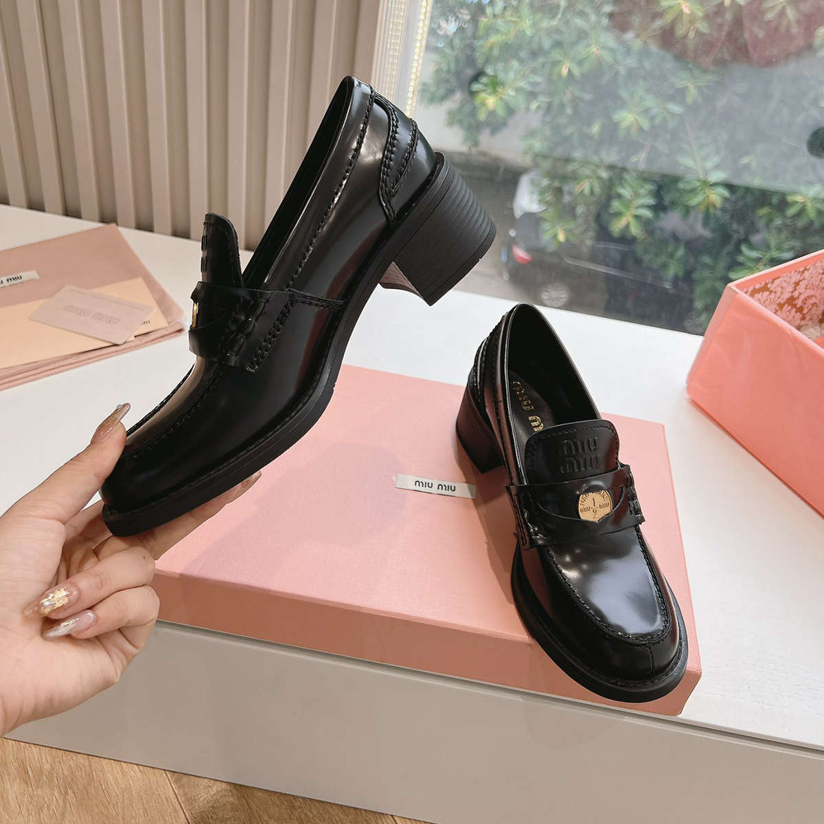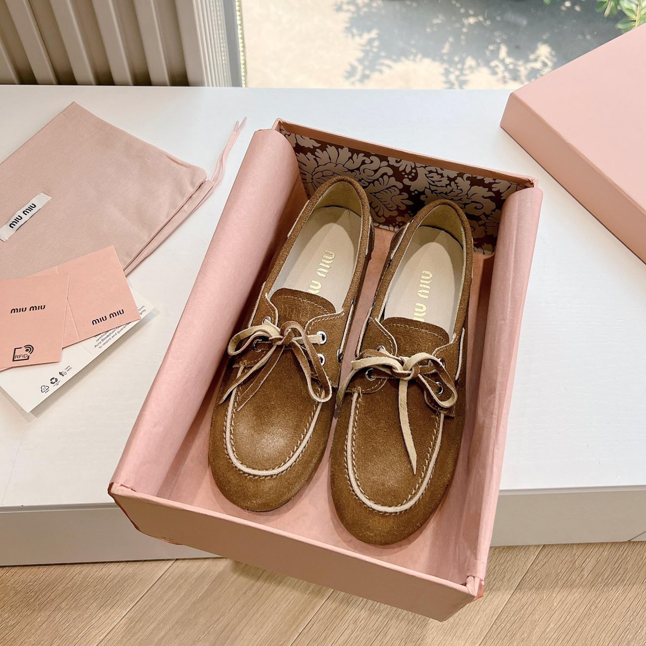 NIGO MiuMiu Women's Spring And Summer Solid Color Round Head Overfoot Low Top Lace Up Loafers Shoes #nigo75441