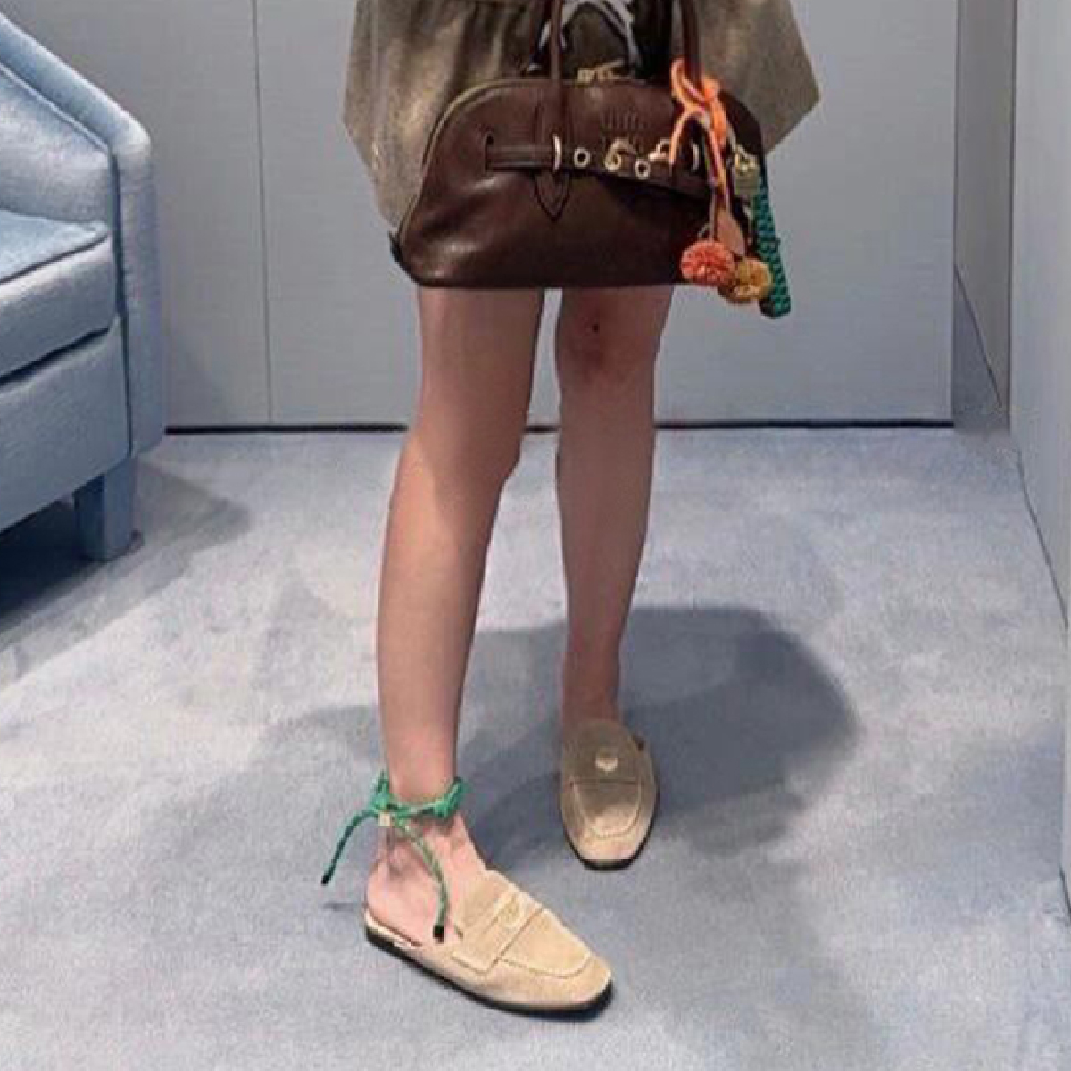 NIGO MiuMiu Women's Spring Summer Bow Suede Loafers Driving Shoes Brown Fashion Comfortable Women's Shoes #nigo81112