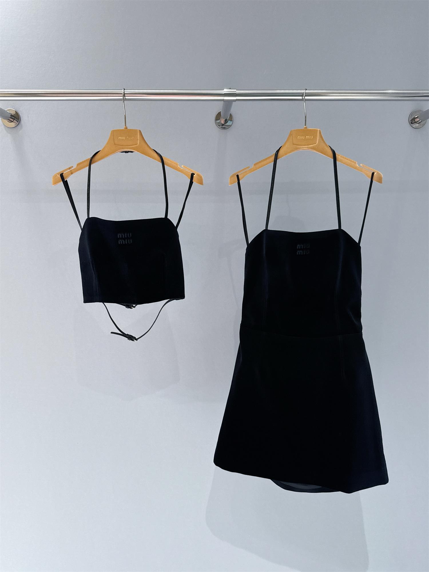 NIGO MiuMiu Women's Summer Embroidered Letter Logo Solid Color Stretch Velvet Sleeveless Dresses #nigo75386