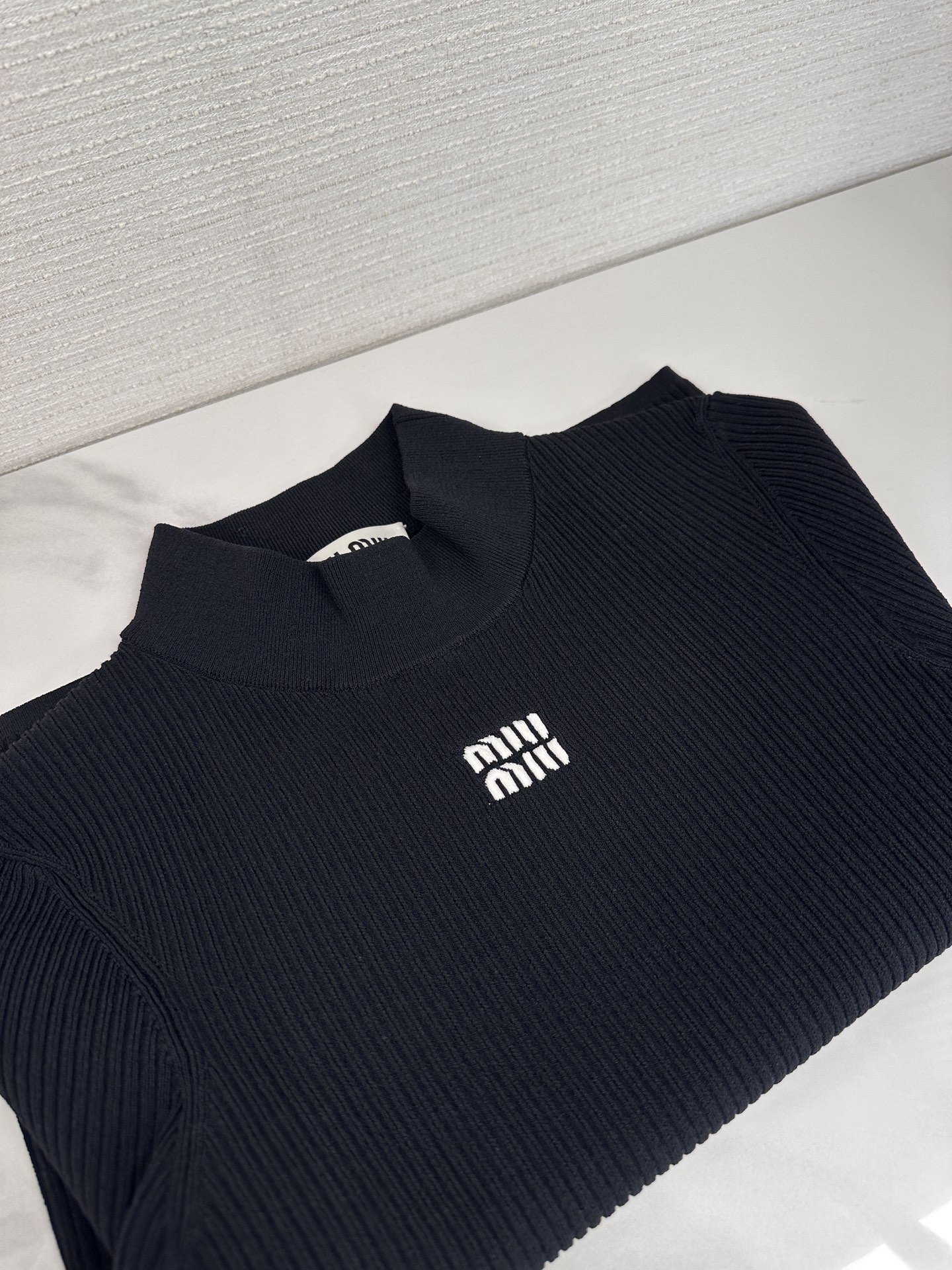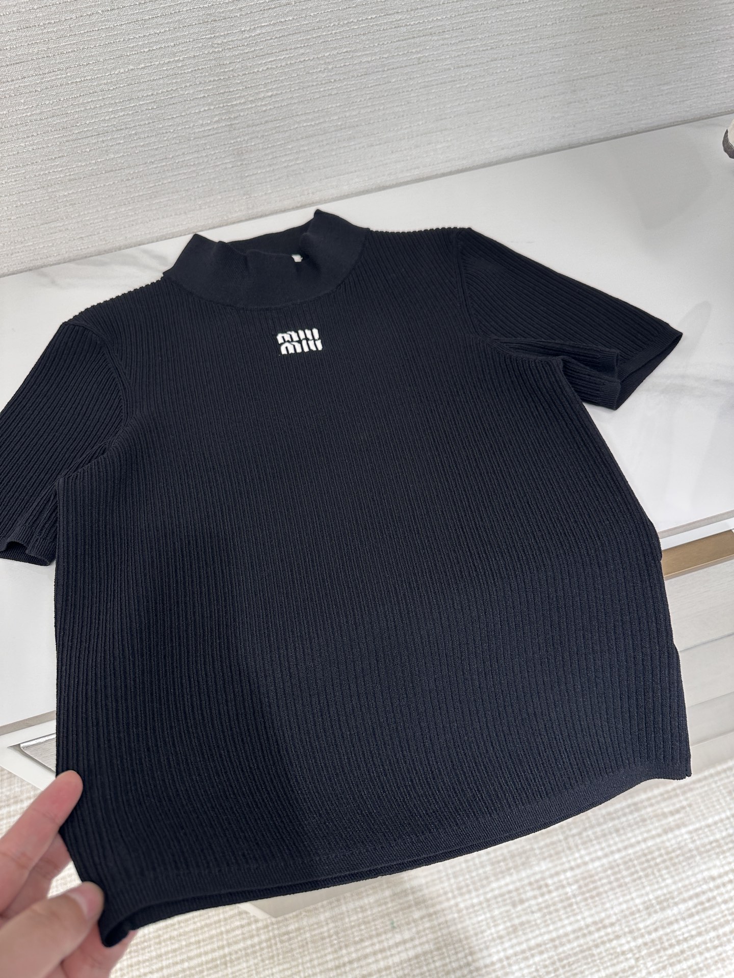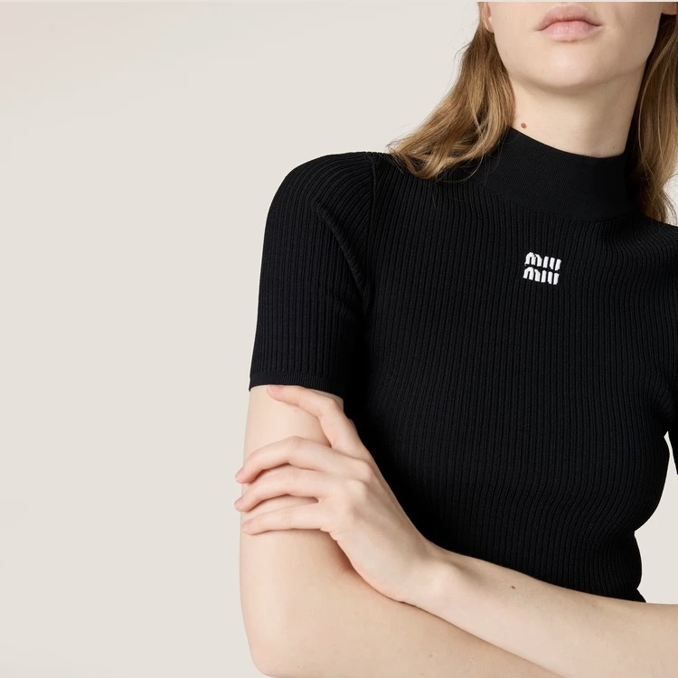 NIGO MiuMiu Women's Spring and Summer Slim Half Plunge Short Sleeve Round Neck Knit Sweater T-shirt #nigo75453