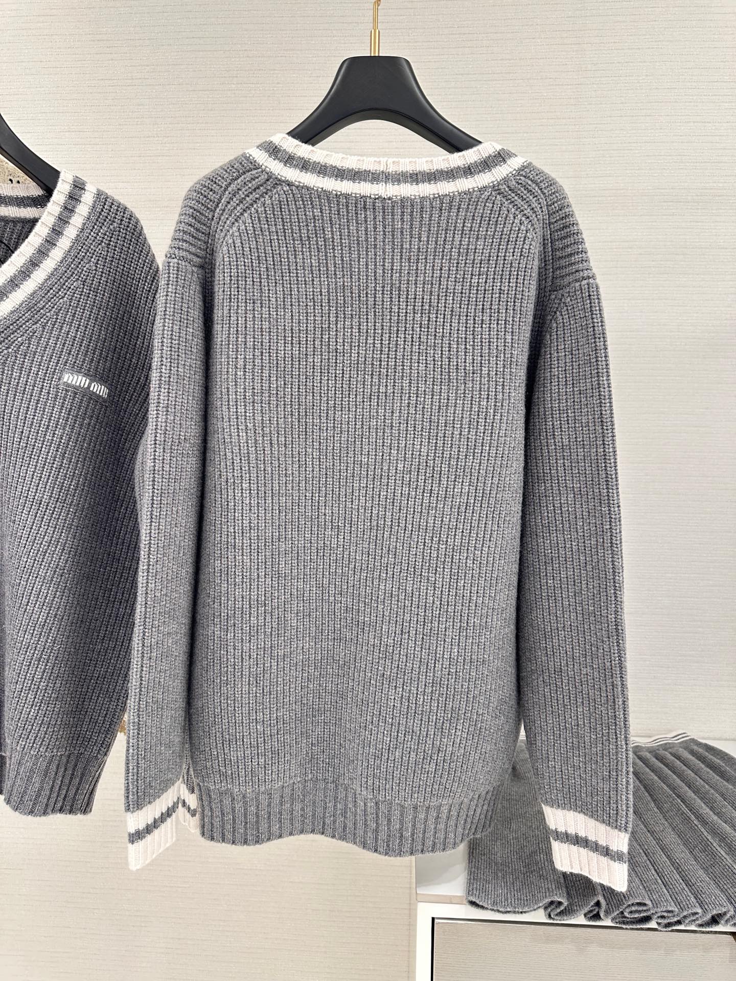 NIGO MiuMiu Women's Spring and Autumn Letter Printed V-Neck Casual Long Sleeve Cashmere Sweater Top #nigo75114