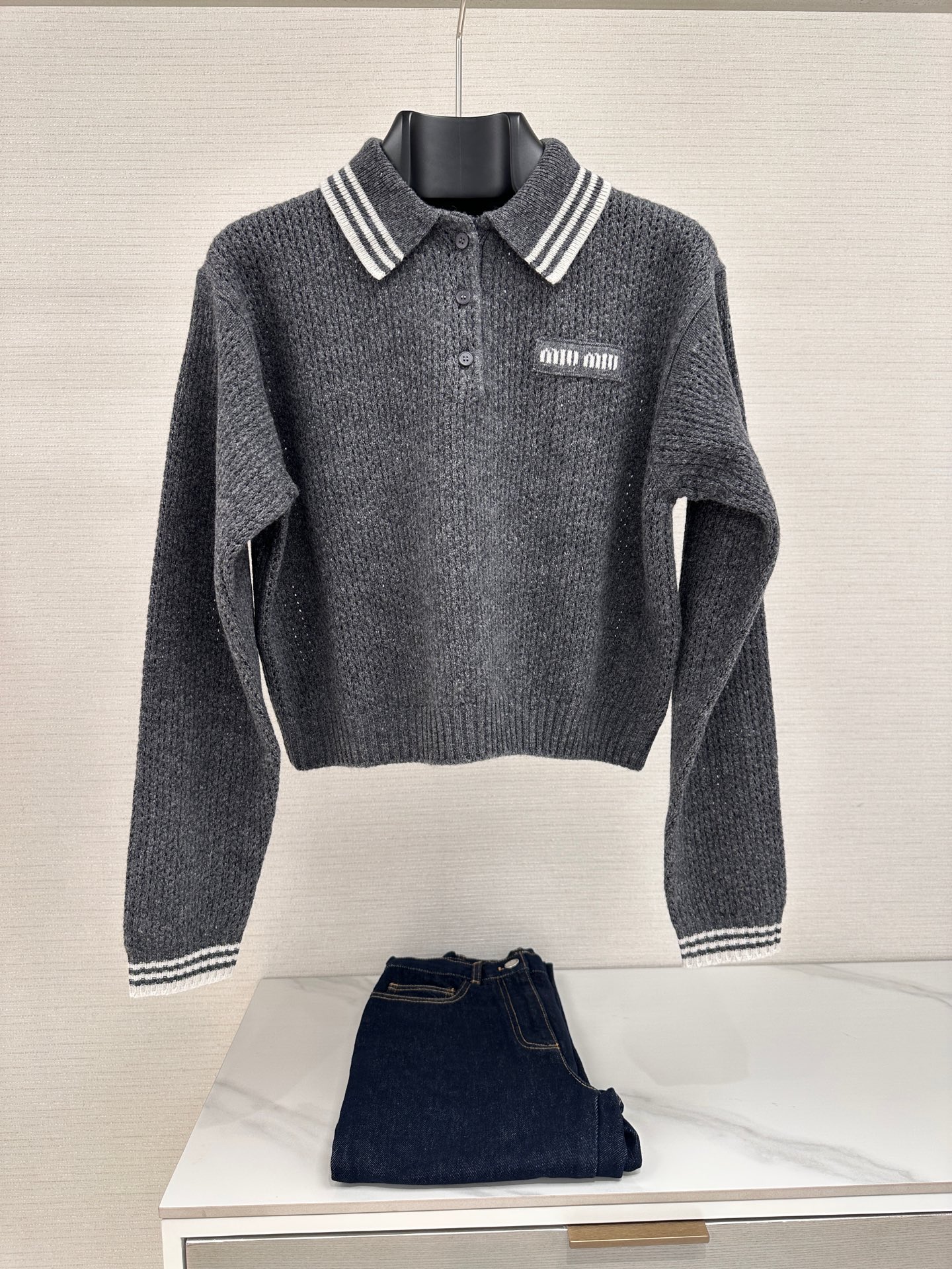 NIGO MiuMiu Women's Spring and Autumn Solid Color Mesh Knit Loose Polo Neck Long Sleeve Sweater #nigo75112