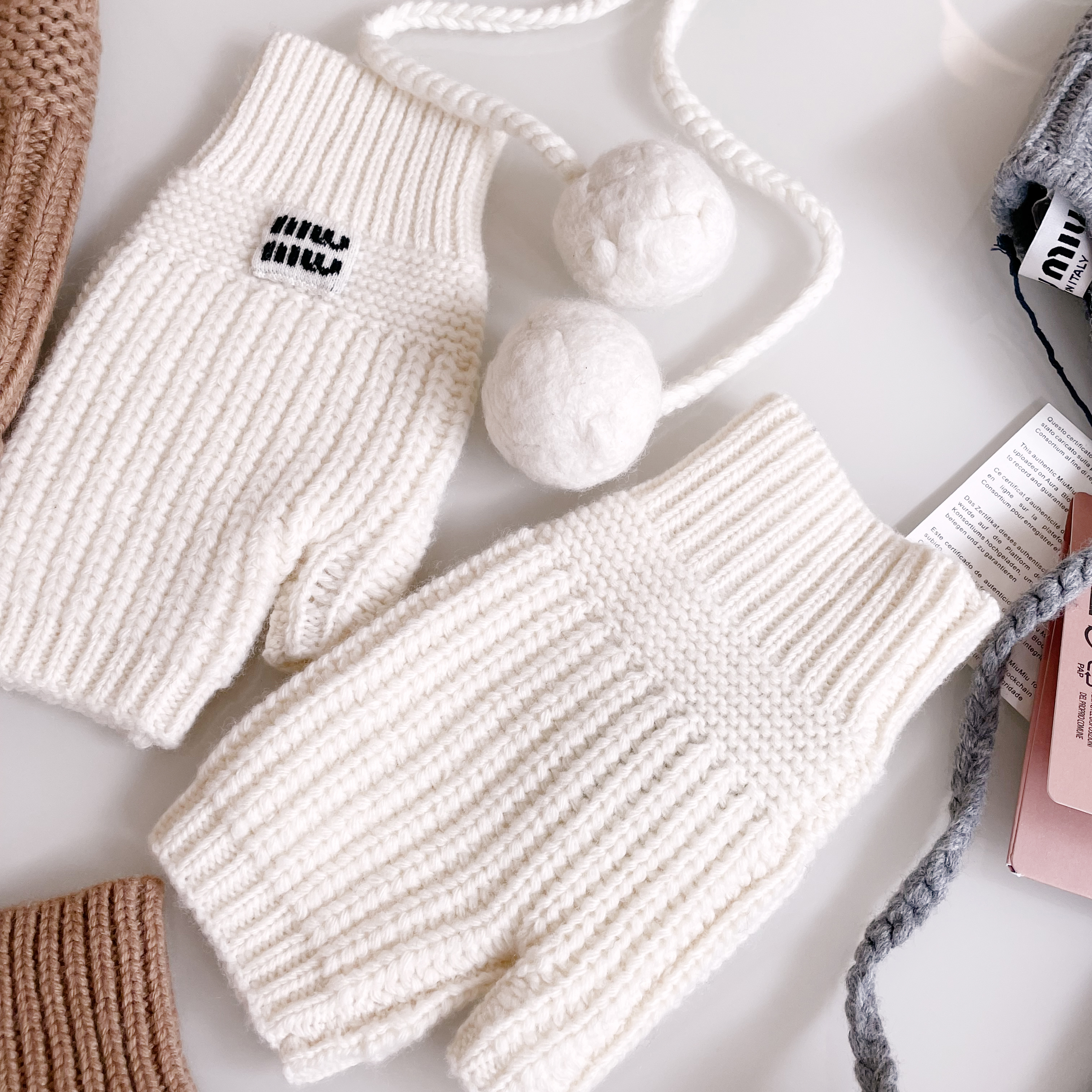 NIGO MiuMiu Women's Solid Color Logo Design Cashmere Knit Pom Pom Hat Woolen Gloves #nigo75169