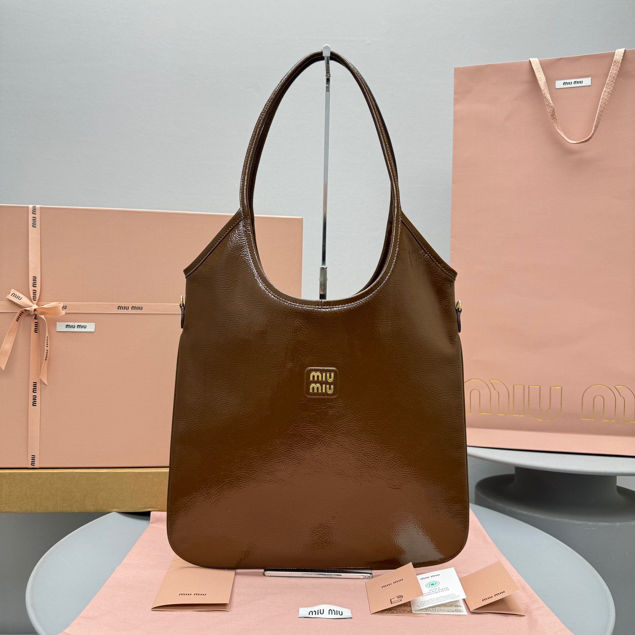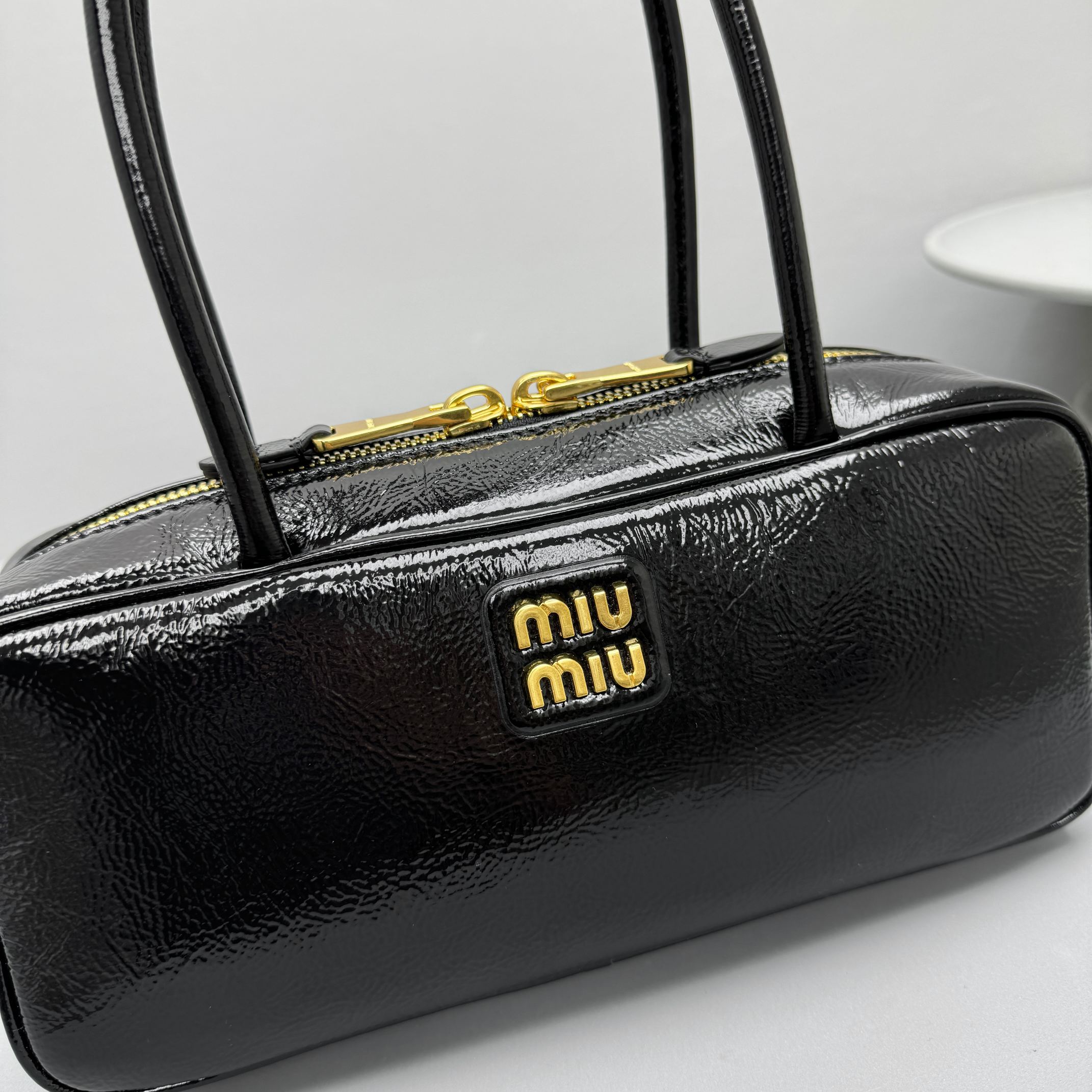 NIGO MiuMiu Women's Solid Color Zipper Closure Beau Naplak Patent Leather Shoulder Handbag Bag Bags #nigo74849
