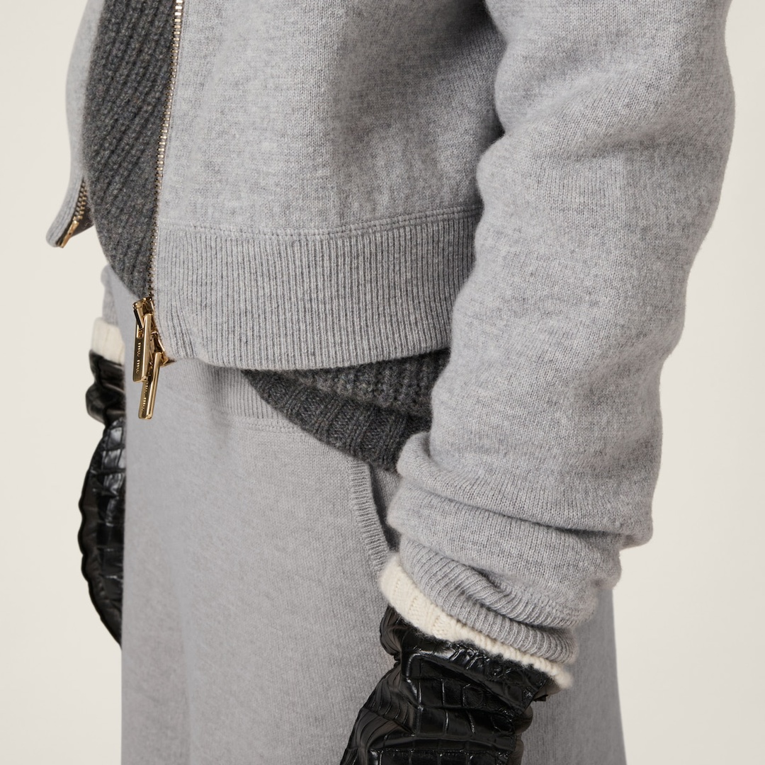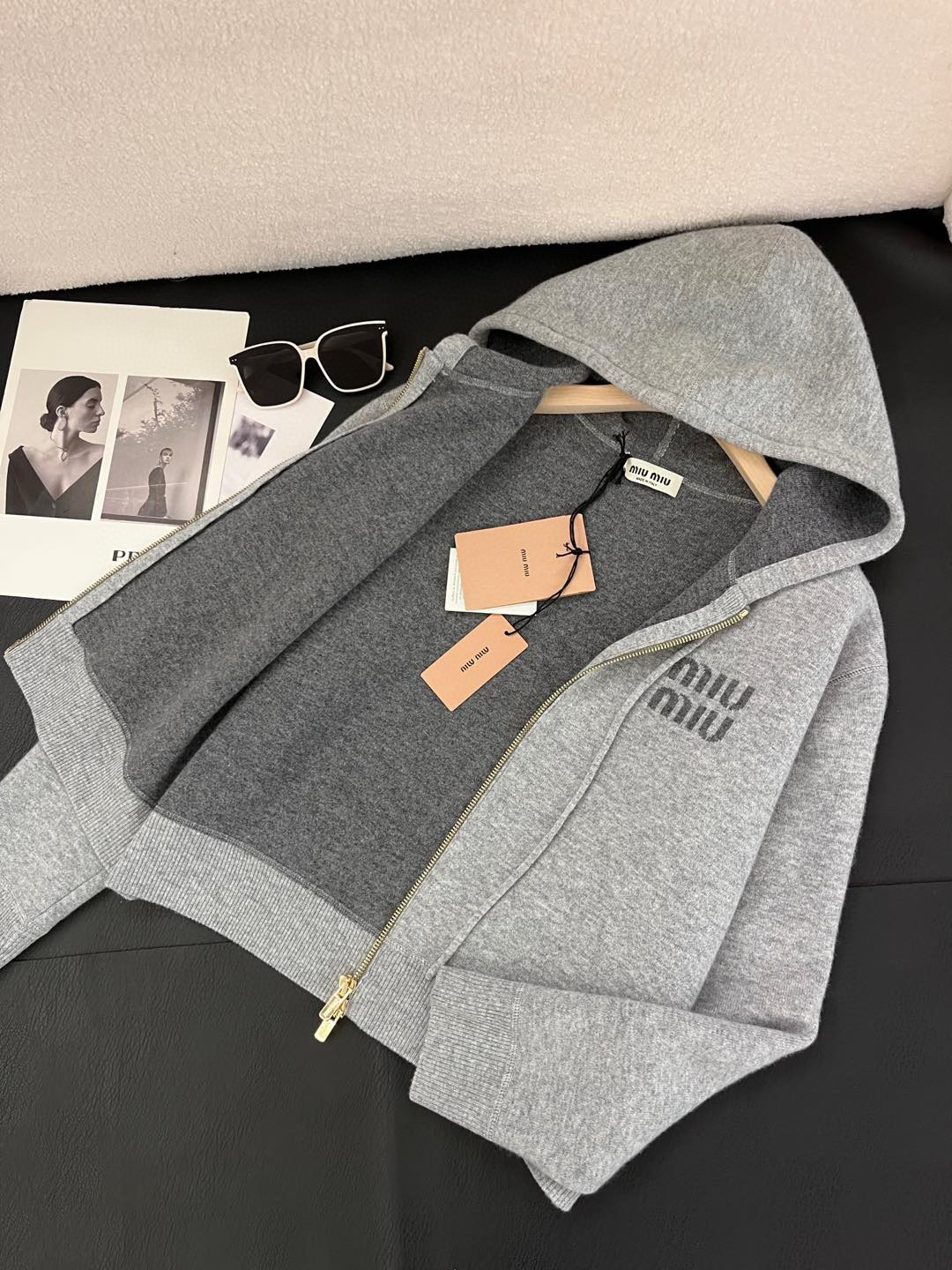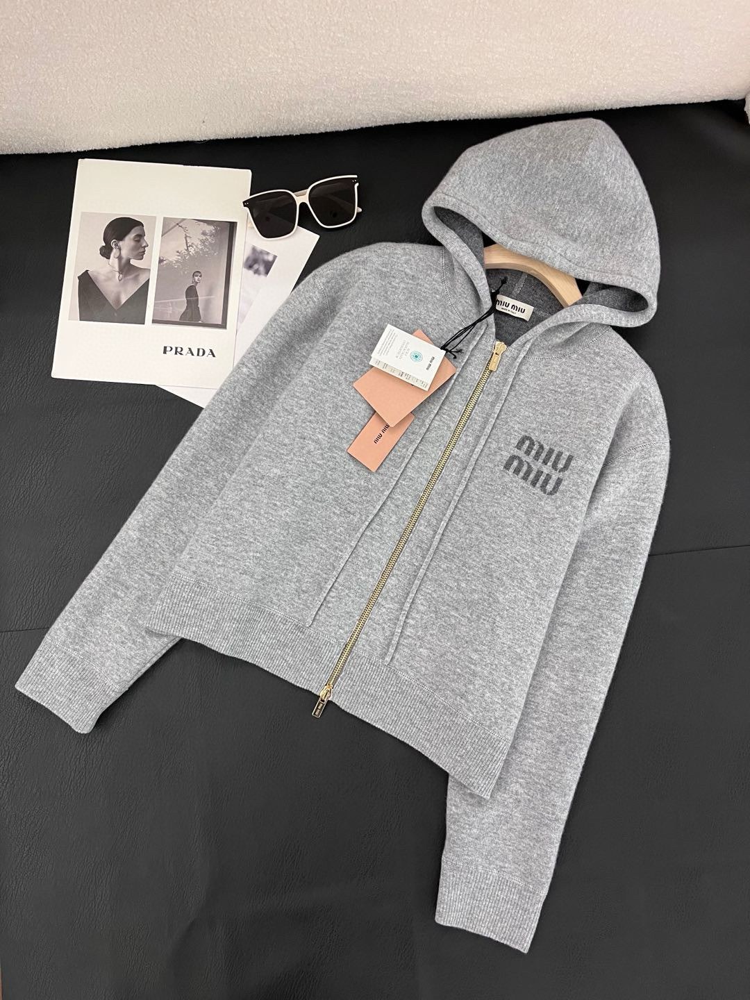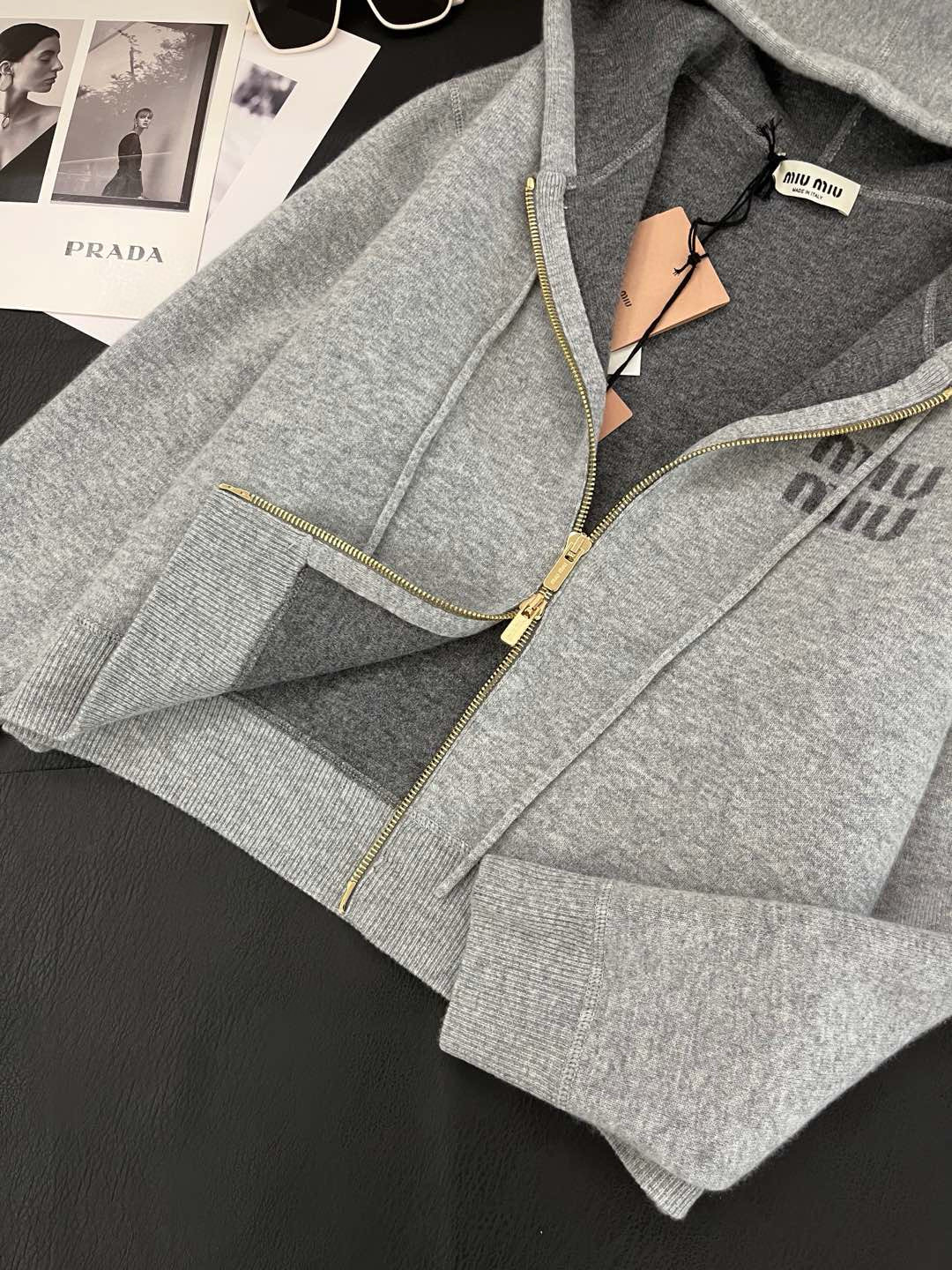 NIGO MiuMiu Women's Spring and Autumn Solid Color Blend Sports Cashmere Sweater Hooded Zipper Jacket #nigo74866