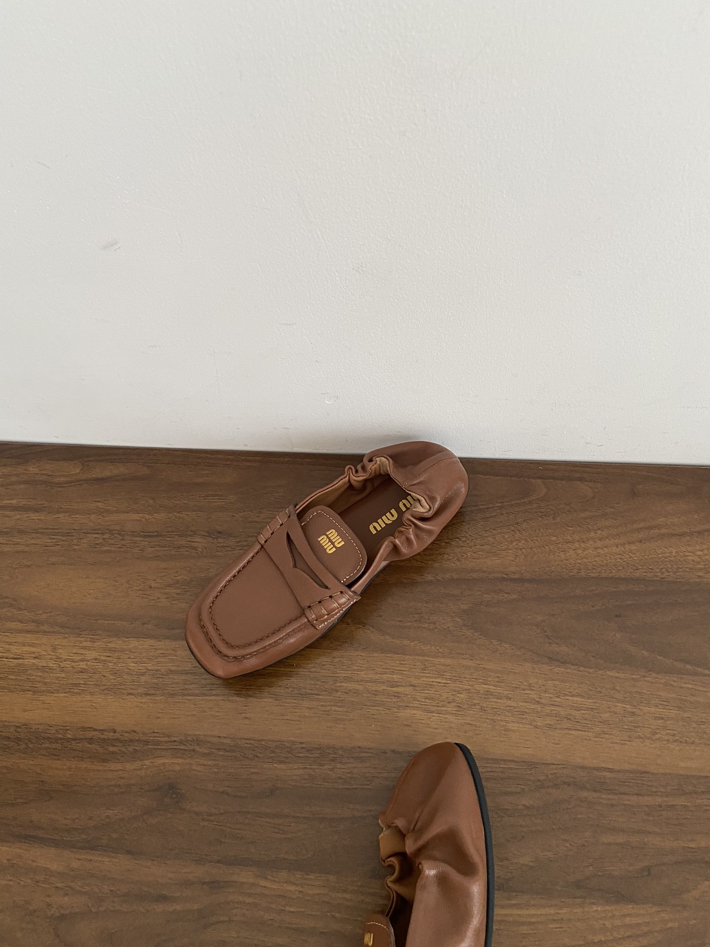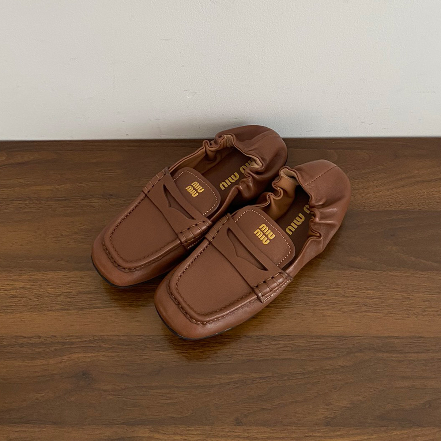 NIGO MiuMiu Women's Solid Color Slip On Round Toe Leather Flat Loafers Shoes #nigo74932