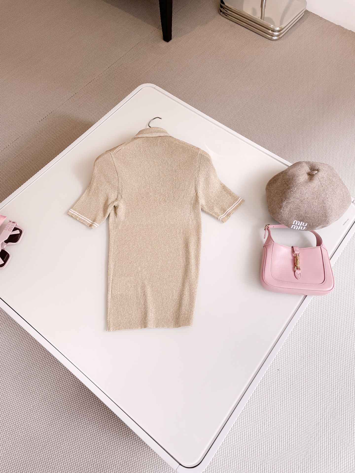 NIGO MiuMiu Women's Spring/Summer Applique Logo Oversized Stretch Short Sleeve Polo Shirt T-Shirt #nigo74947