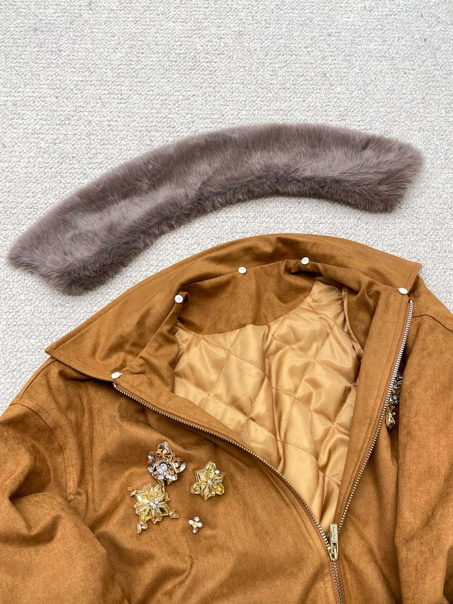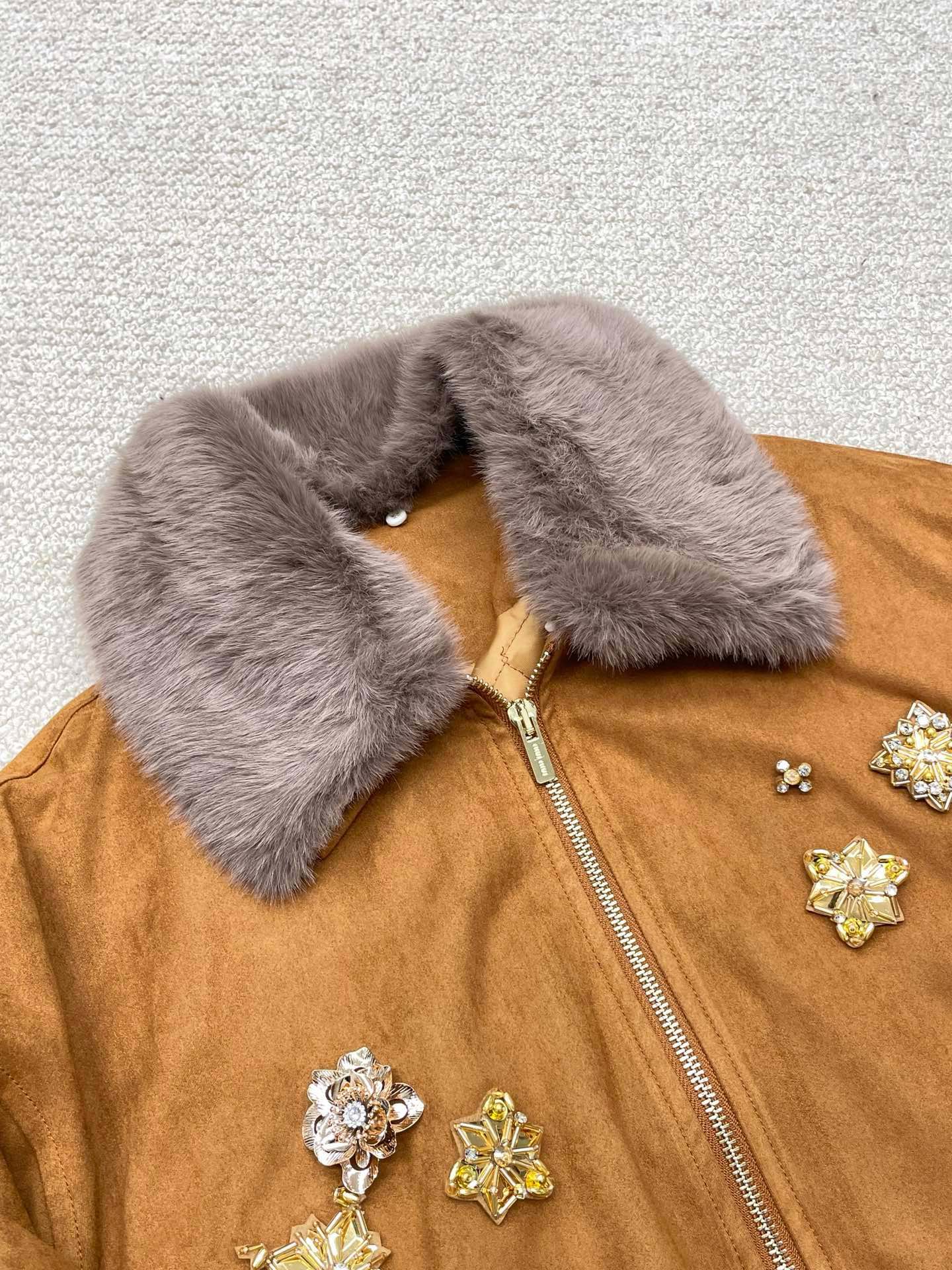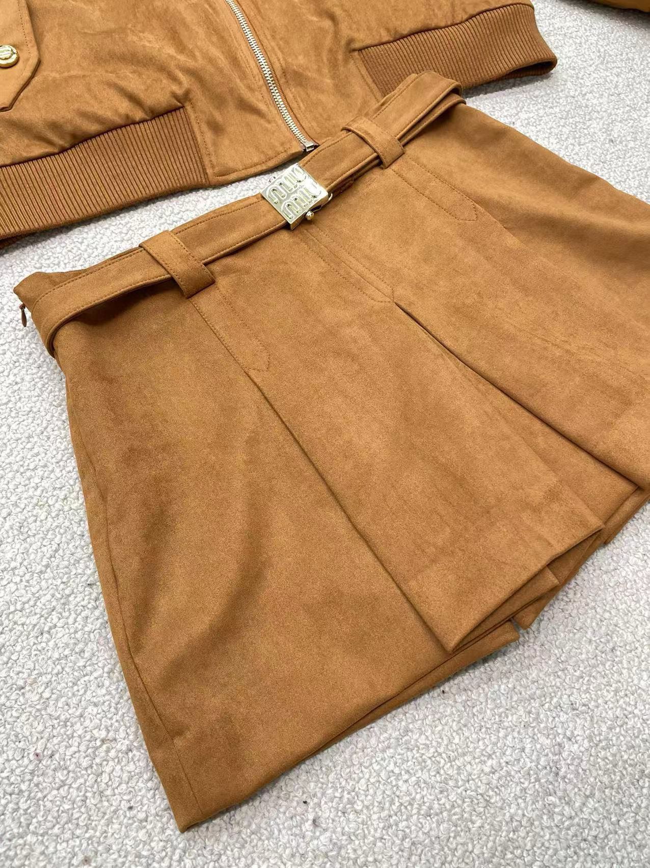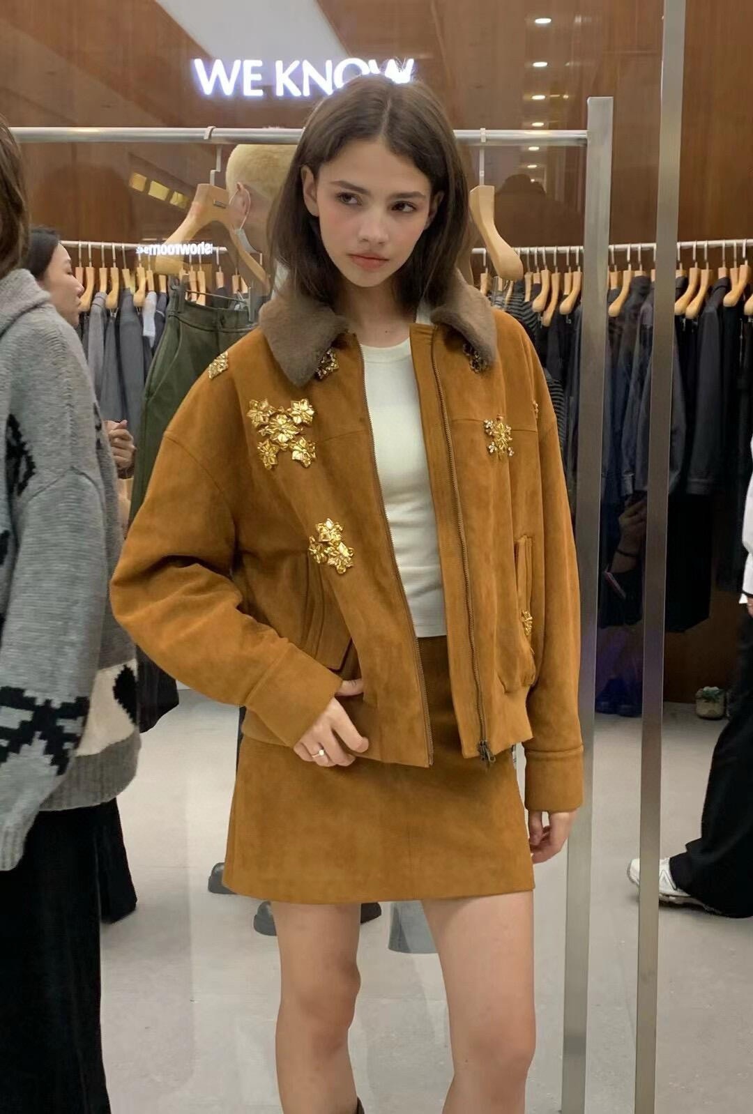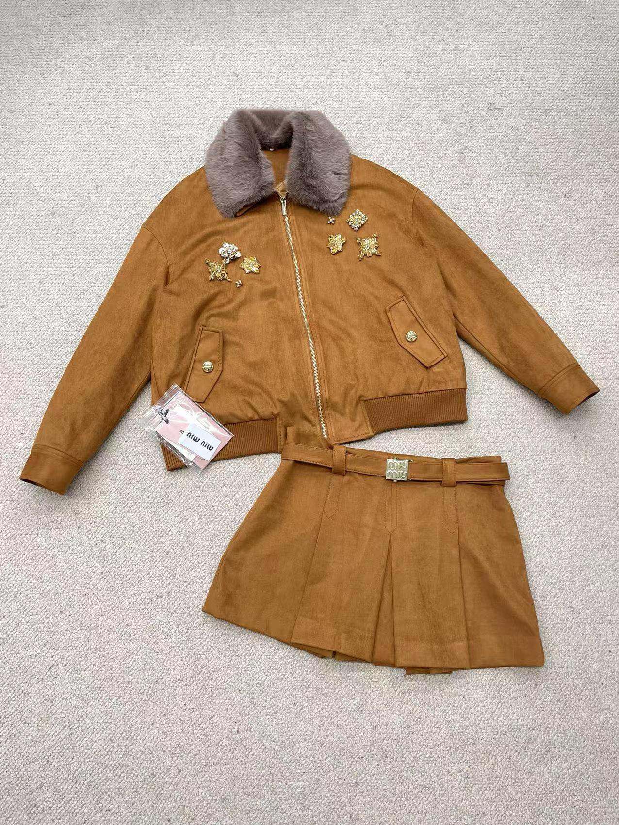 NIGO MiuMiu Women's Autumn And Winter Hair Collar Zipper Long Sleeve Jacket Casual Solid Color Half Skirt Ngvp #nigo9474