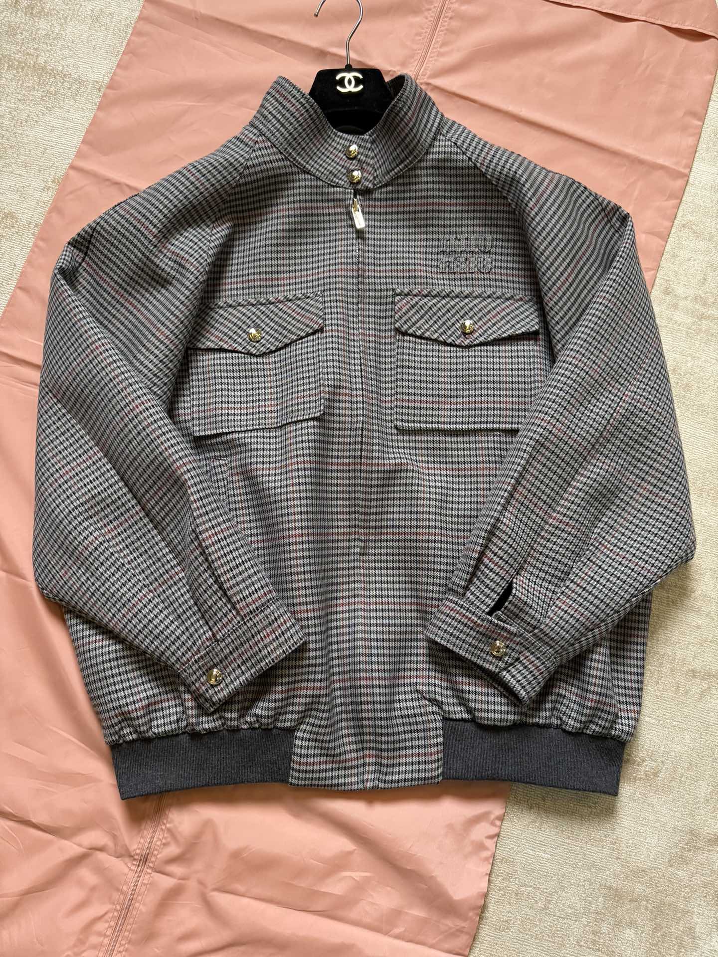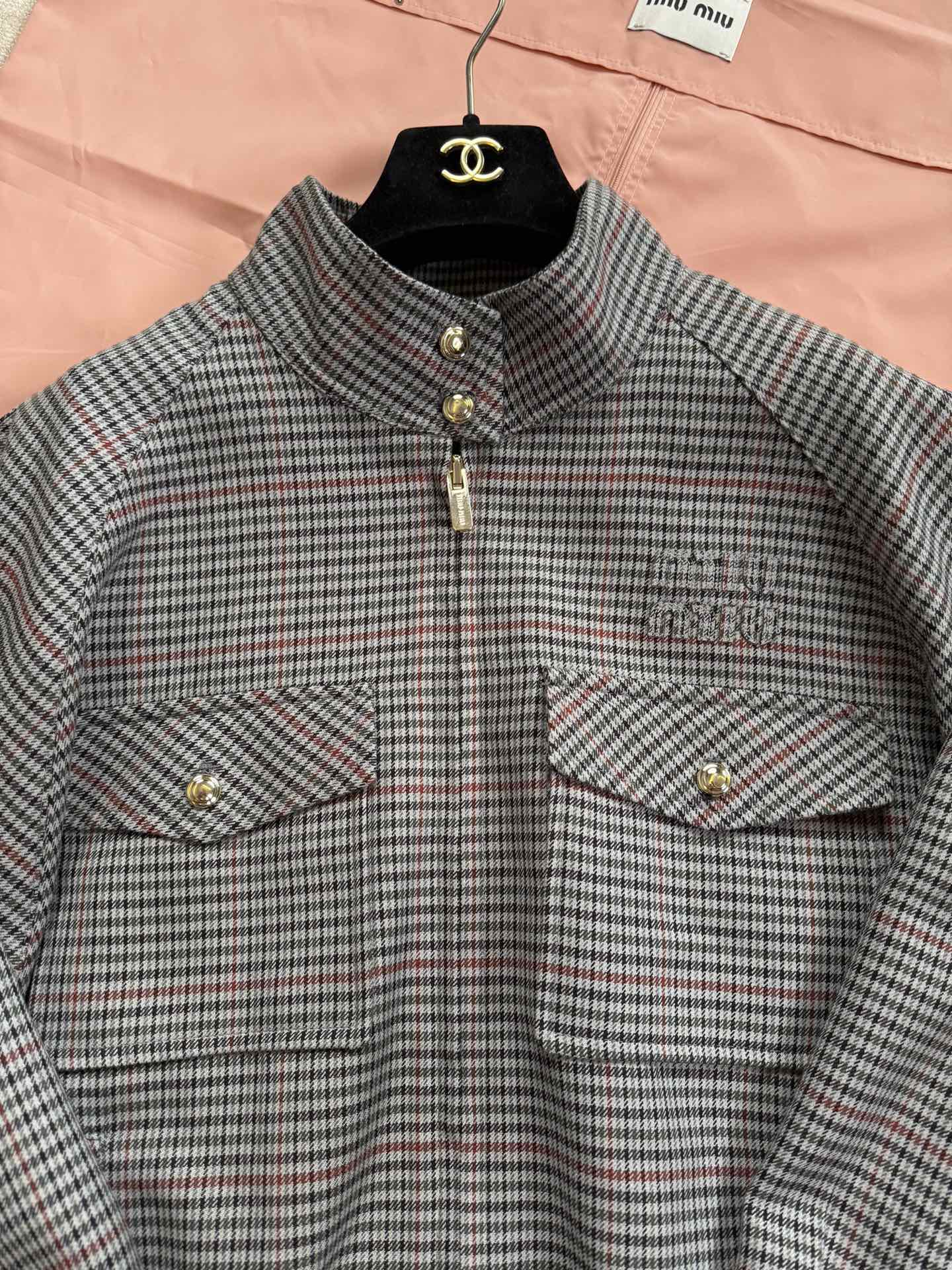 NIGO MiuMiu Women's Spring and Autumn Gray Checkered Lapel Zipper Long Sleeve Jacket #nigo73723