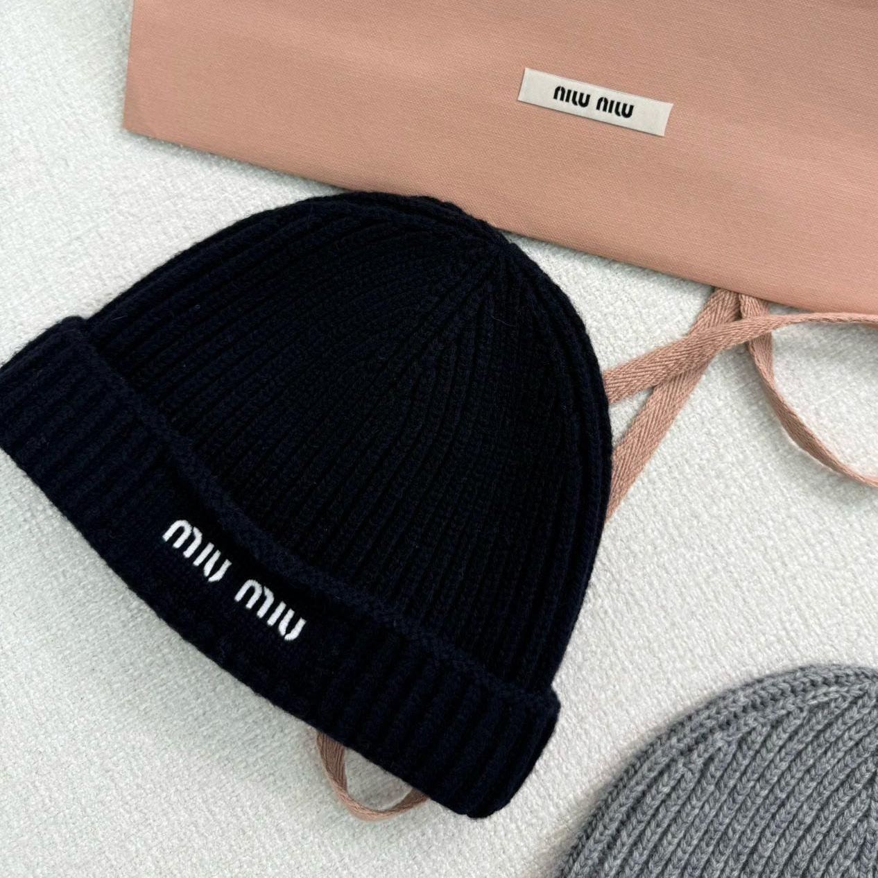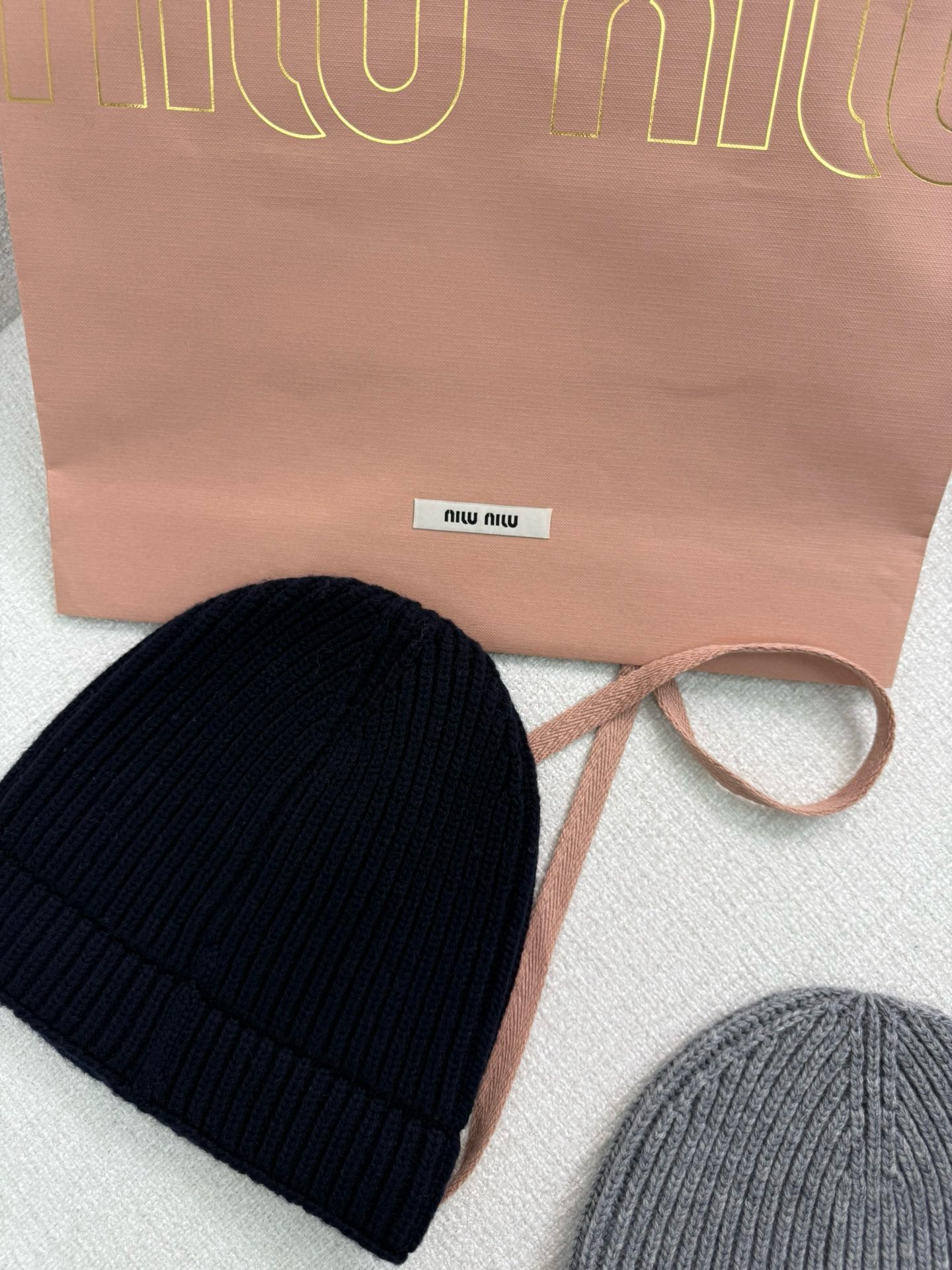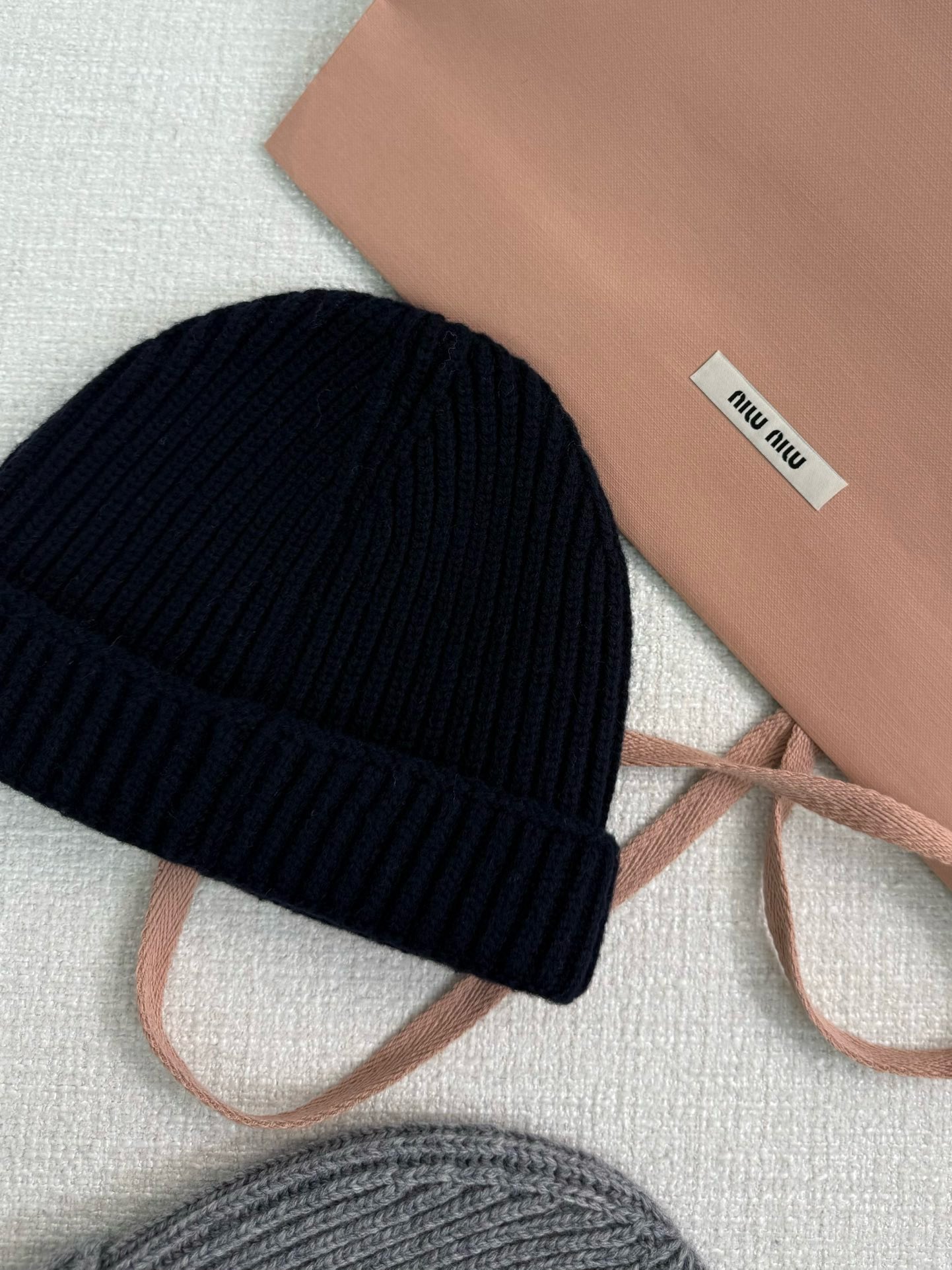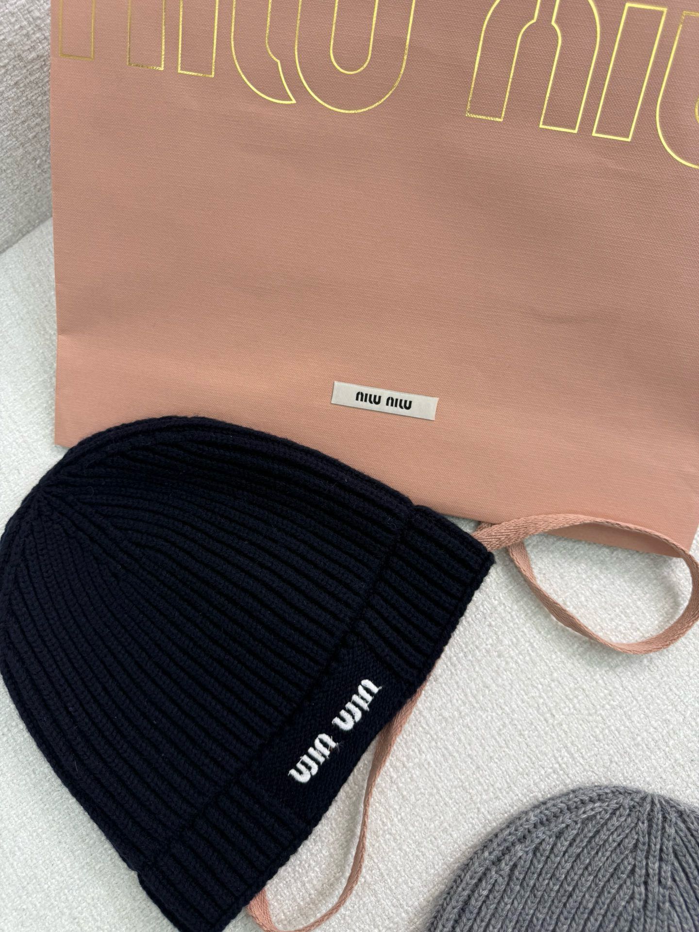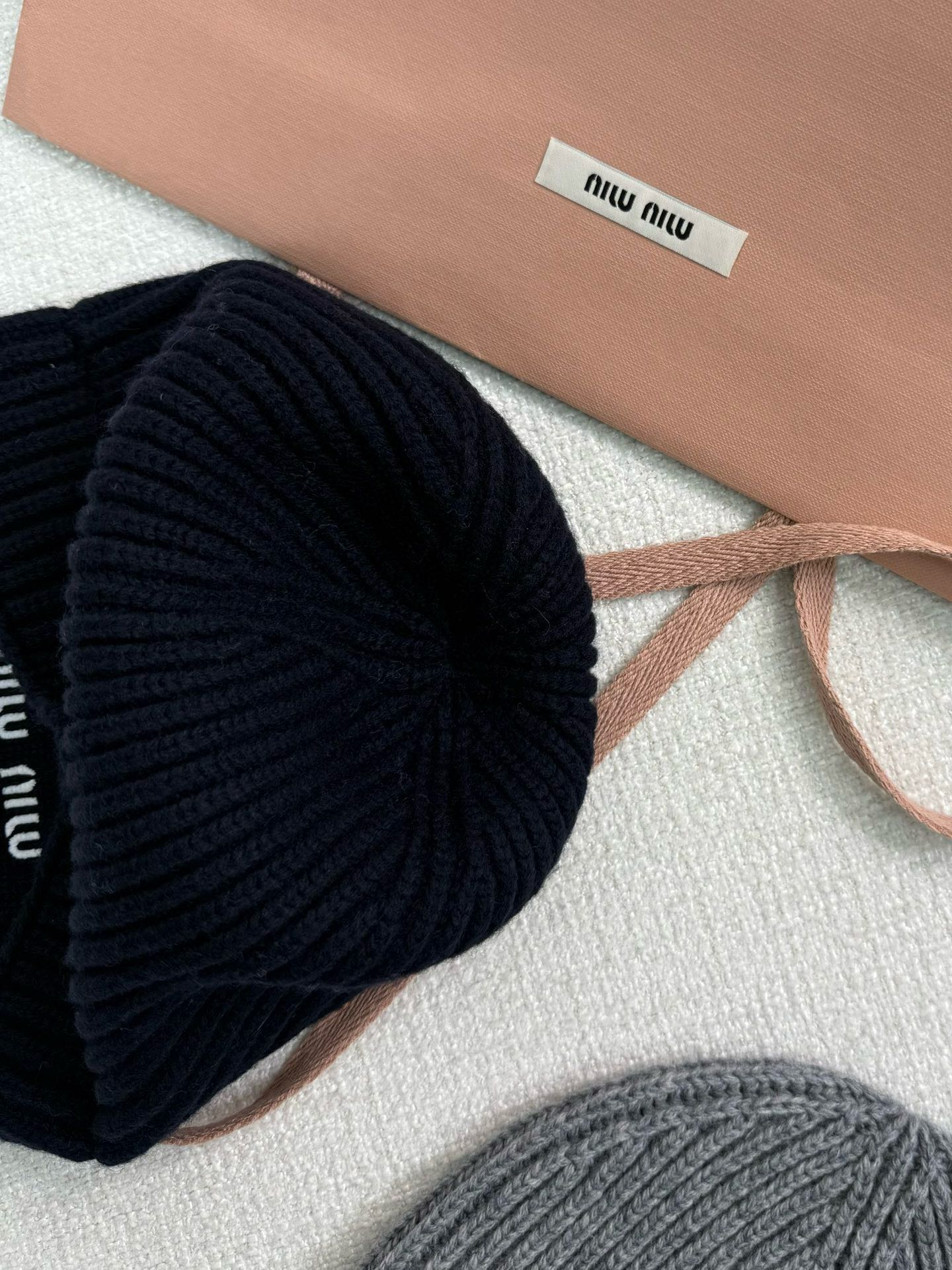 NIGO MiuMiu Women's Solid Color Embroidered Logo Wool Pom Pom Hat #nigo73781