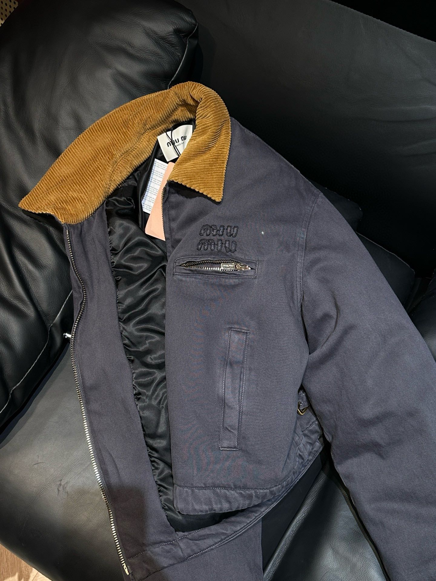 NIGO MiuMiu Women's Autumn and Winter Colorblocking Lapel Logo Embroidery Zipper Long Sleeve Jacket #nigo73835