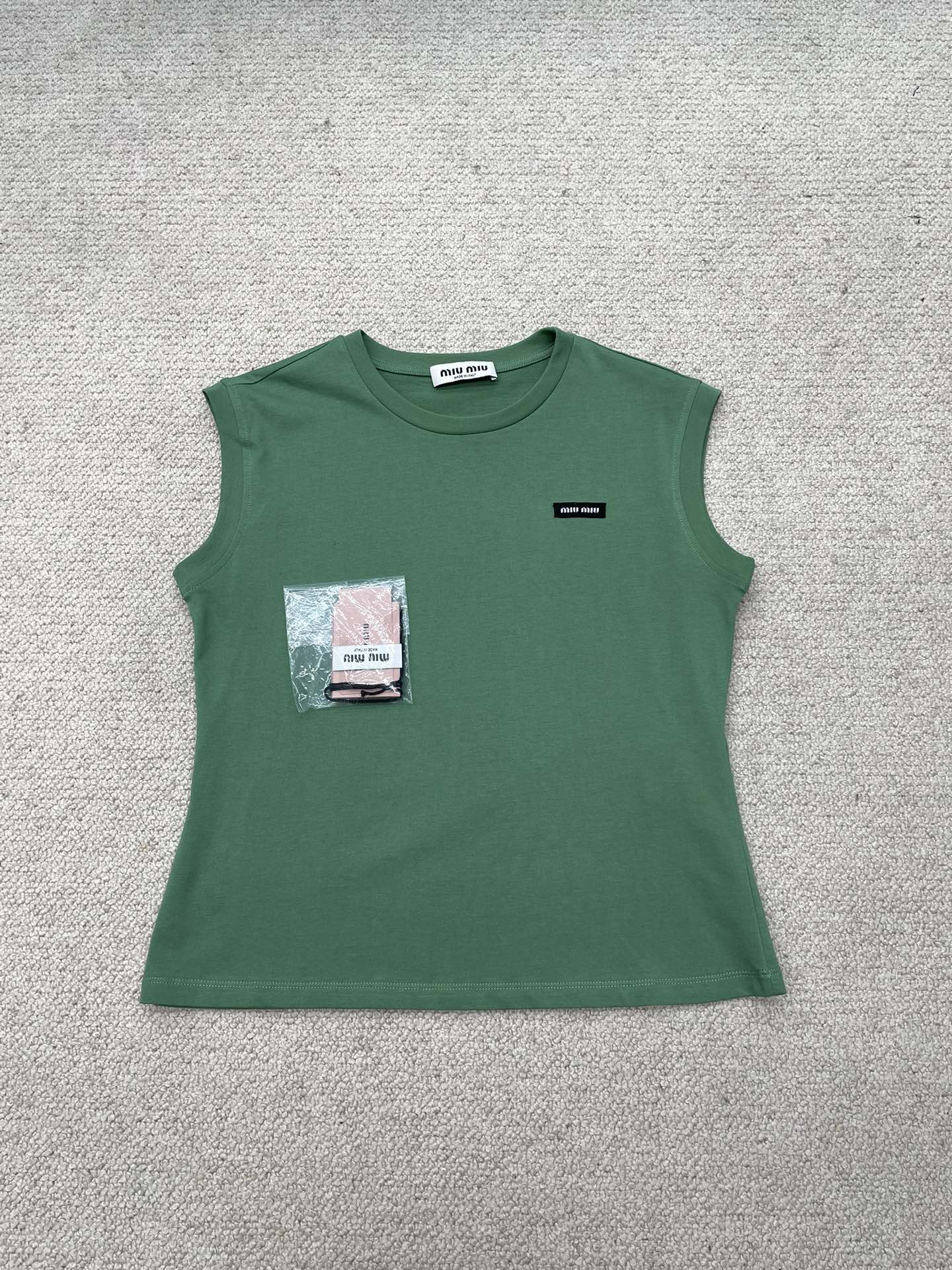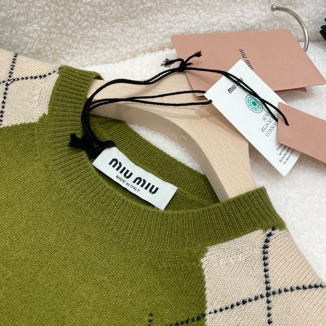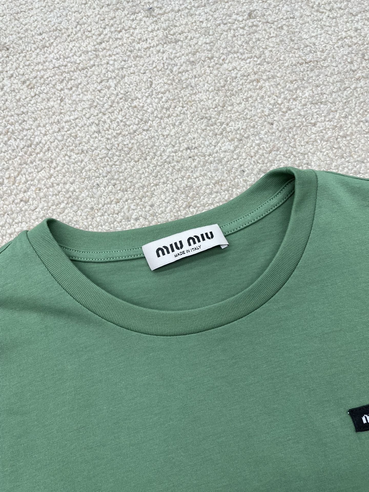 NIGO MiuMiu Women's Summer Colorblocking Diamond Appliqué Knit Round Neck Slim Short Sleeve Cashmere T-shirt #nigo73852