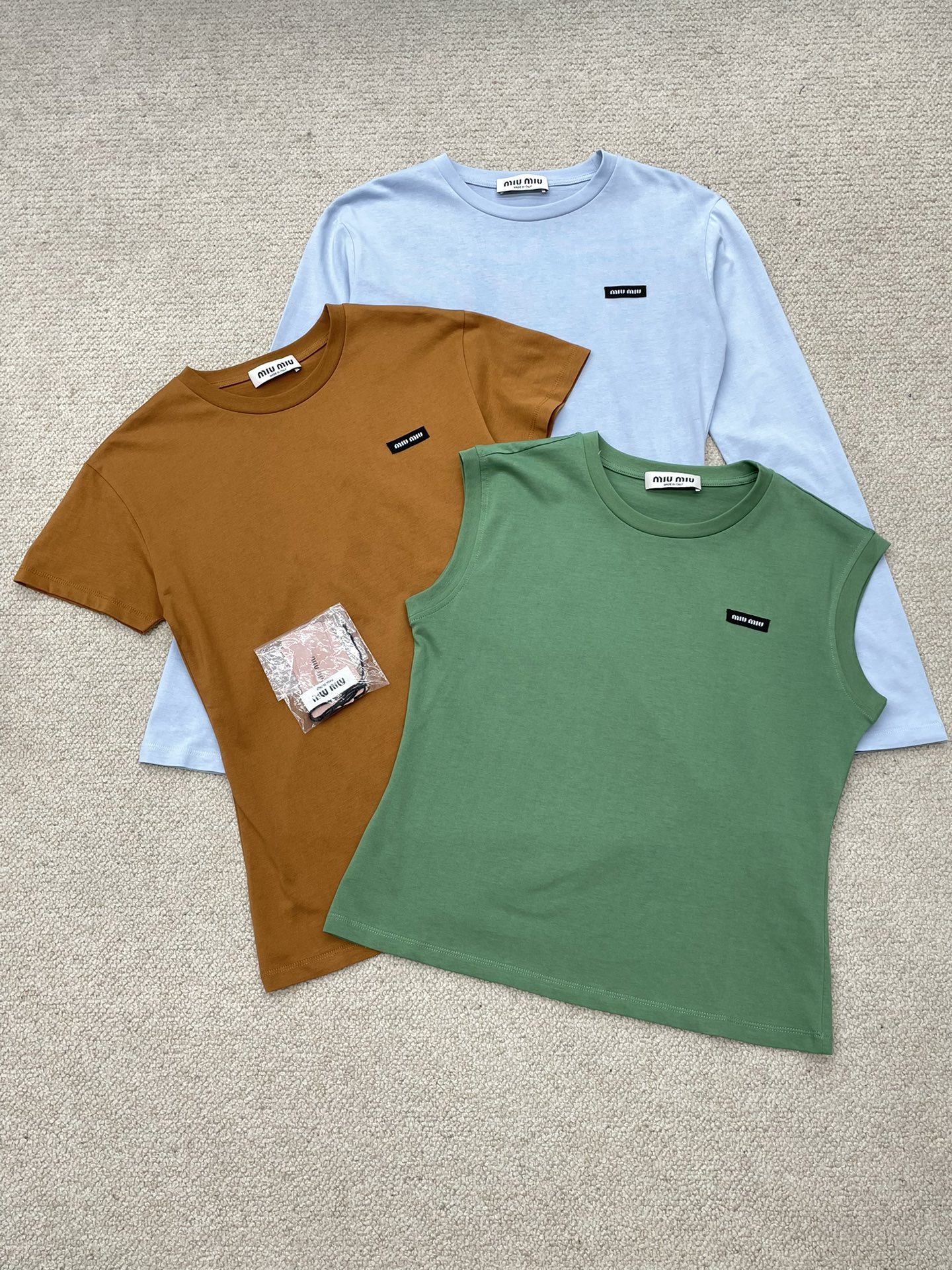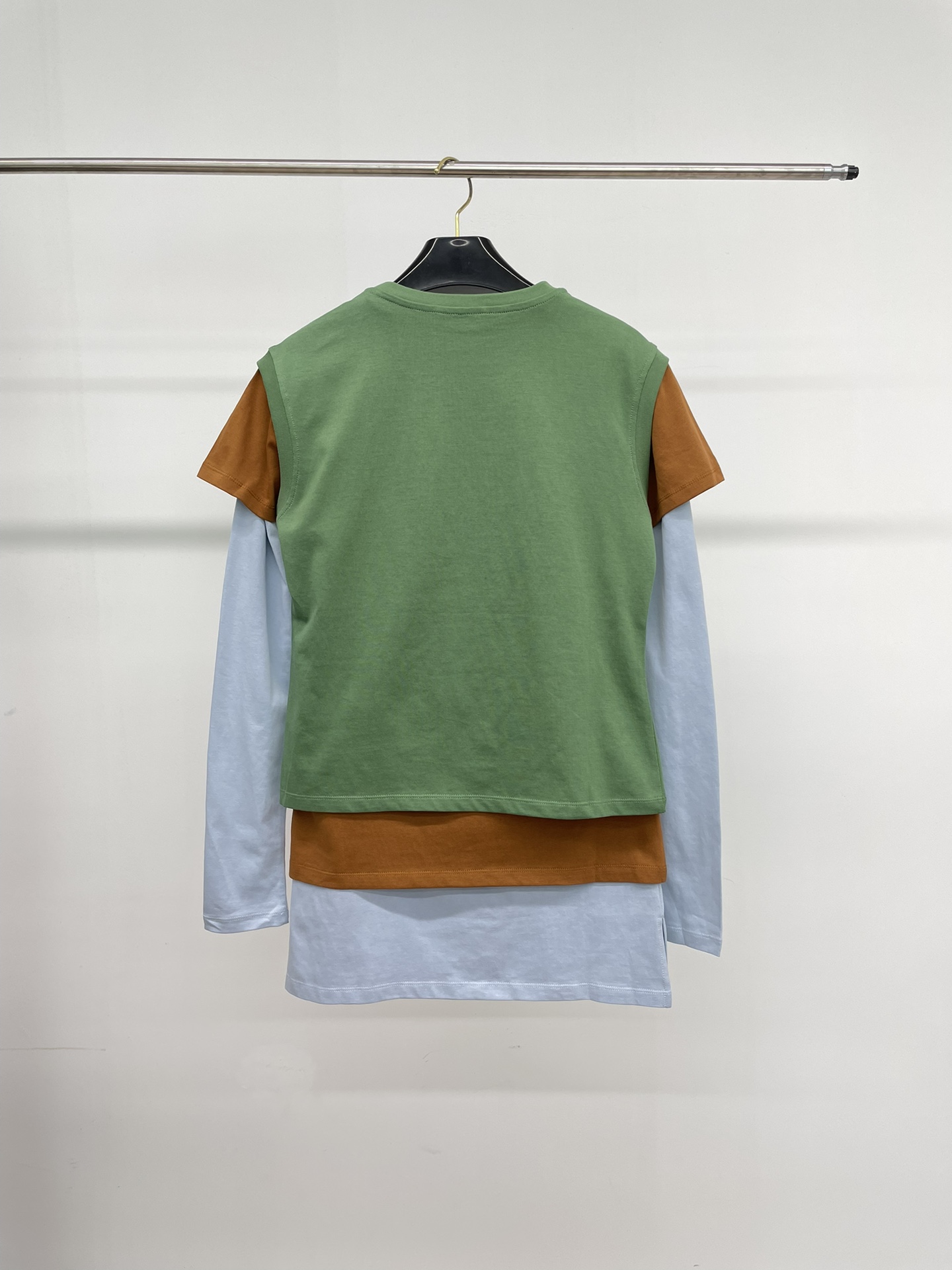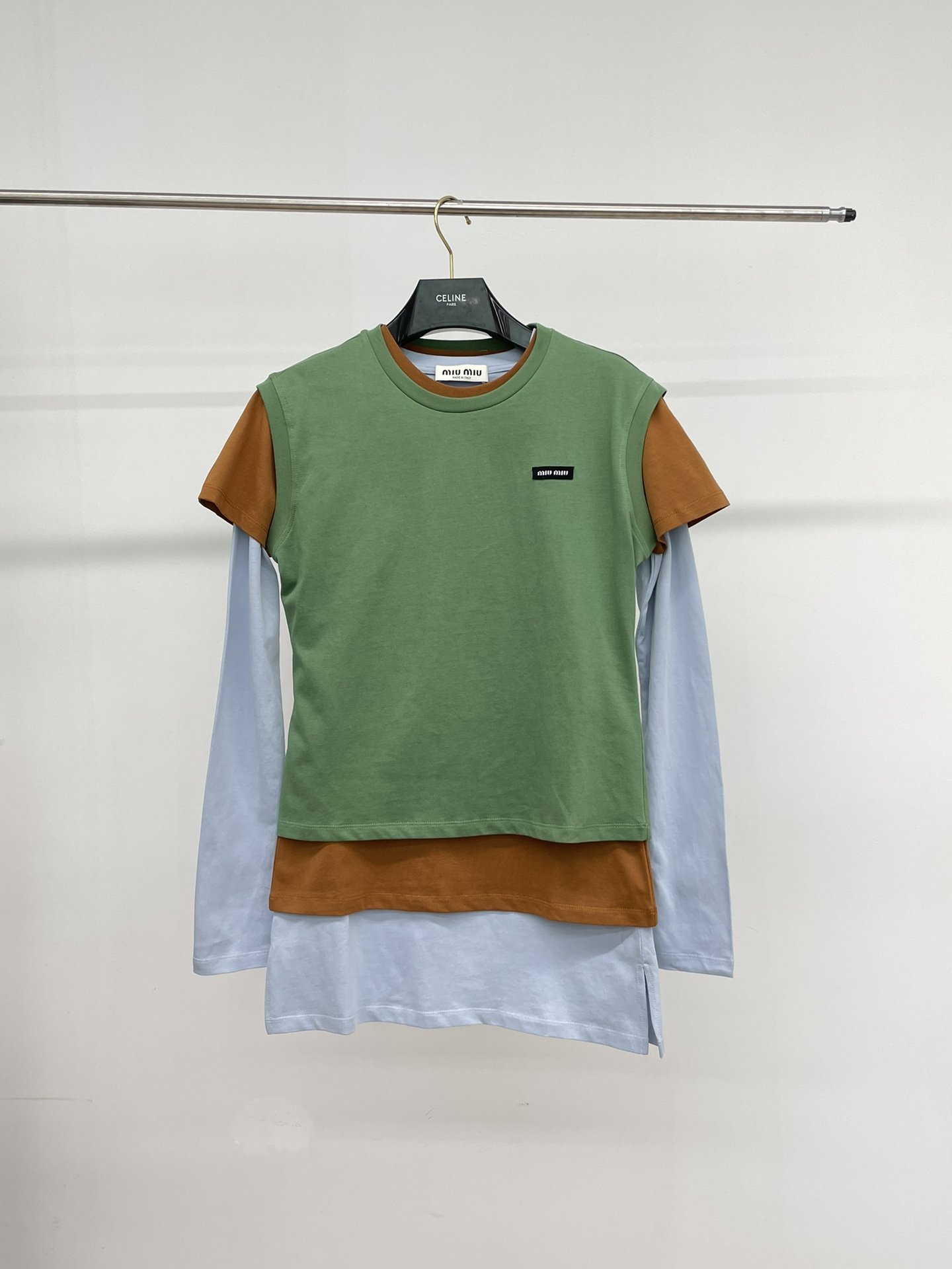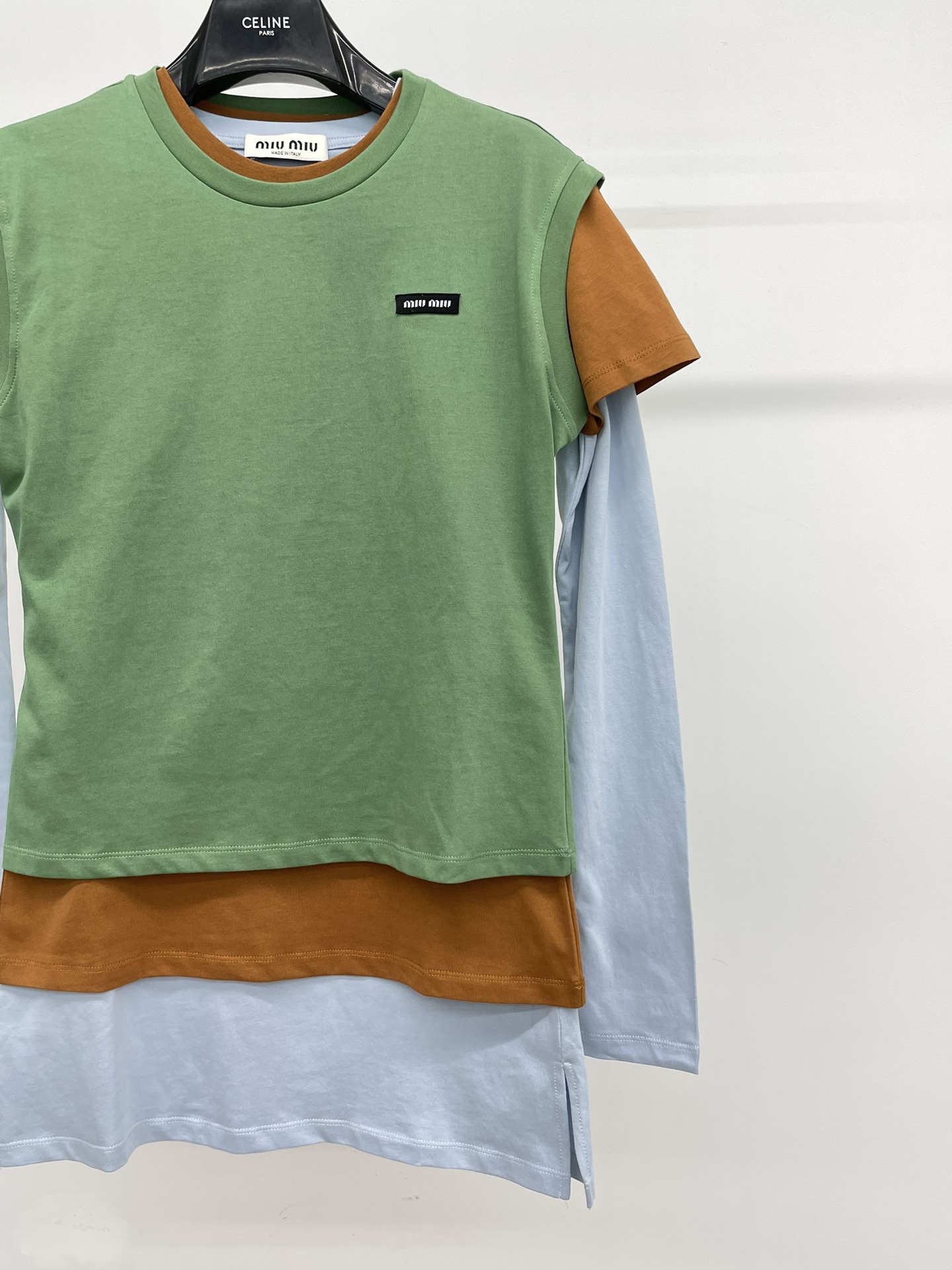 NIGO MiuMiu Women's Summer Clashing Color Embroidery Letter Logo Round Neck 3 Piece Layered T-Shirt Set #nigo73931
