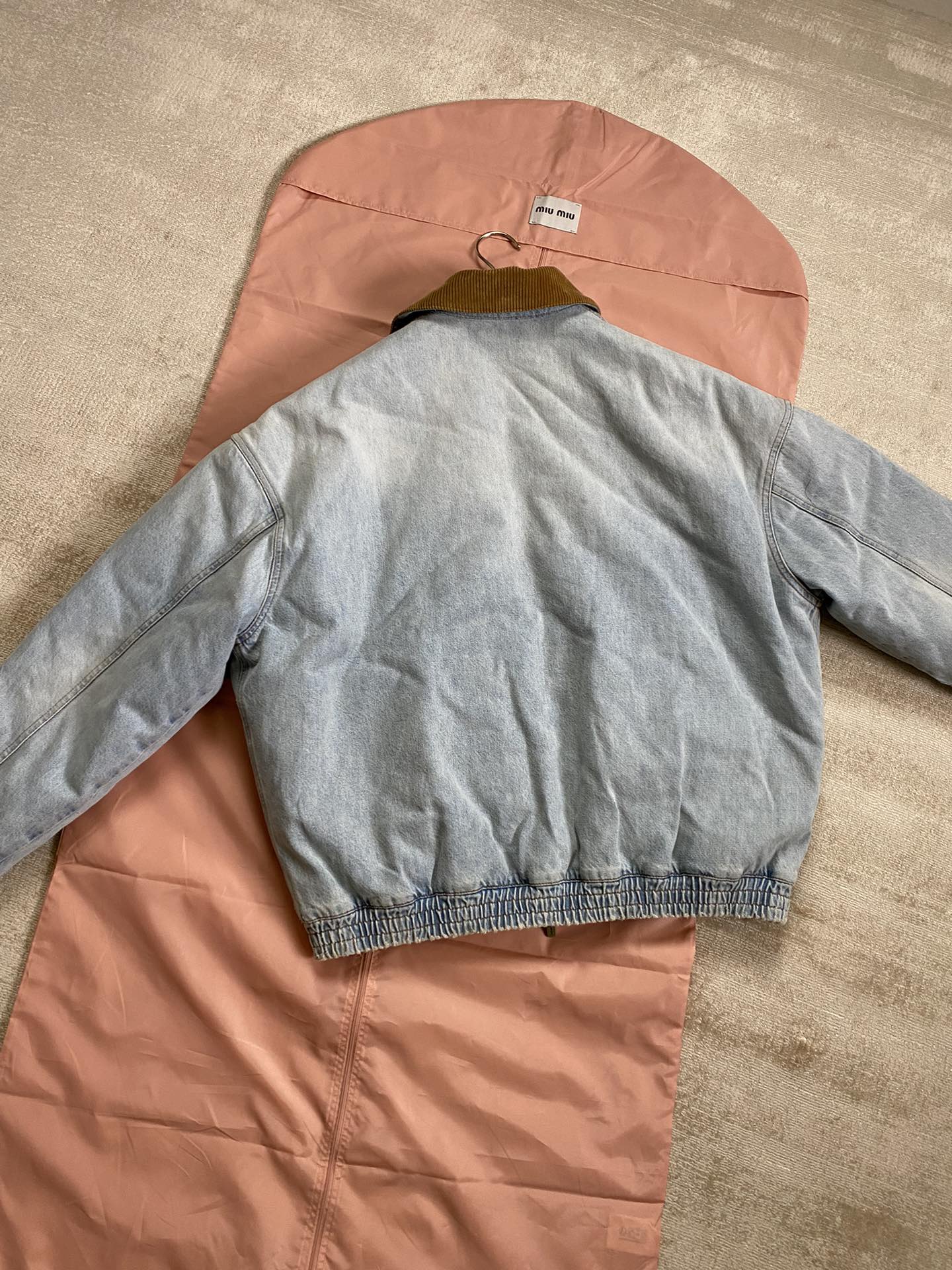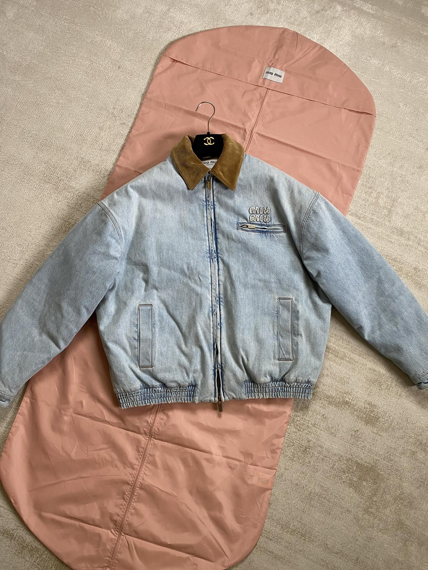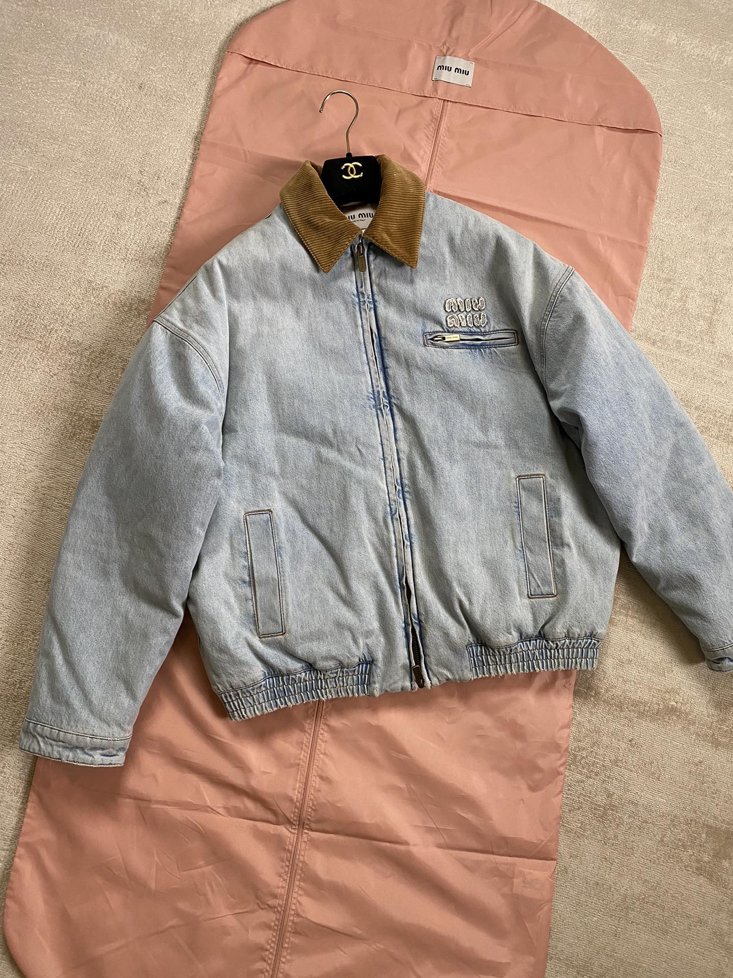 NIGO MiuMiu Women's Spring and Autumn Lapel Zipper Straight Blue Long Sleeve Denim Jacket #nigo73499