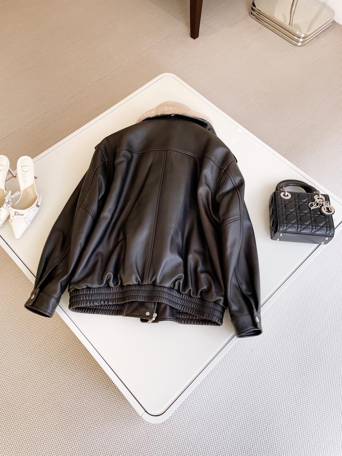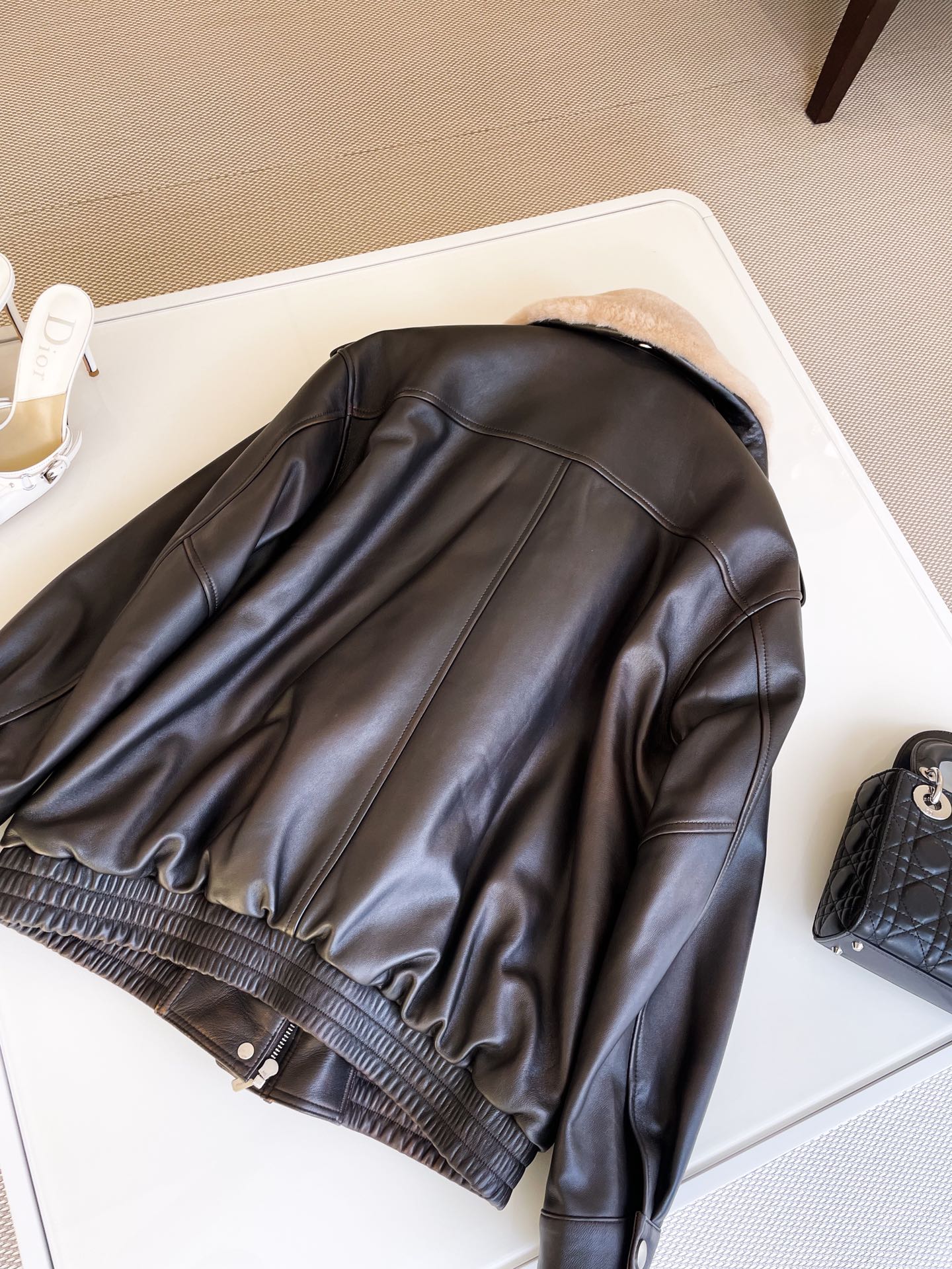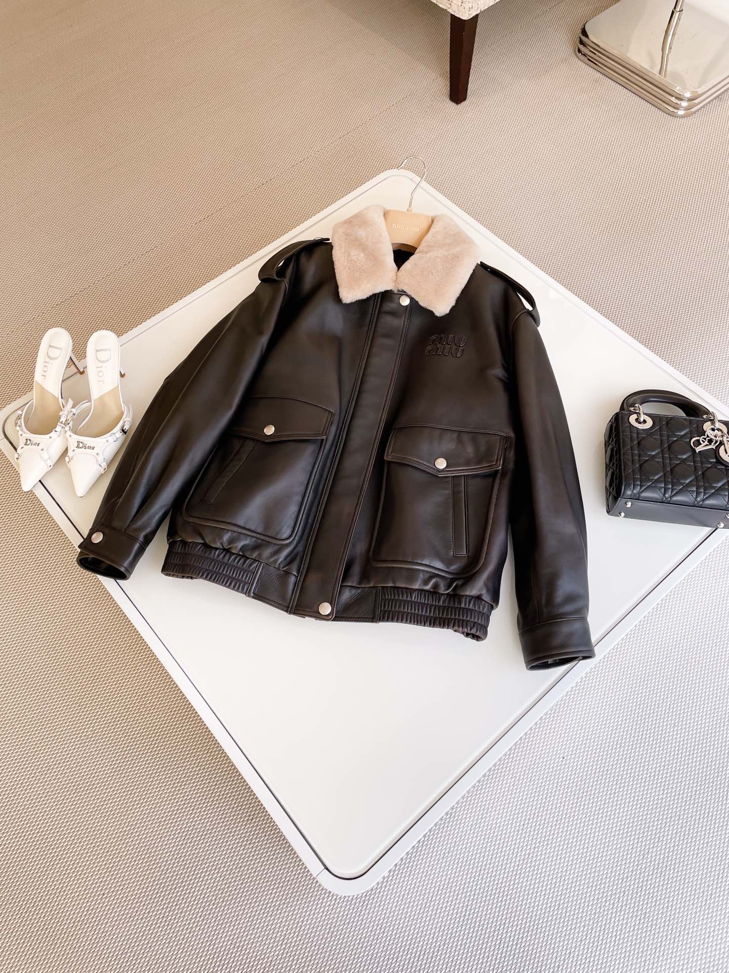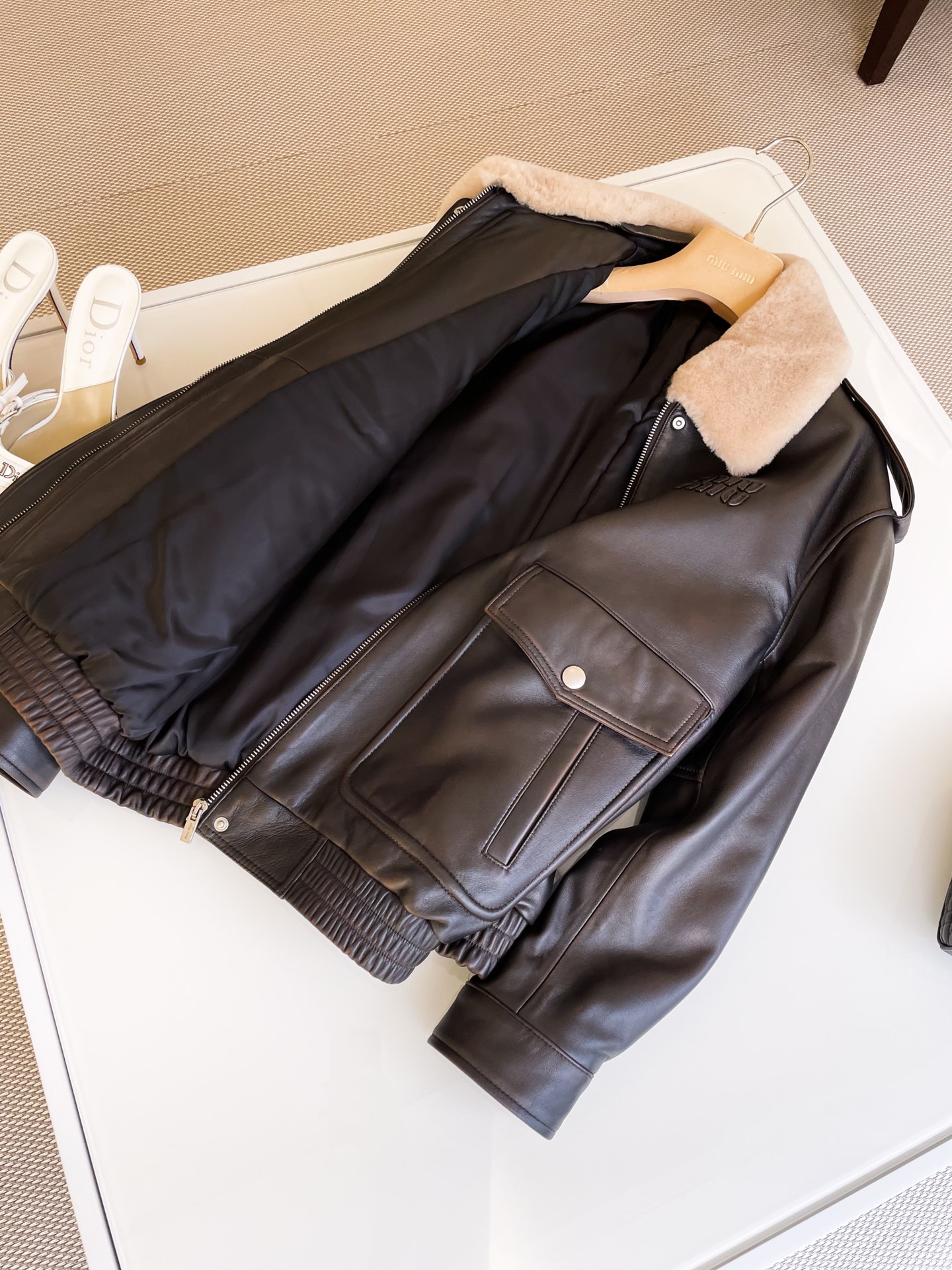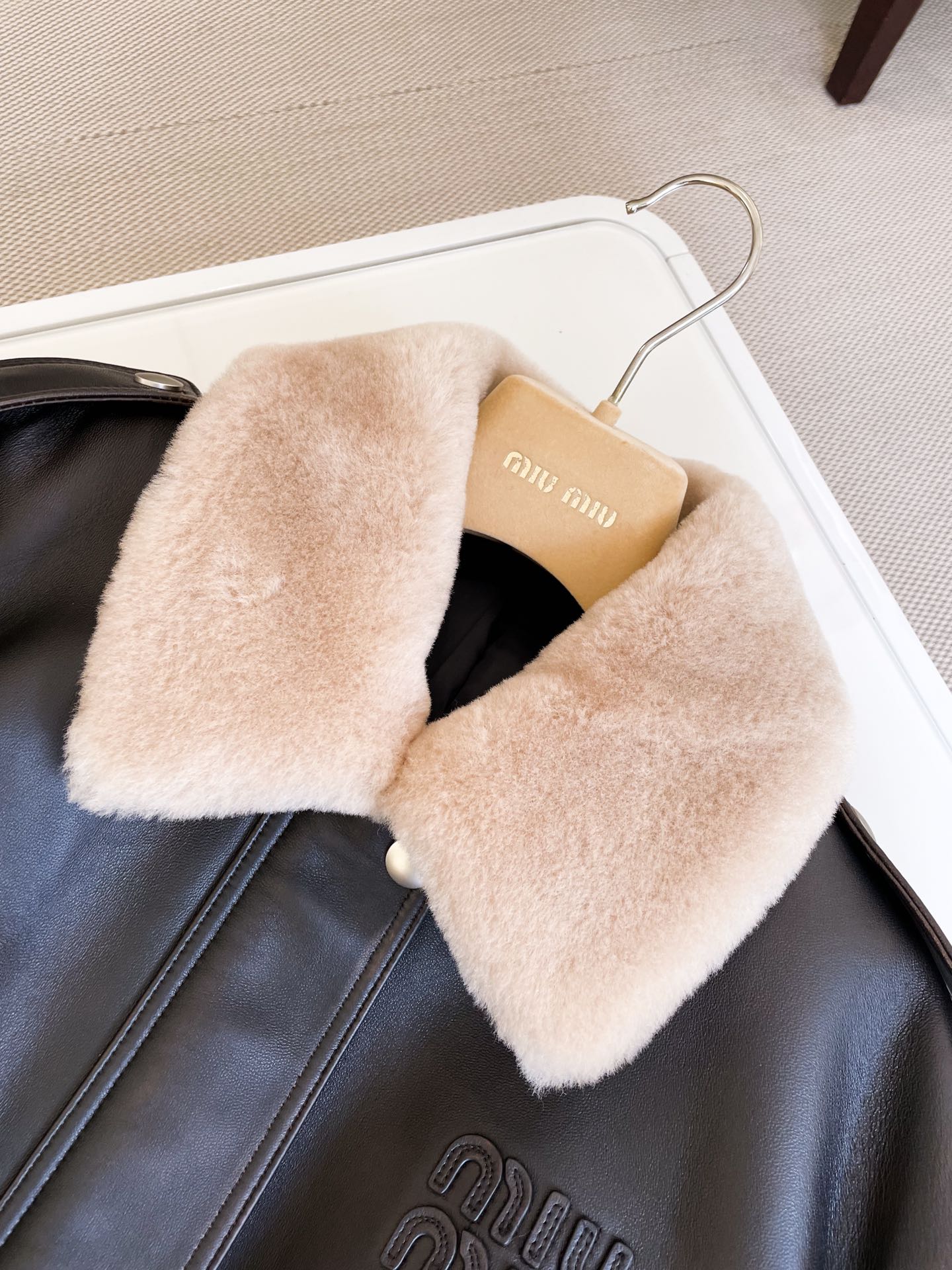 NIGO MiuMiu Women's Fall And Winter Lamb's Wool Collar Do Old Brown Sheepskin Zipper Long Sleeved Jacket #nigo73525