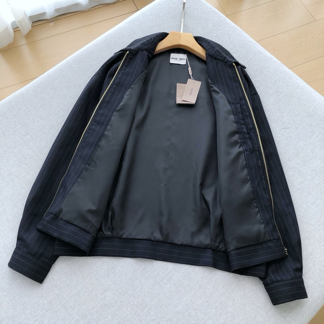 NIGO MiuMiu Women's Spring and Autumn Blue Pinstripe Lapel Zipper Long Sleeve Jacket #nigo73578