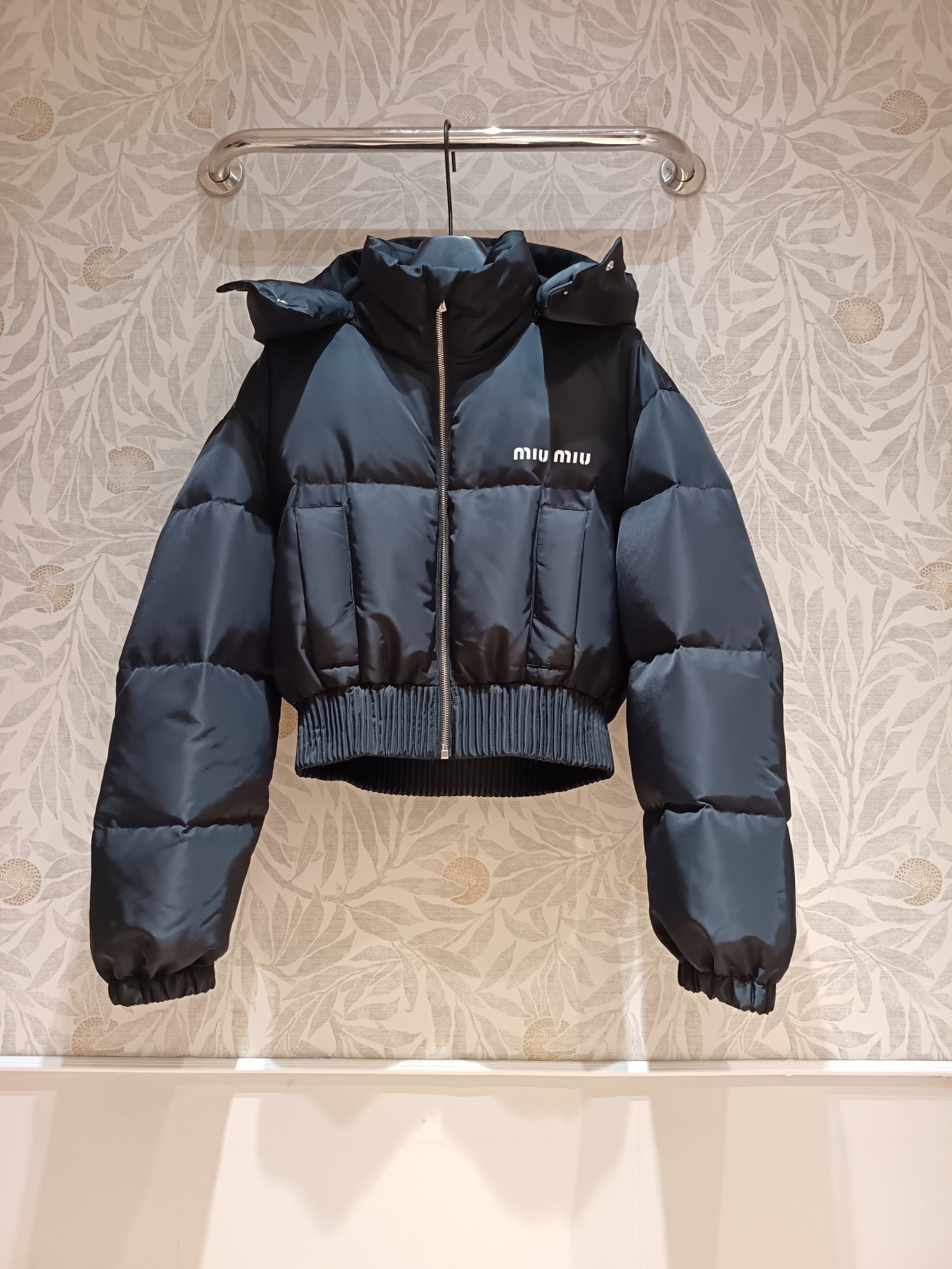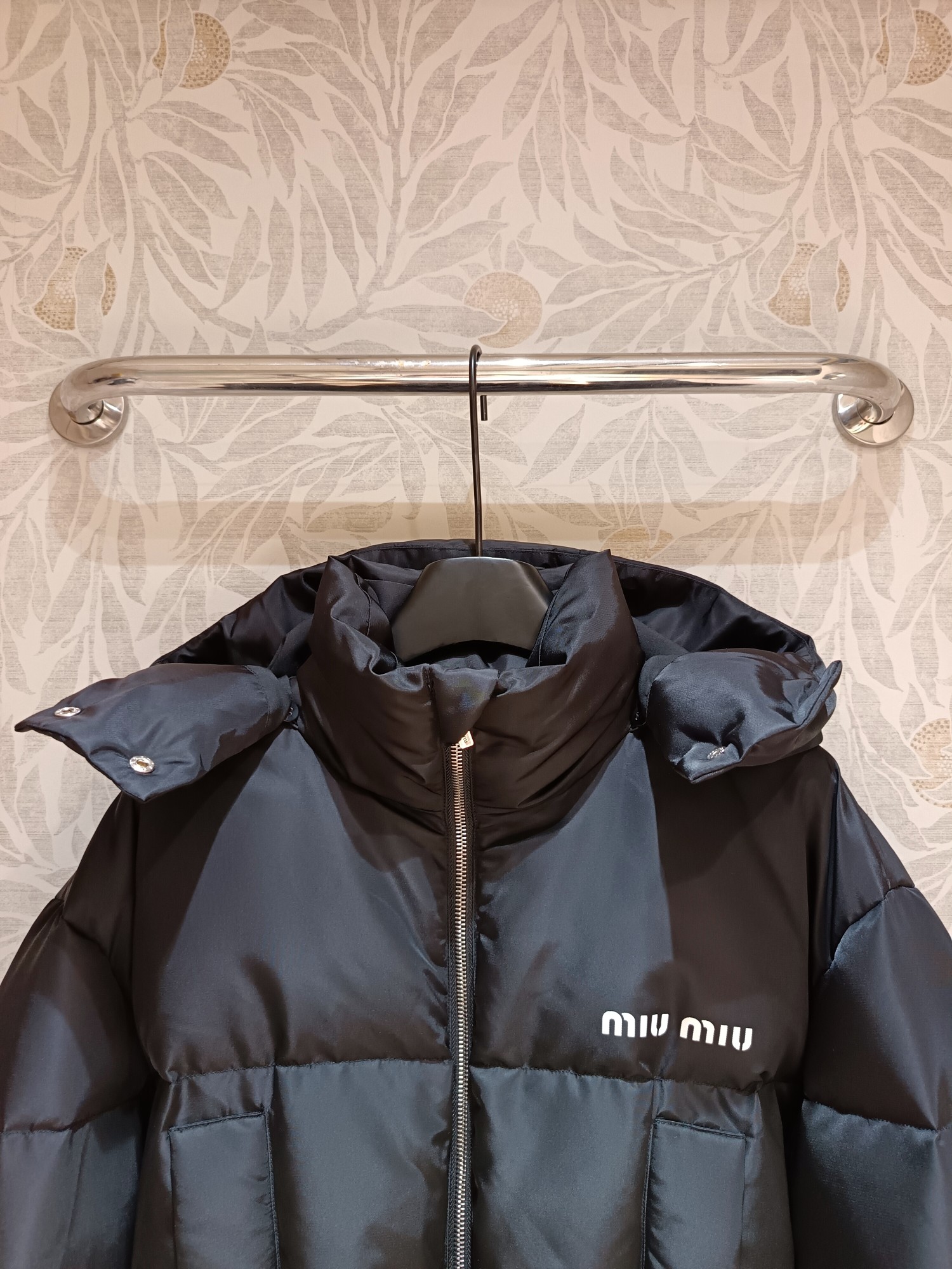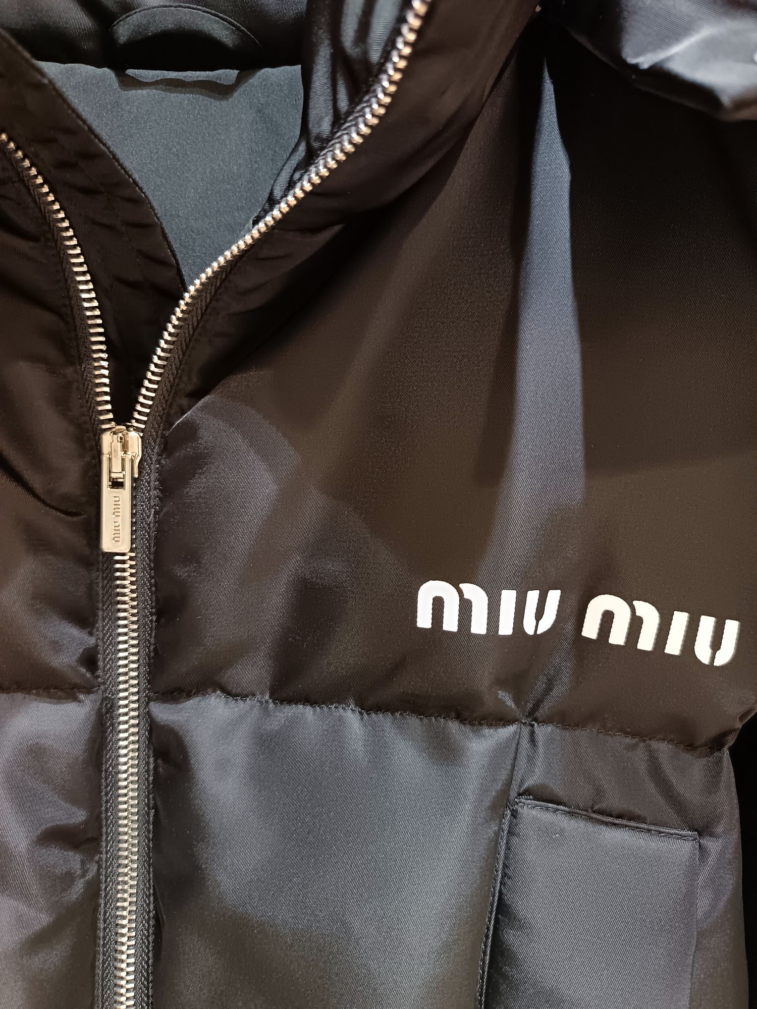 NIGO MiuMiu Women's Autumn and Winter Black Hooded Zipper Puffer Down Long Sleeve Jacket #nigo73614