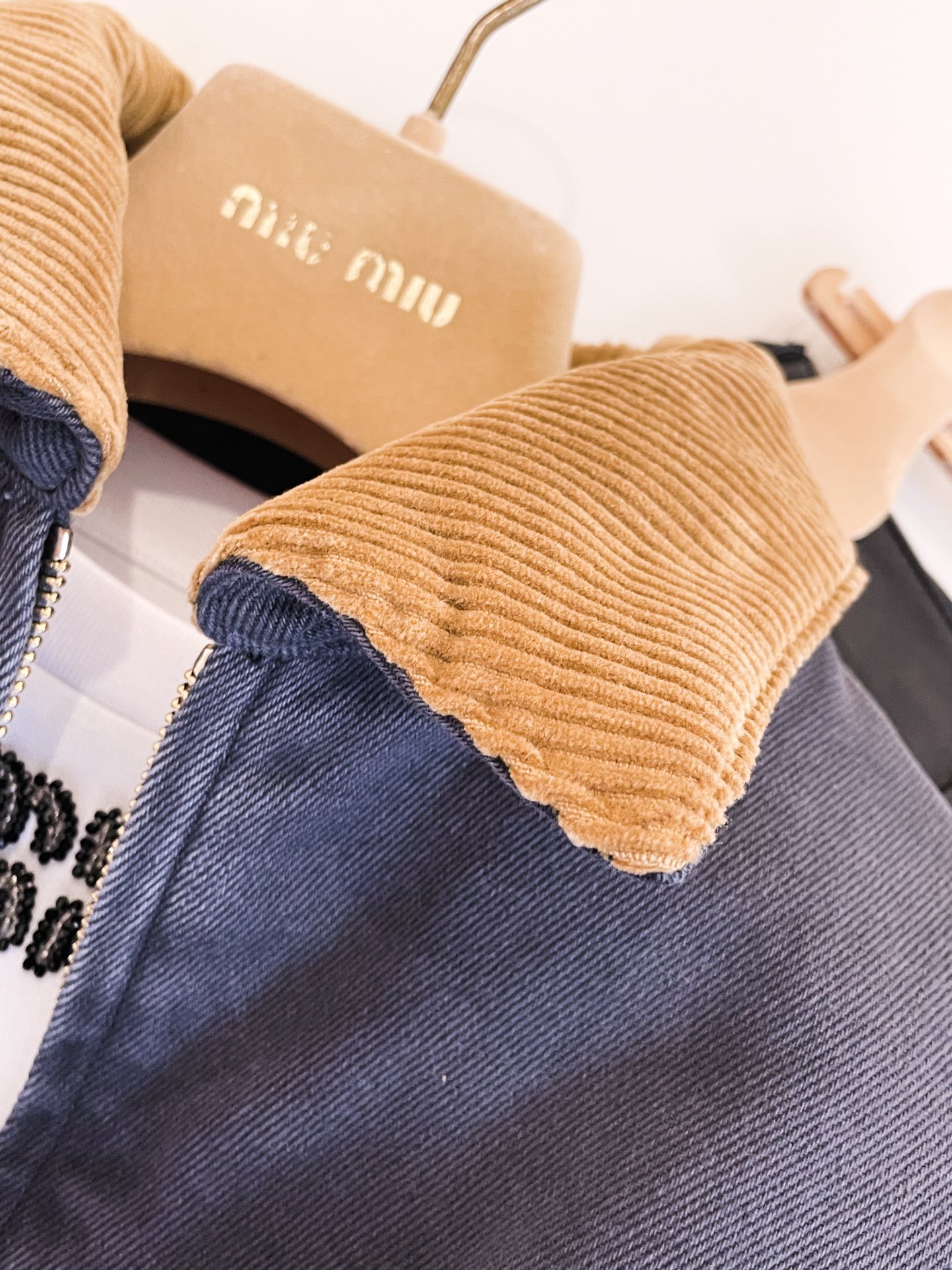 NIGO MiuMiu Women's Autumn and Winter Colorblocking Lapel Logo Embroidery Zipper Long Sleeve Jacket #nigo73679