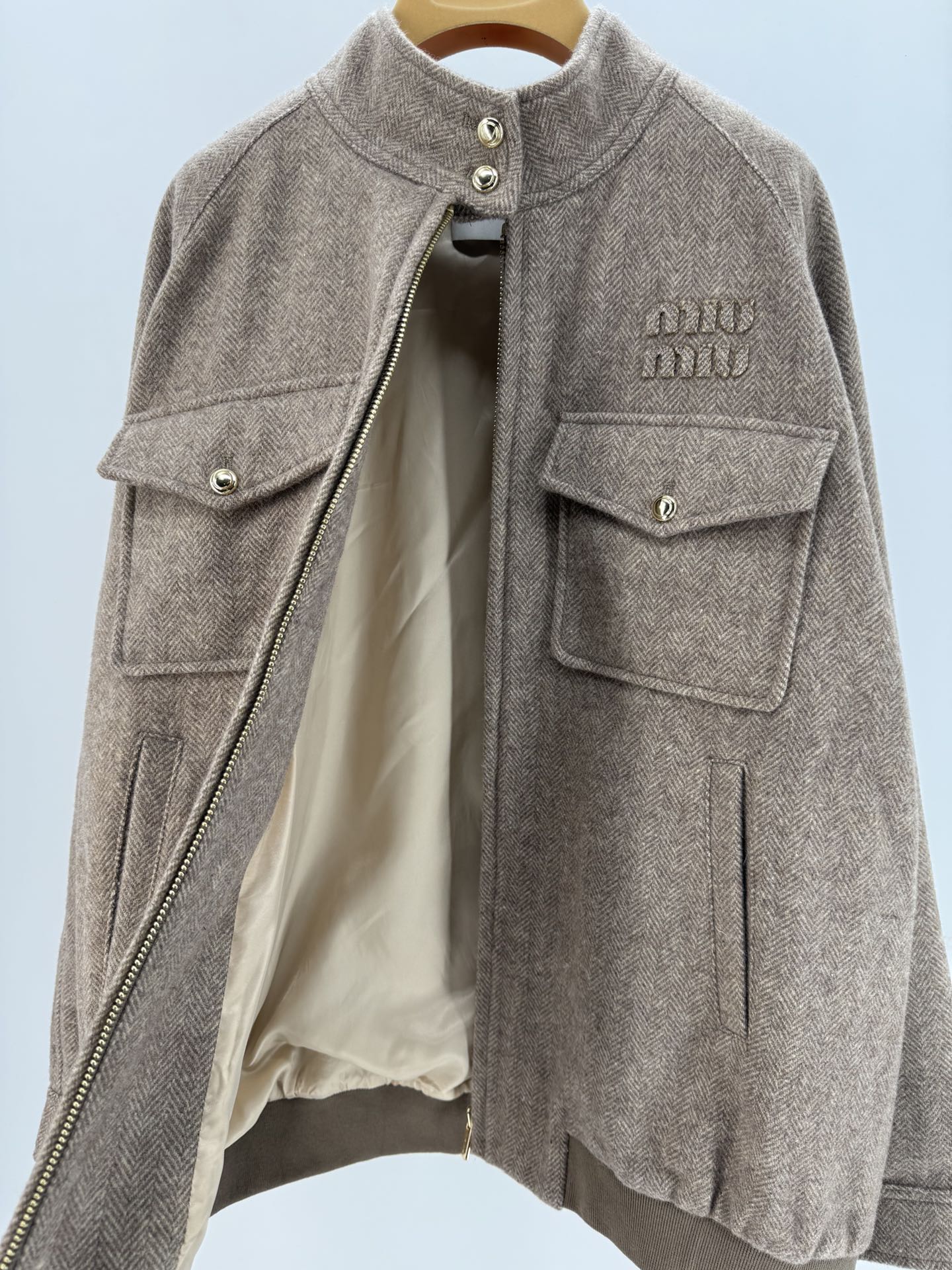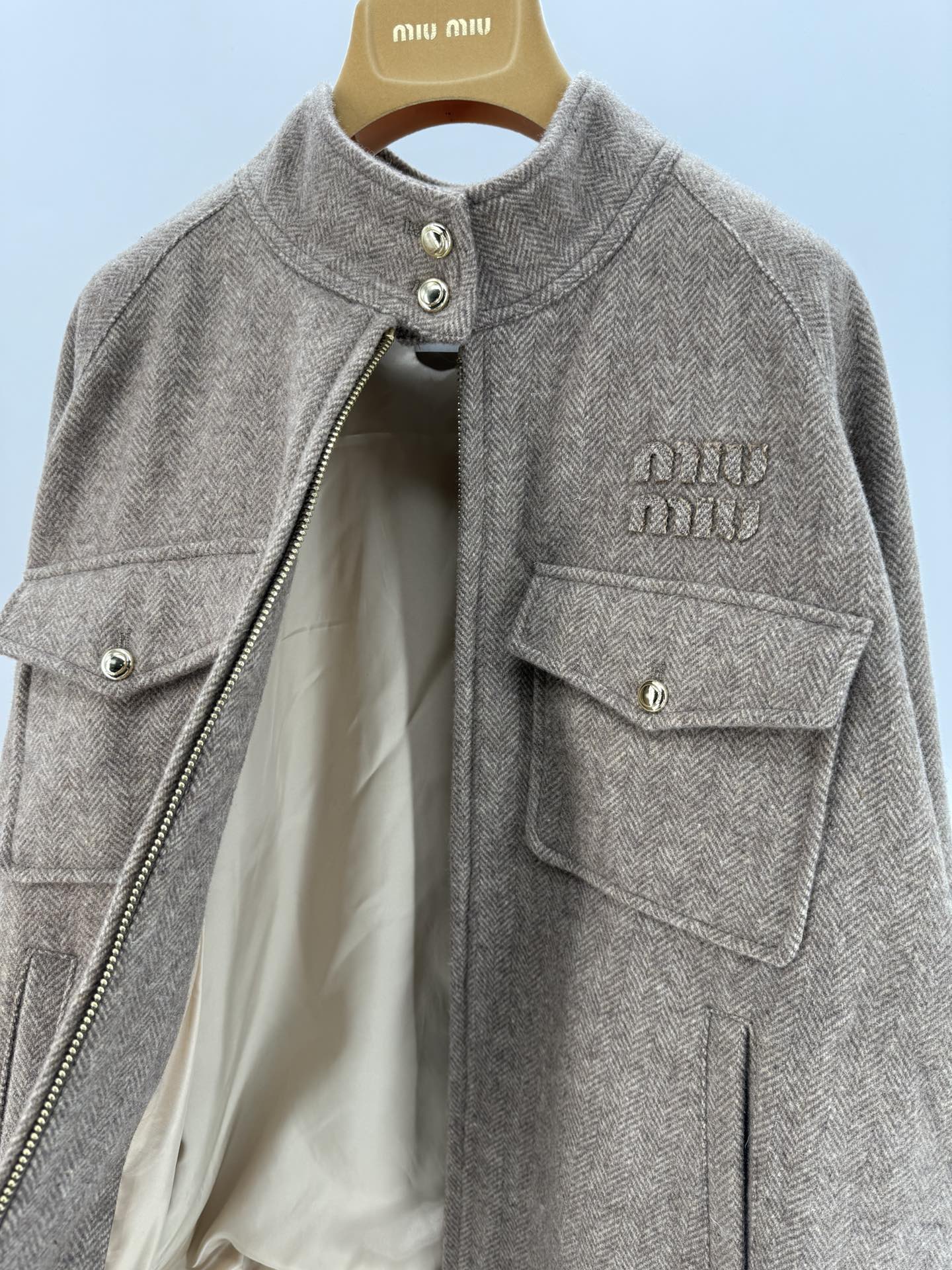 NIGO MiuMiu Women's Fall and Winter Embroidery Letter Logo Lapel Zipper Long Sleeve Jacket #nigo73681